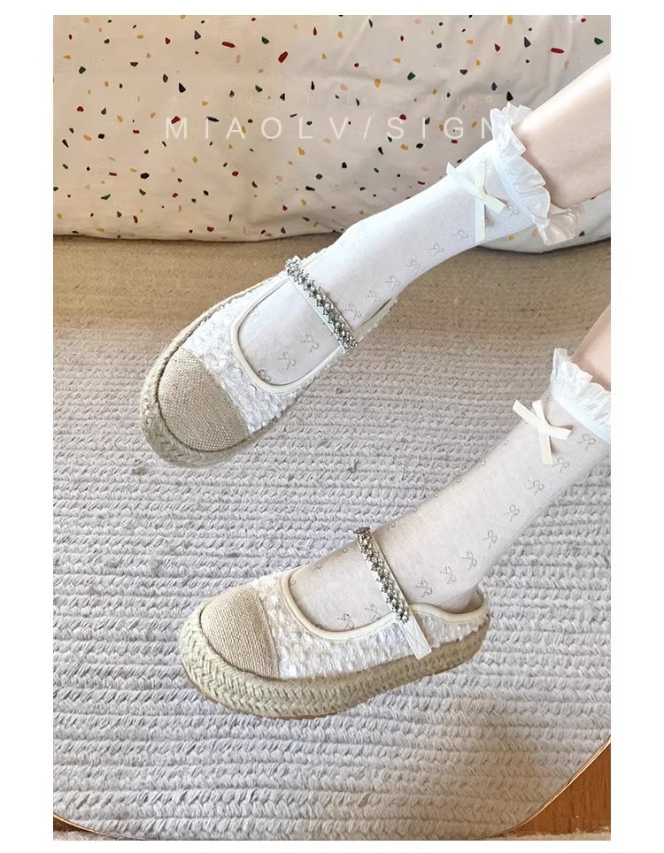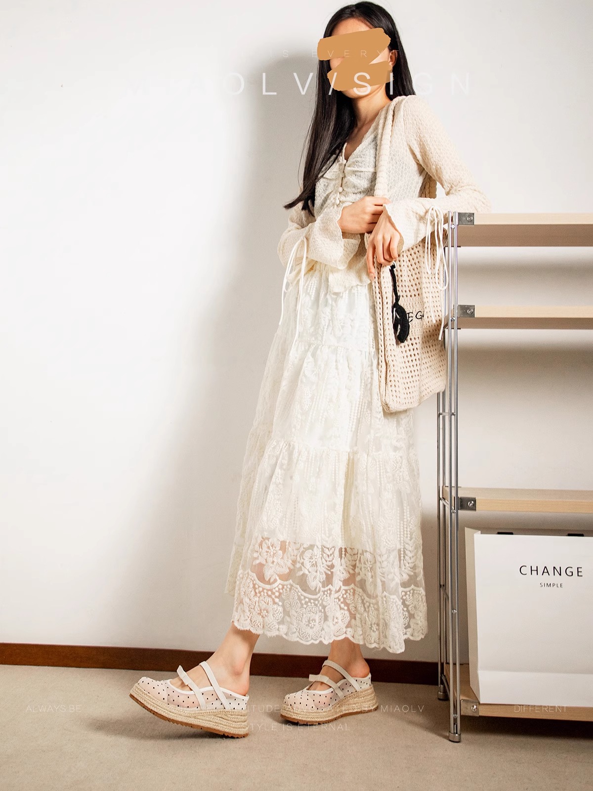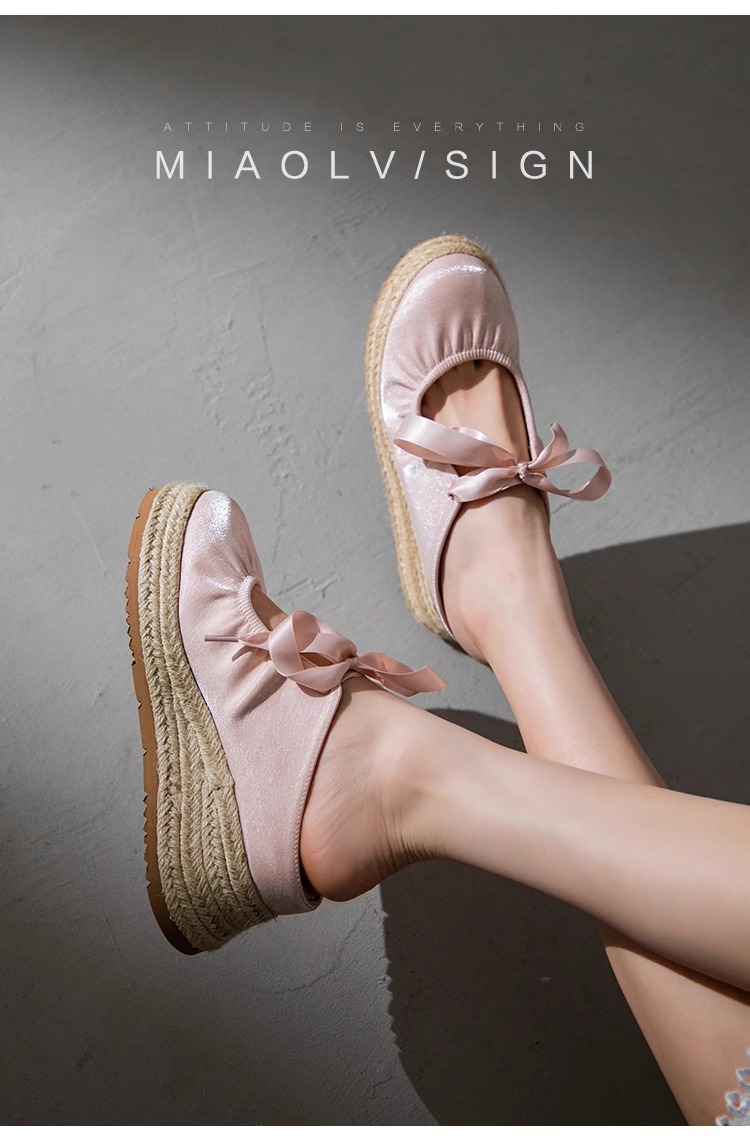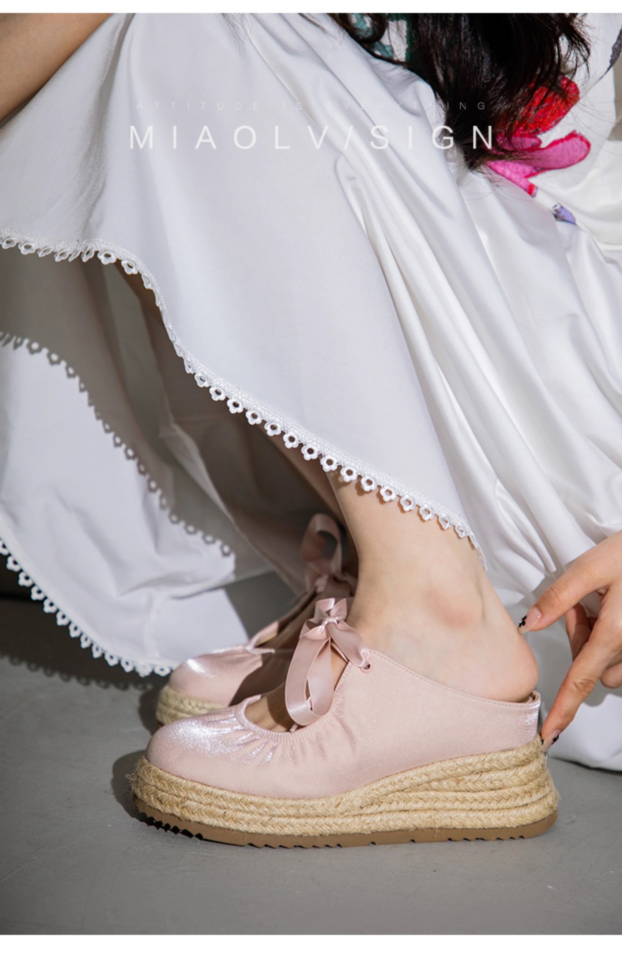 "Miao Lu" Luth mismo párrafo ~ Pantuflas de lino, mujer, ropa exterior de verano, malla, suela gruesa, cuña, sandalias de aumento interior