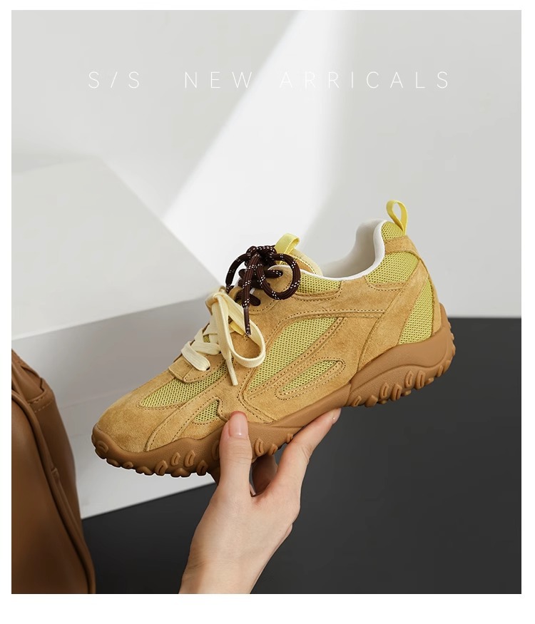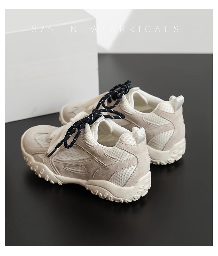 En 6cm, realce los pequeños zapatos Forrest Gump para mujer, primavera y verano, suela gruesa, deportes, ocio, malla, cuero transpirable, zapatos de entrenamiento alemán para mujer