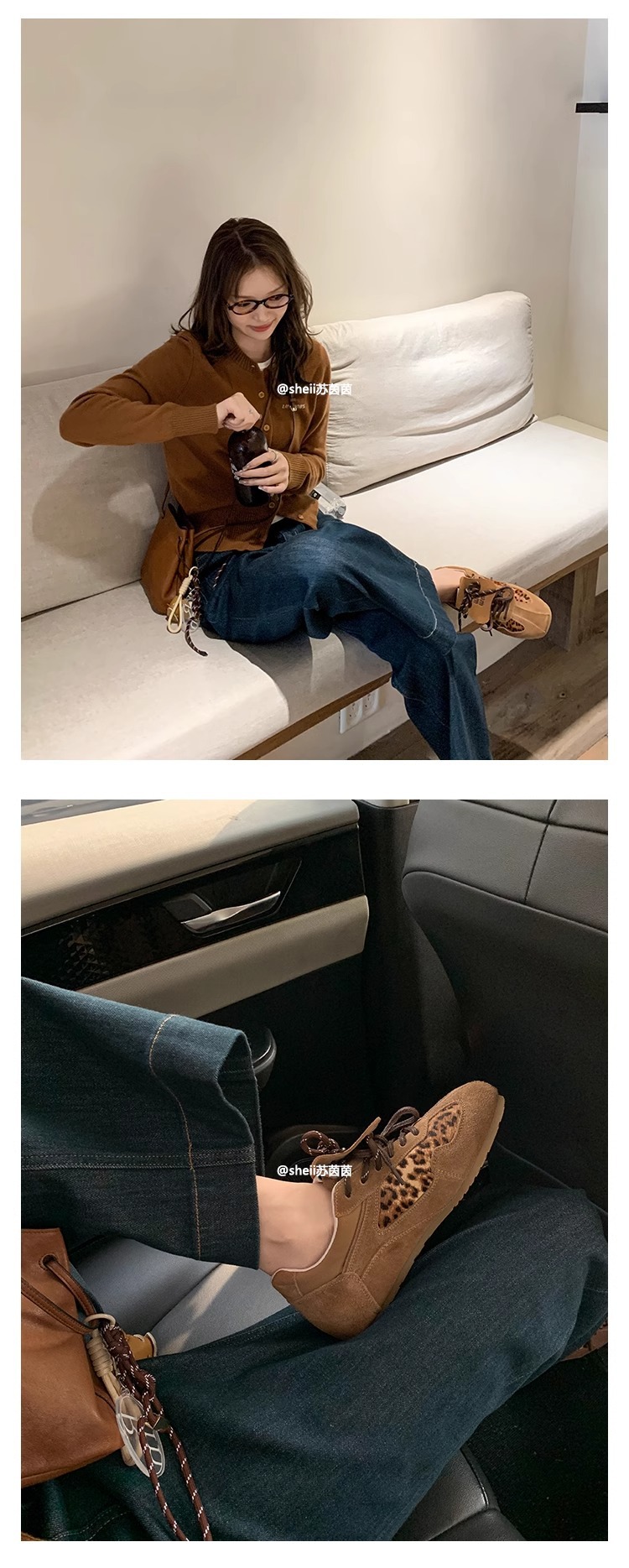 [Sheii Su Yinyin] Mei Gao colegiala ~ Retro estampado de leopardo crin deportes casuales solapa zapatos de entrenamiento alemán zapatillas de deporte para mujer
