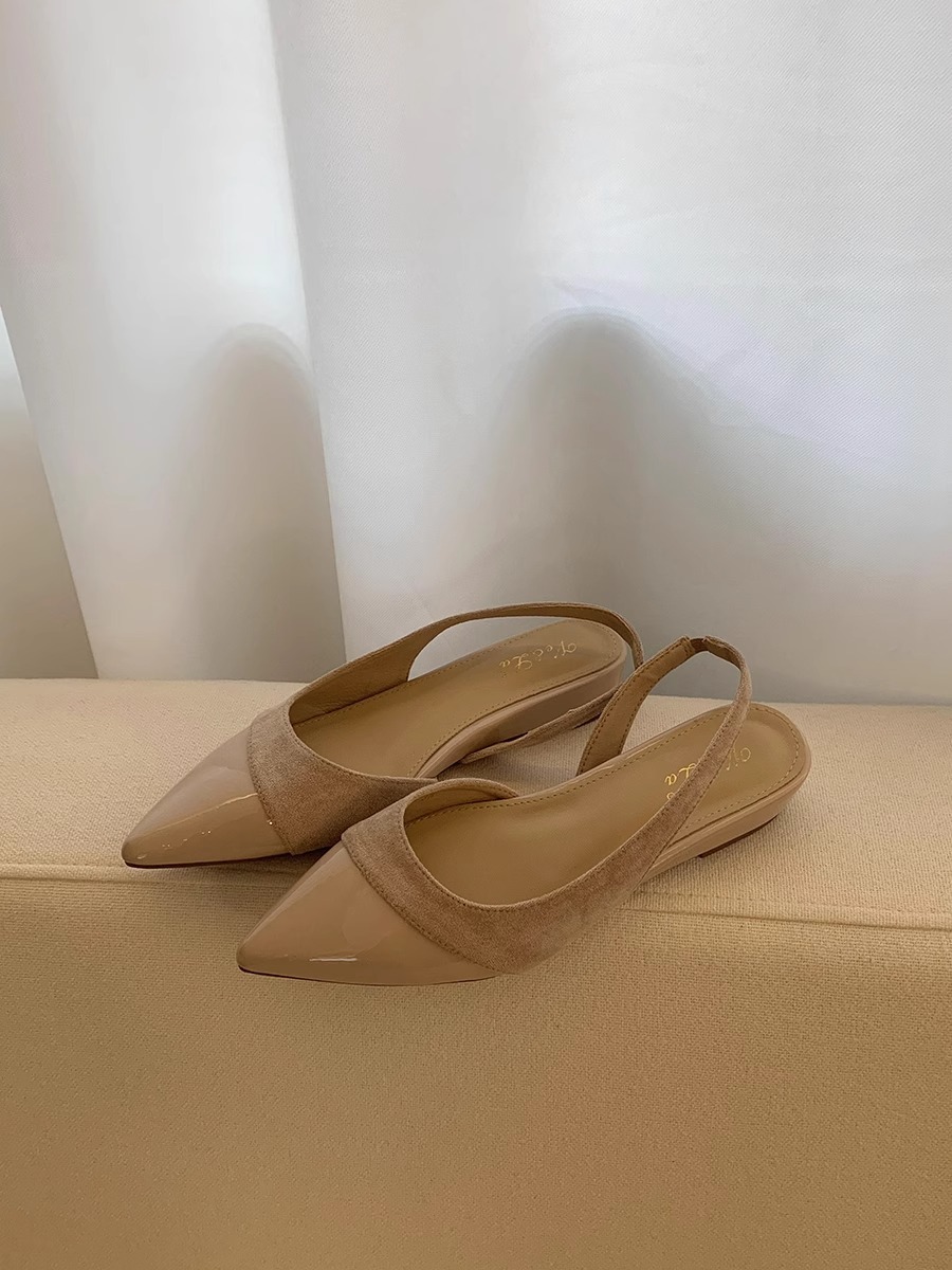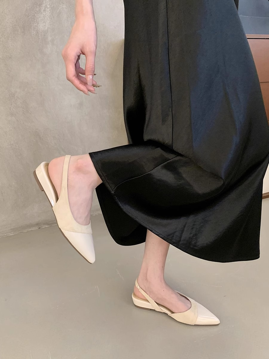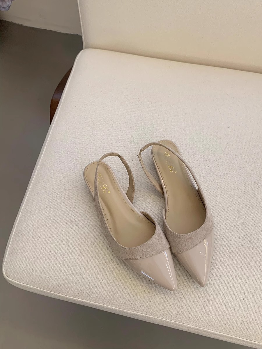 Francés de tacón bajo rosa suave Baotou sandalias zapatos de hadas 2025 nuevo estilo primavera y verano punta puntiaguda noche temperamento zapatos individuales