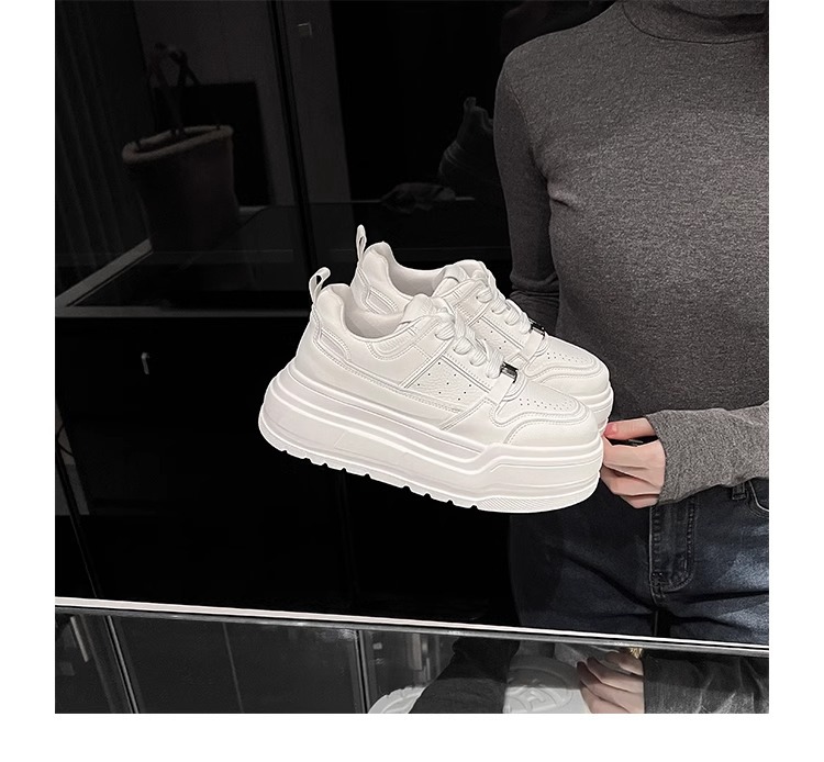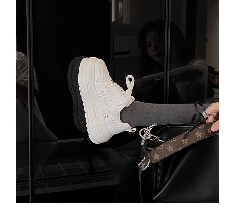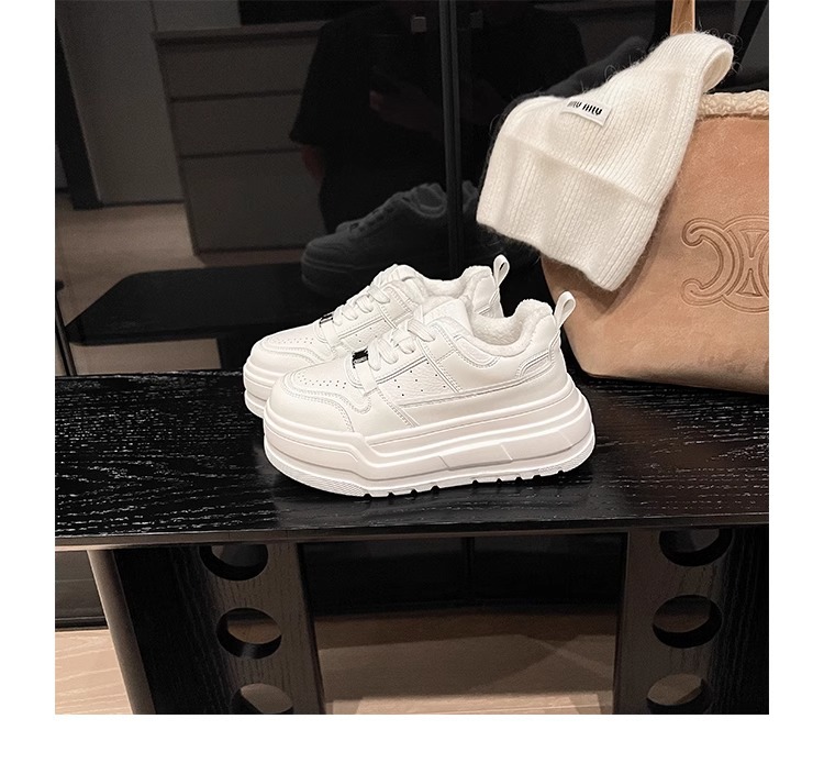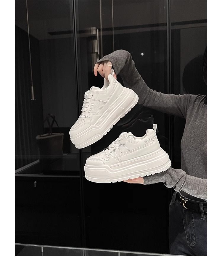 Beber leche de piel de oveja tío 6 cm de altura zapatos blancos de suela de espesor para mujeres 2025 primavera nuevos zapatos casuales de skate