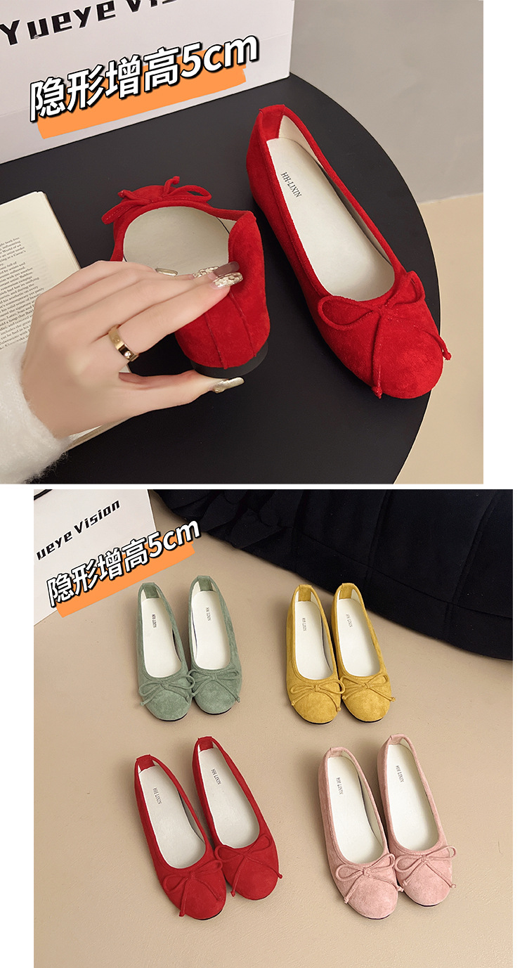 Aumentar la altura interior de la camisa de la luz de la primavera de la mujer un nuevo tipo de suela gruesa de un pie de zapatos con falda de zapatos de frijol amarillo
