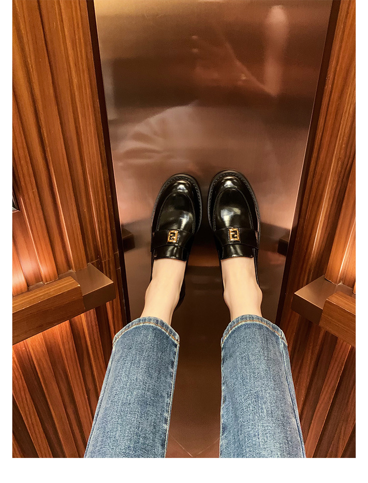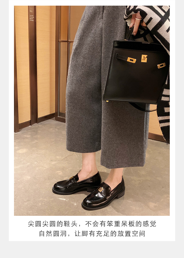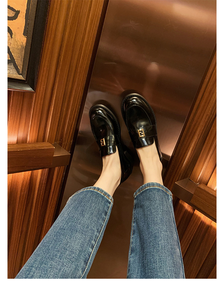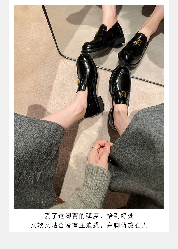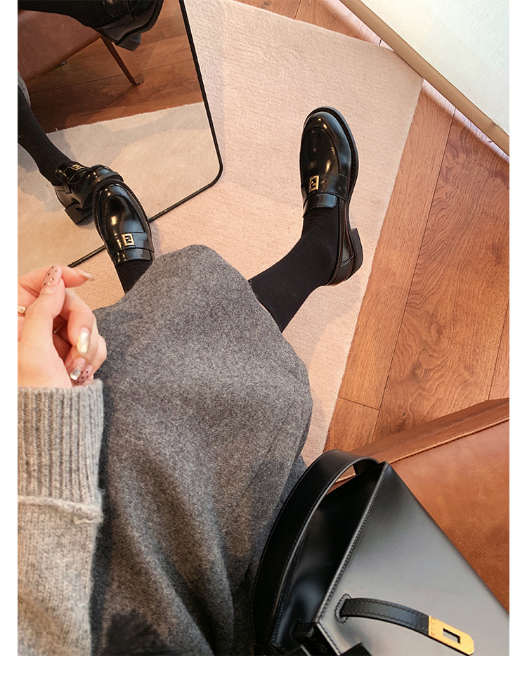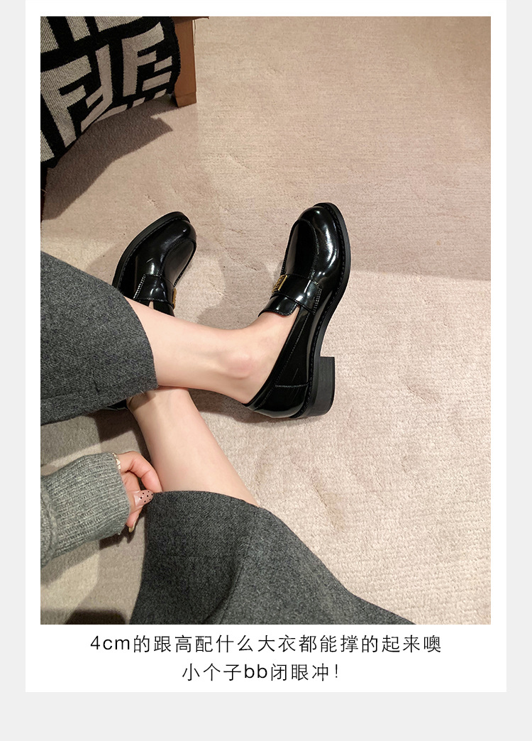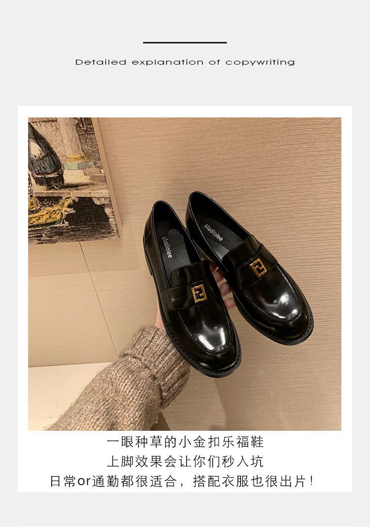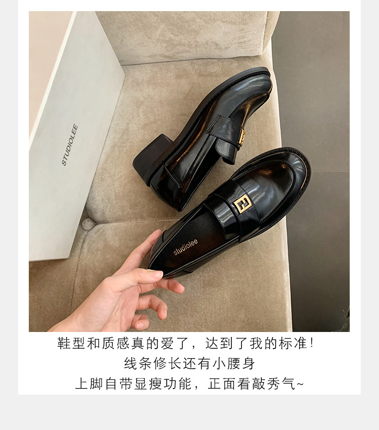 Grape Mom primavera nuevo estilo dorado pequeño botón cuadrado estilo británico cabeza redonda salvaje tacón grueso Lefu zapatos de cuero pequeño mujer