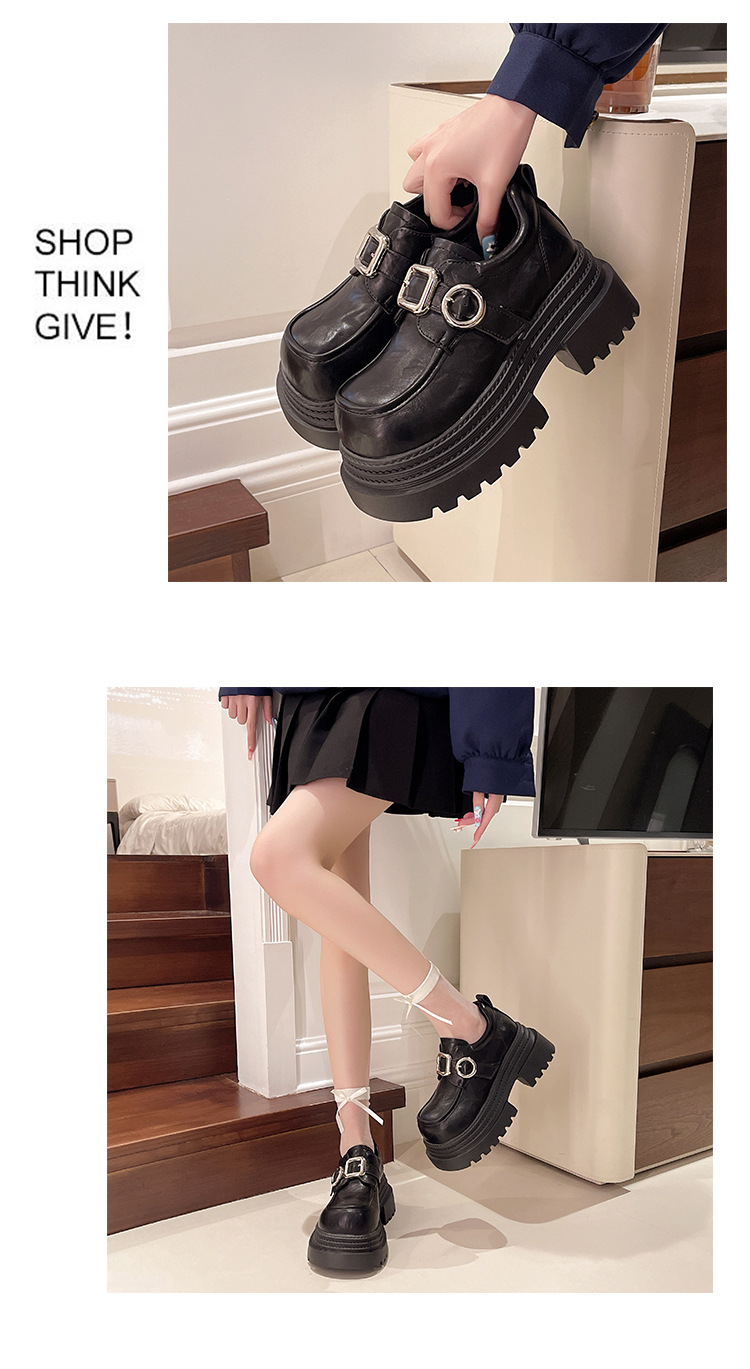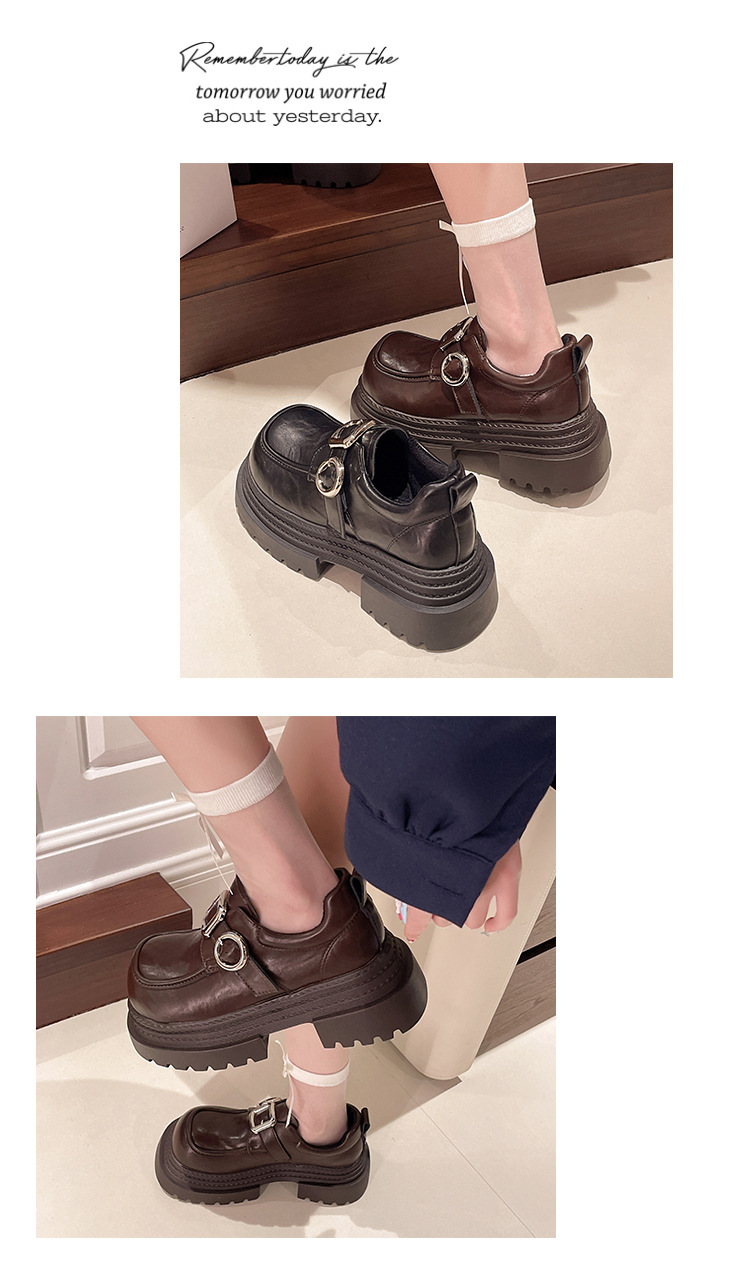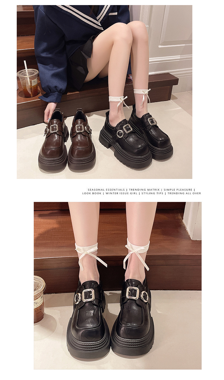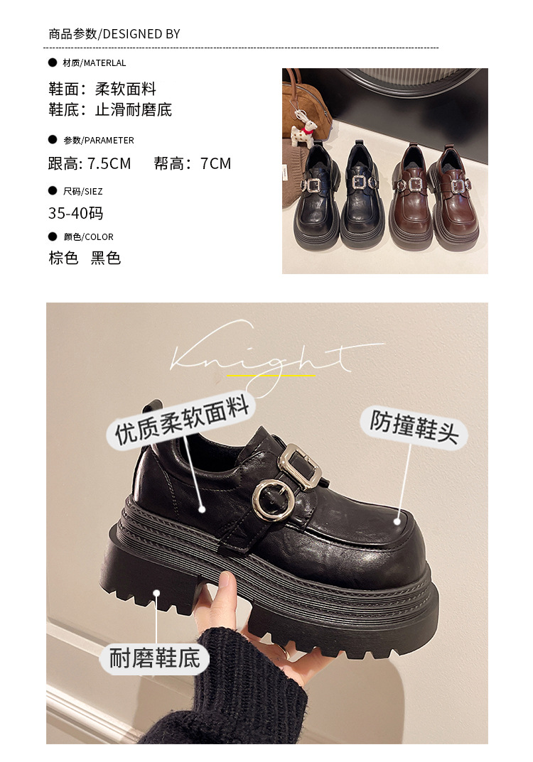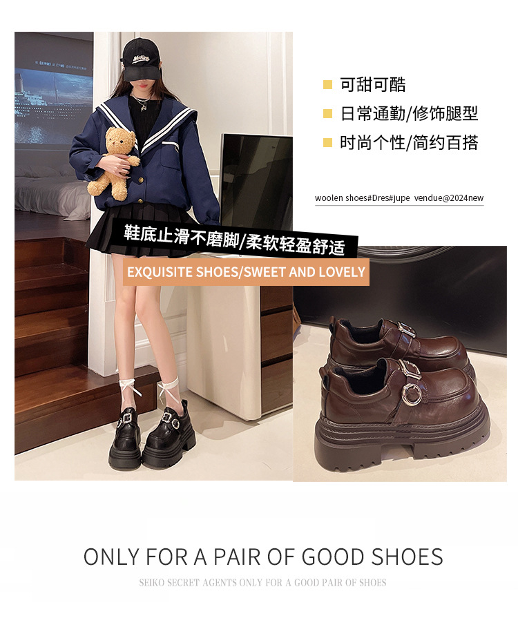 "Miaolu" chaleco de cuento de hadas ~ zapatos de fondo grueso de Lefour para mujeres de otoño y invierno de la escuela de viento de tacones gruesos zapatos de cuero jk aumento de altura zapatos simples