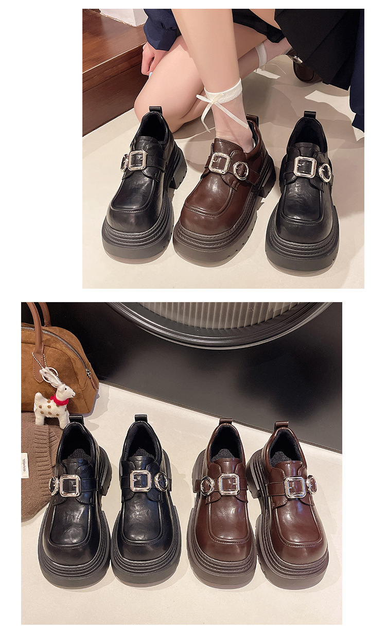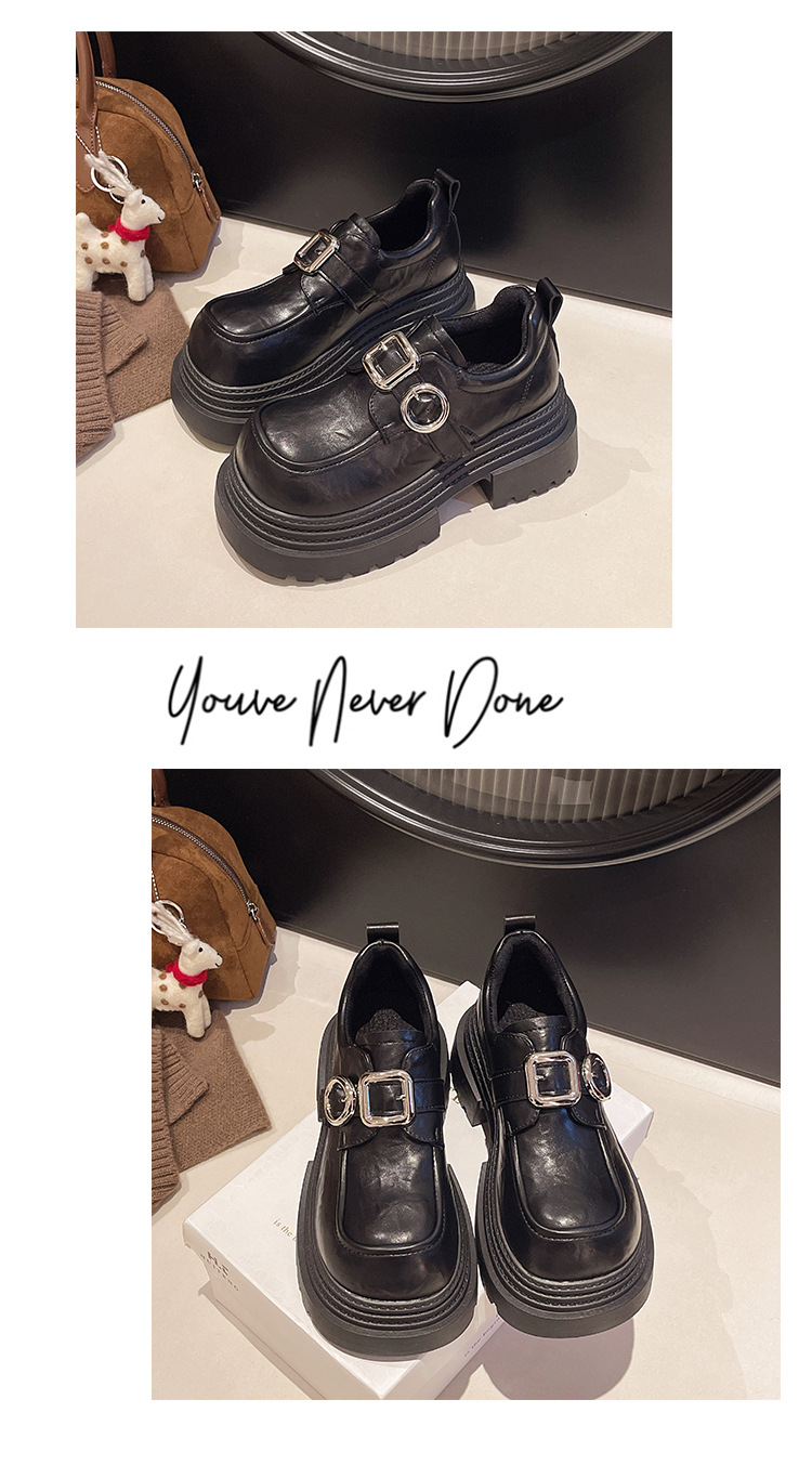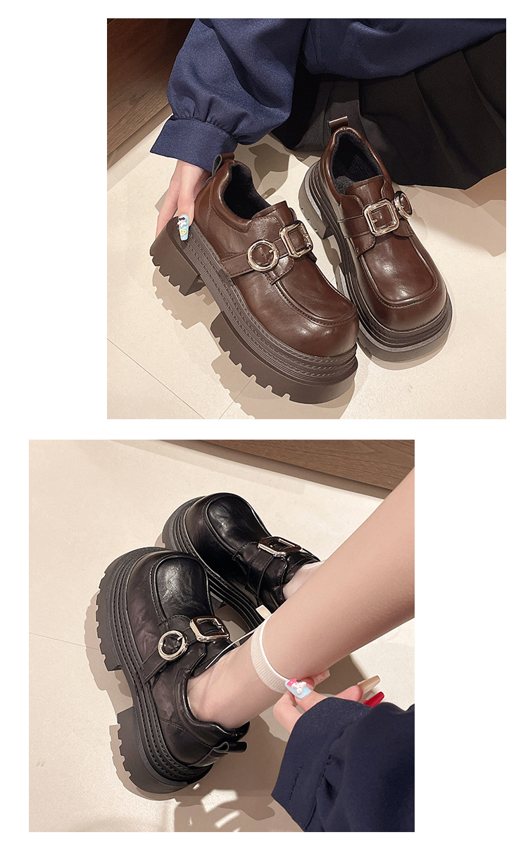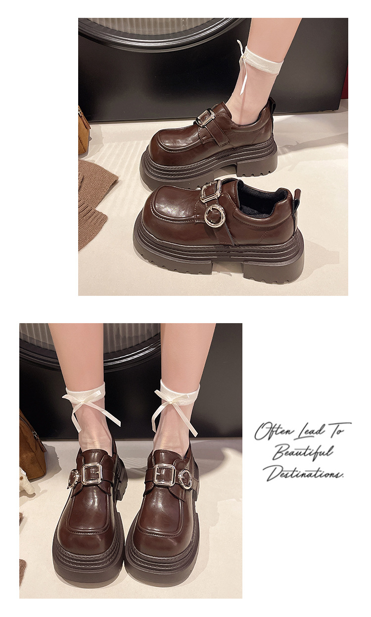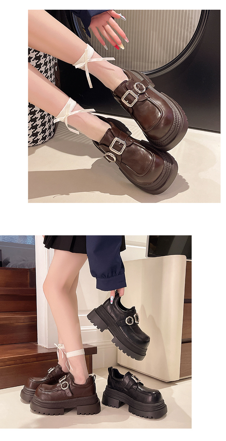 "Miaolu" chaleco de cuento de hadas ~ zapatos de fondo grueso de Lefour para mujeres de otoño y invierno de la escuela de viento de tacones gruesos zapatos de cuero jk aumento de altura zapatos simples