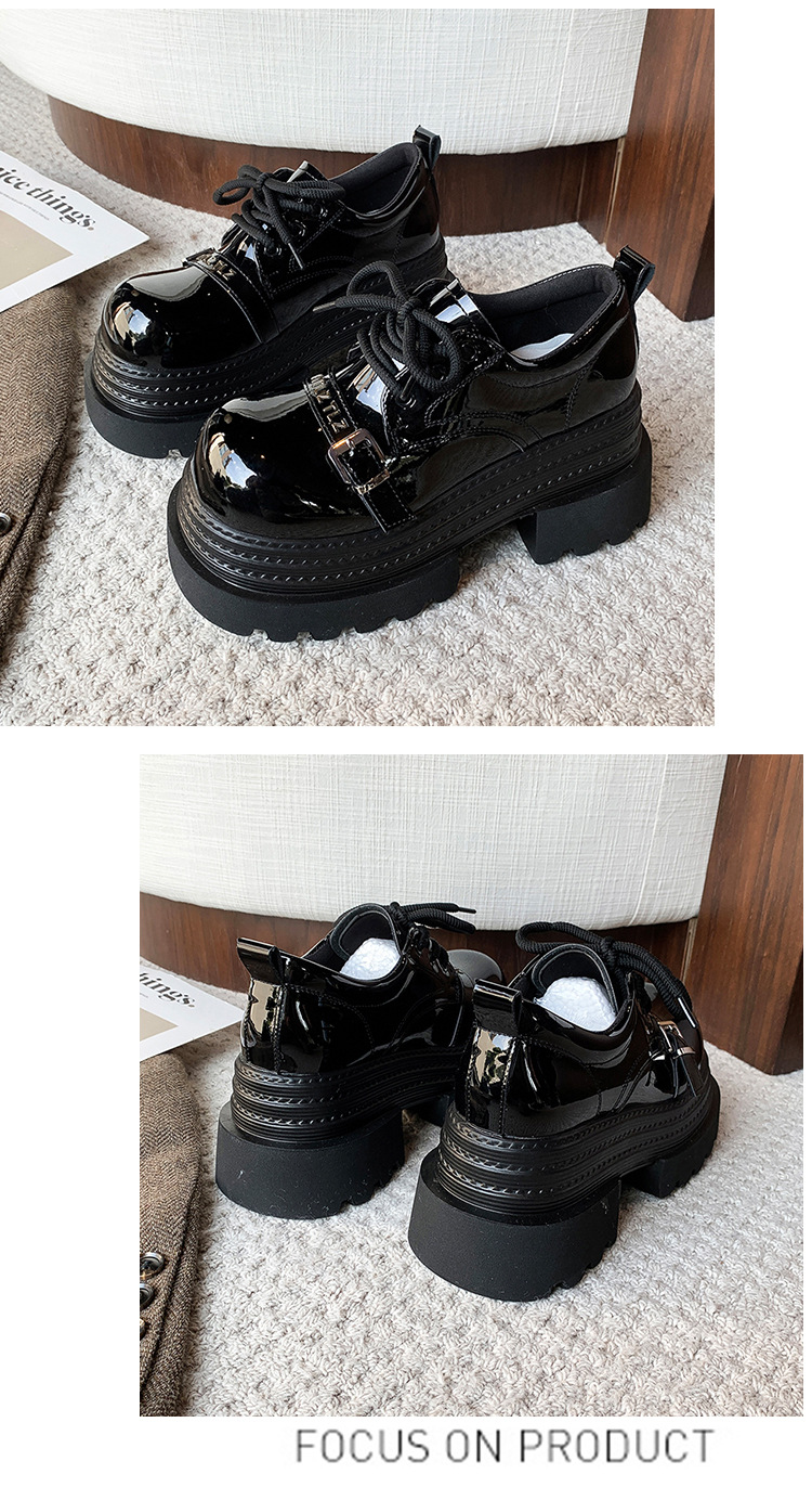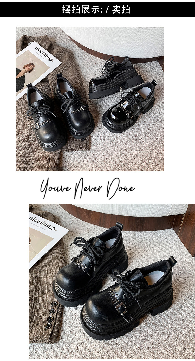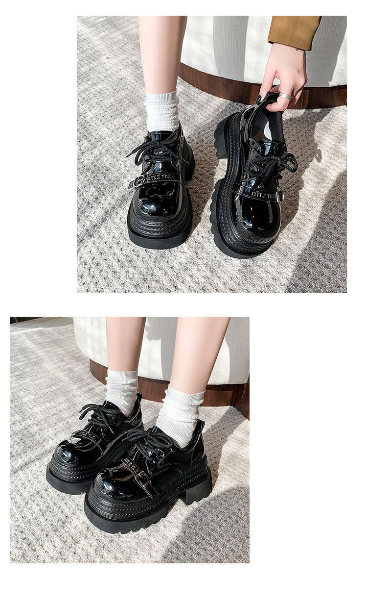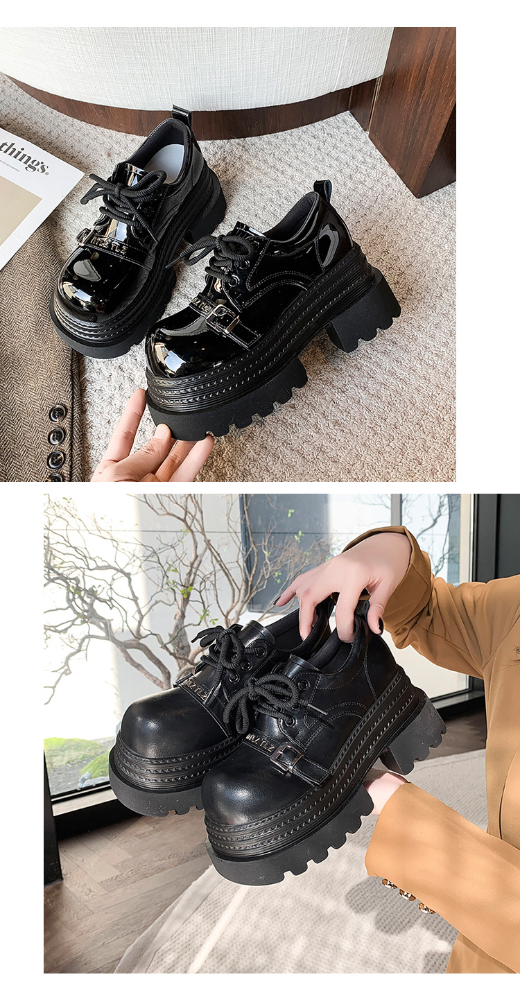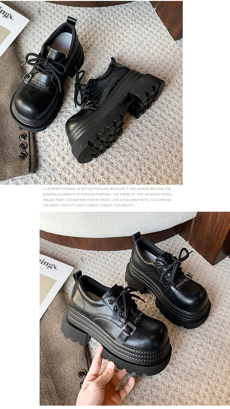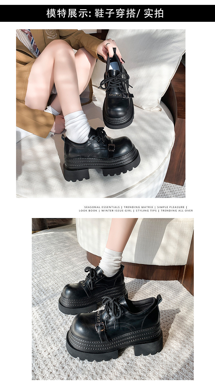 Pequeño 8cm de altura ~ cordón zapatos de Lefour zapatos de cuero para mujeres 2025 primavera universal zapatos de muffin de suela gruesa