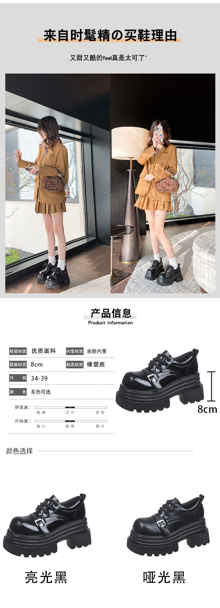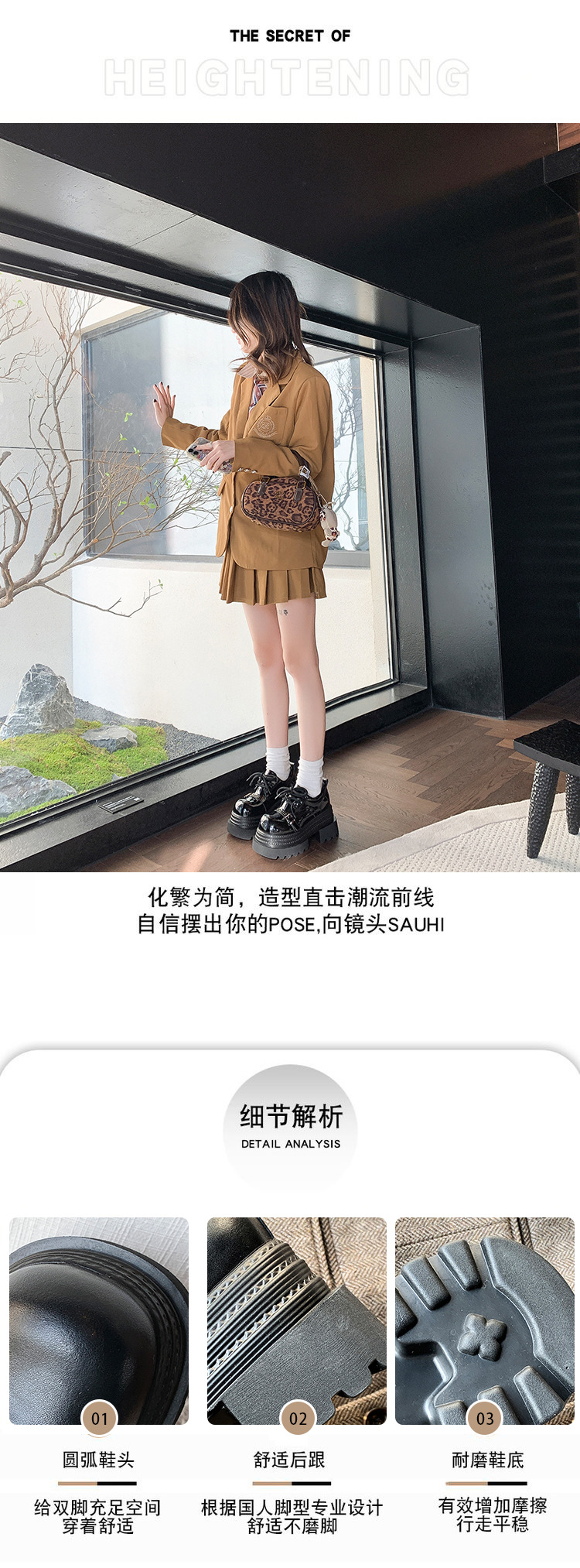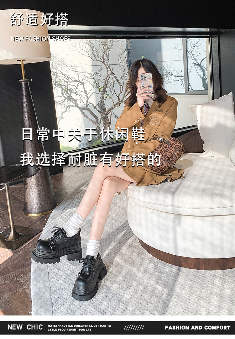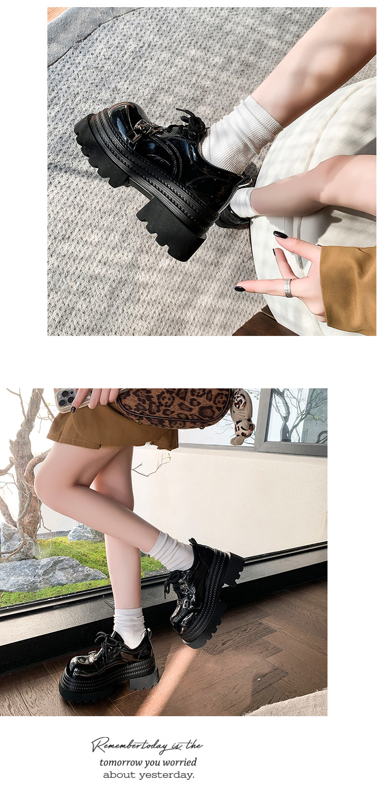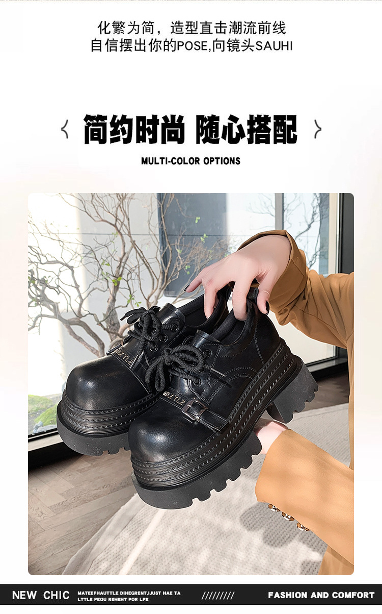 Pequeño 8cm de altura ~ cordón zapatos de Lefour zapatos de cuero para mujeres 2025 primavera universal zapatos de muffin de suela gruesa