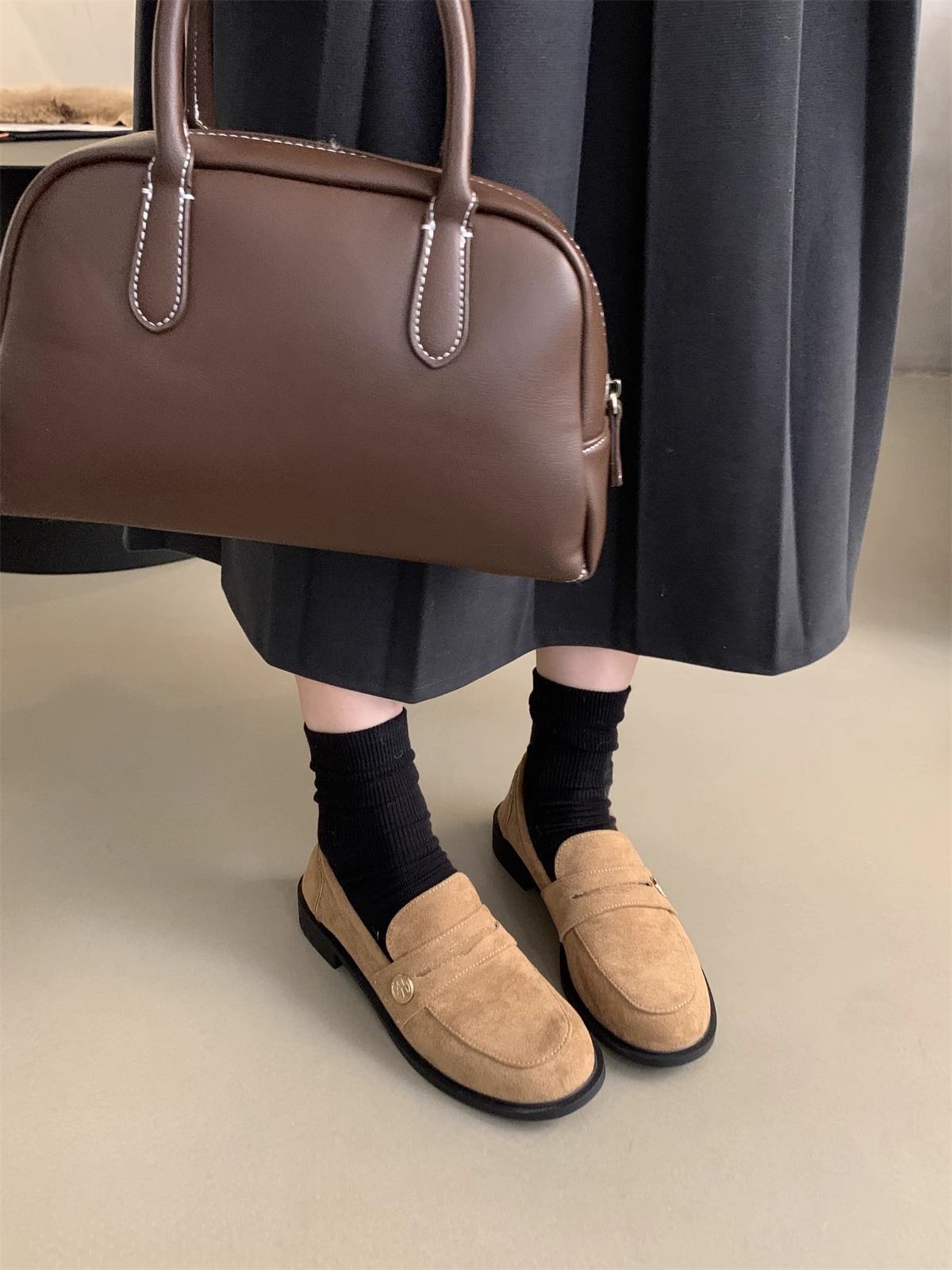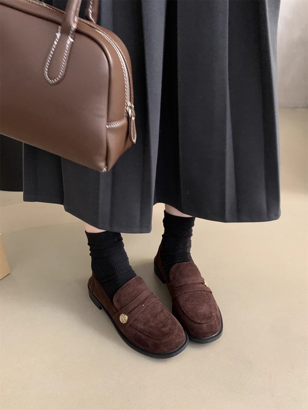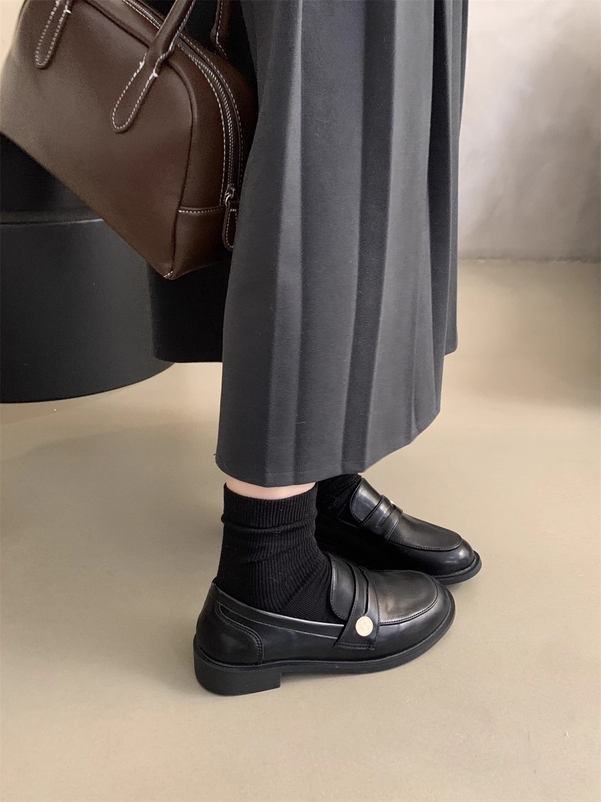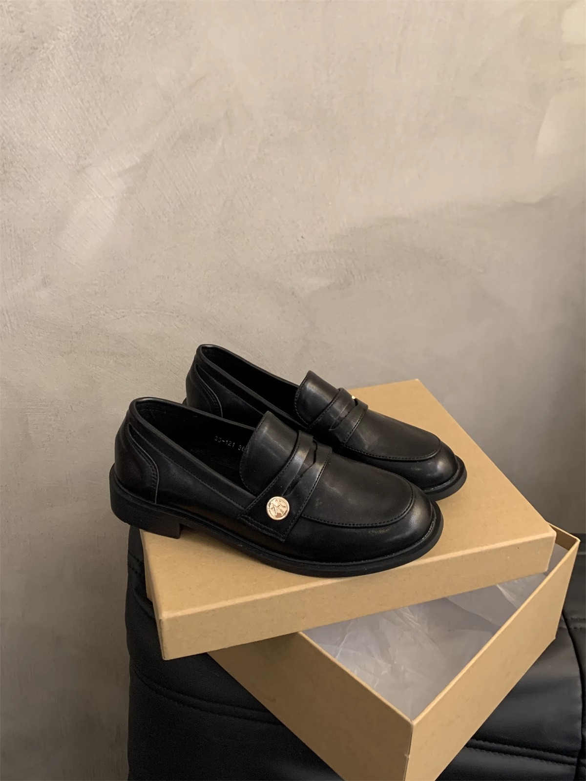 Zapatos de cuero pequeños británicos para mujer 2025 primavera nuevo estilo francés de estilo coreano cabeza redonda retro viaje un pie tacón grueso mocasines