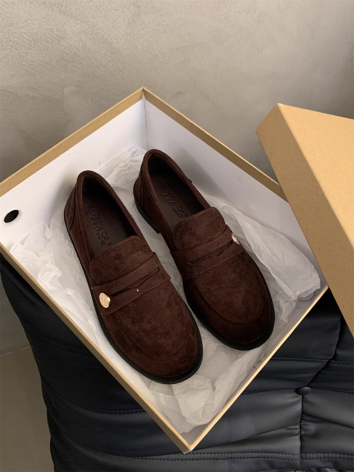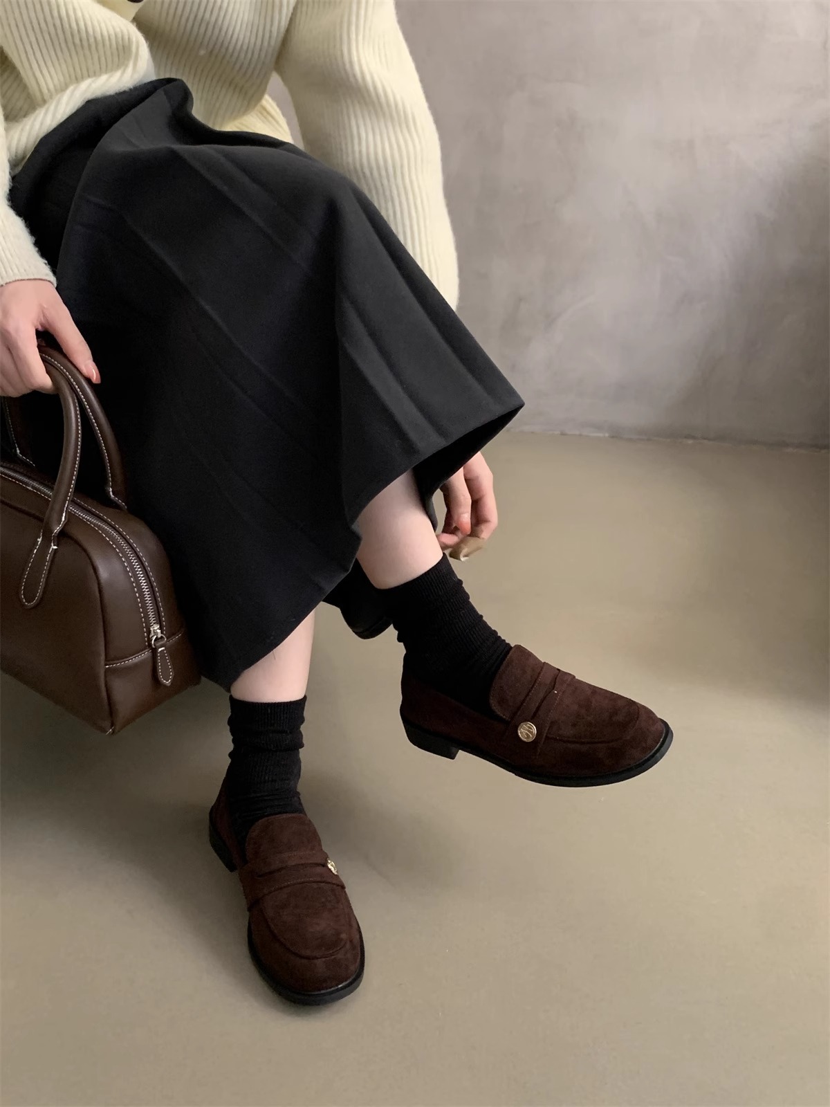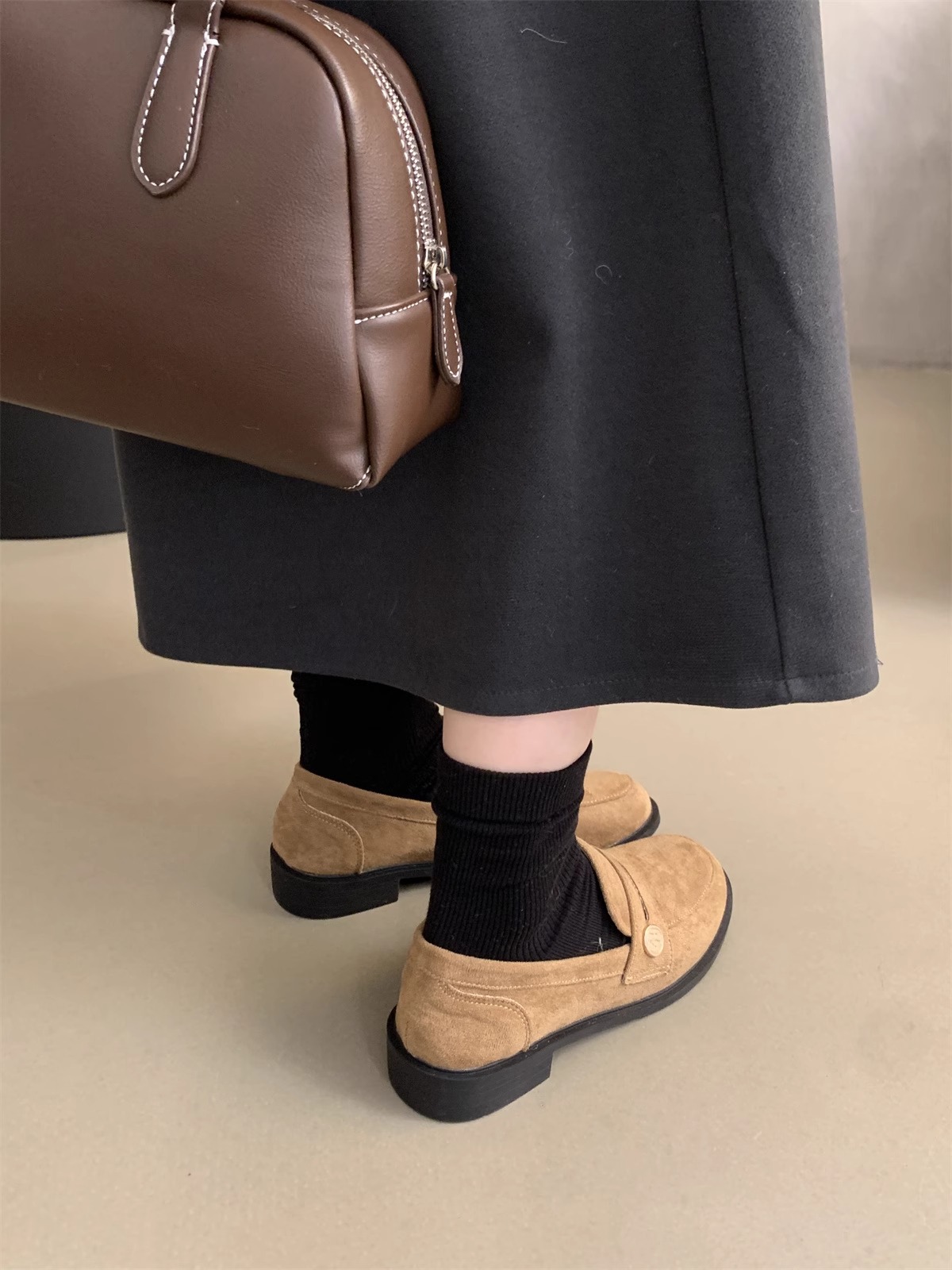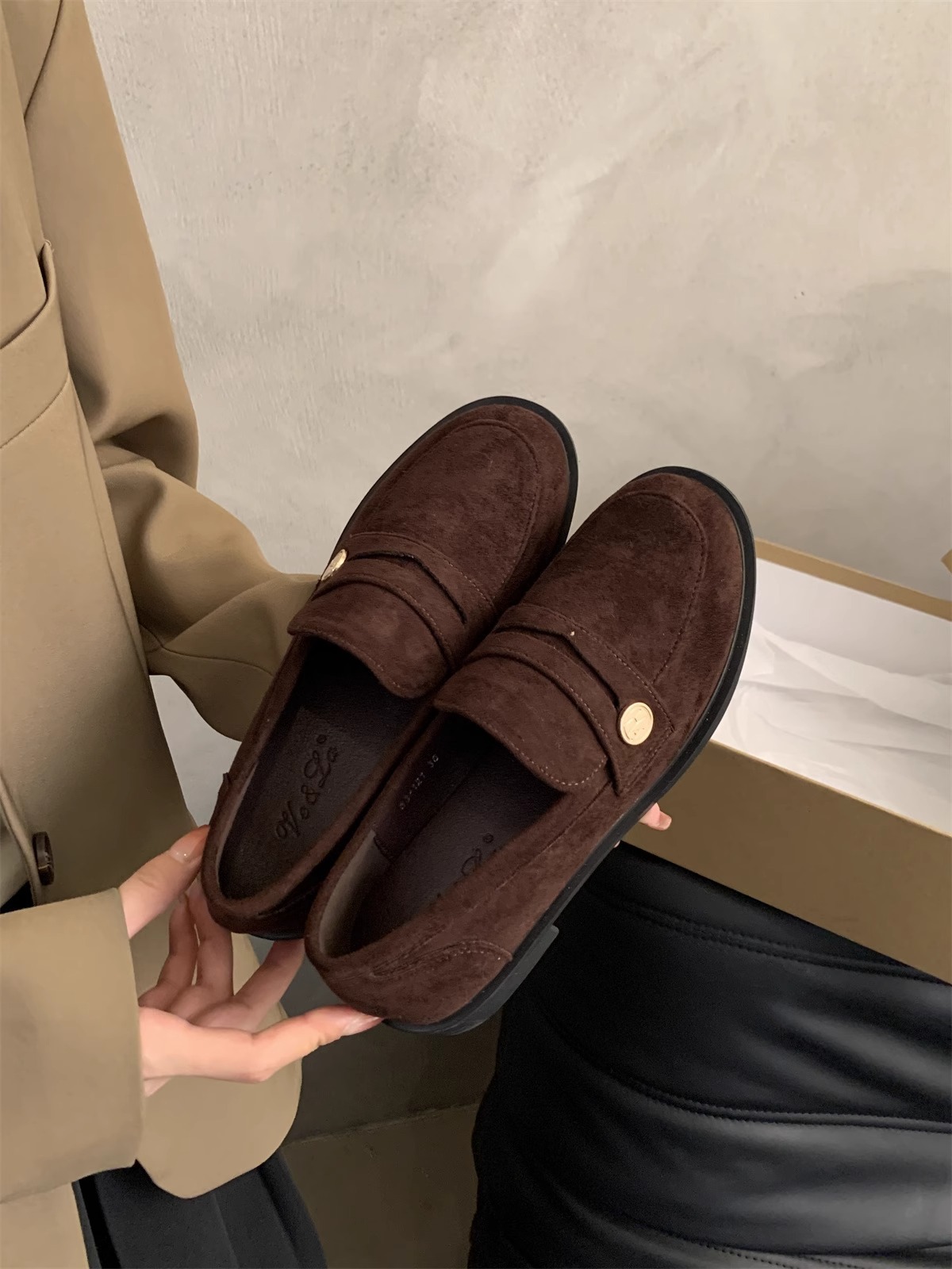 Zapatos de cuero pequeños británicos para mujer 2025 primavera nuevo estilo francés de estilo coreano cabeza redonda retro viaje un pie tacón grueso mocasines