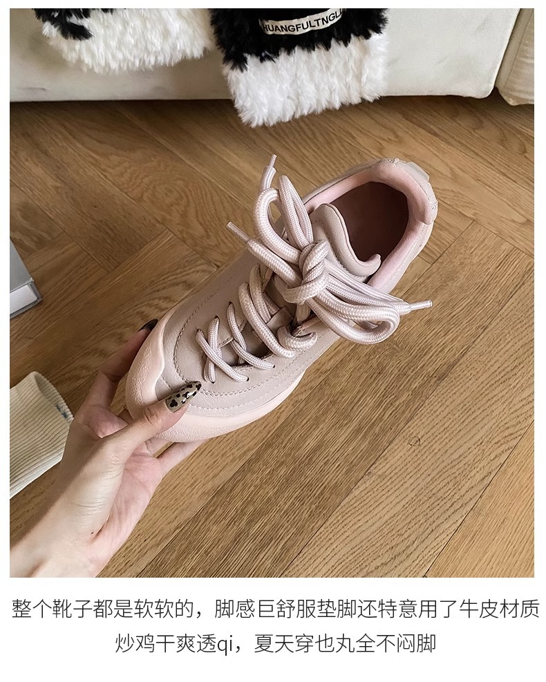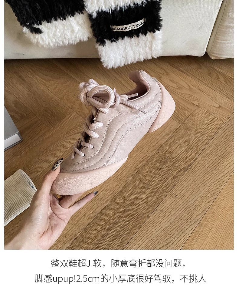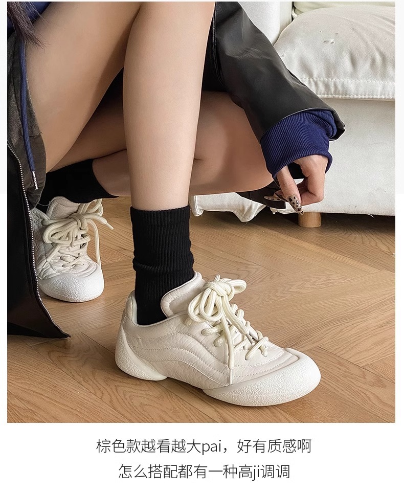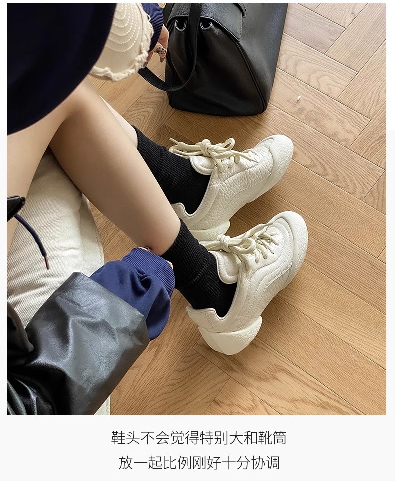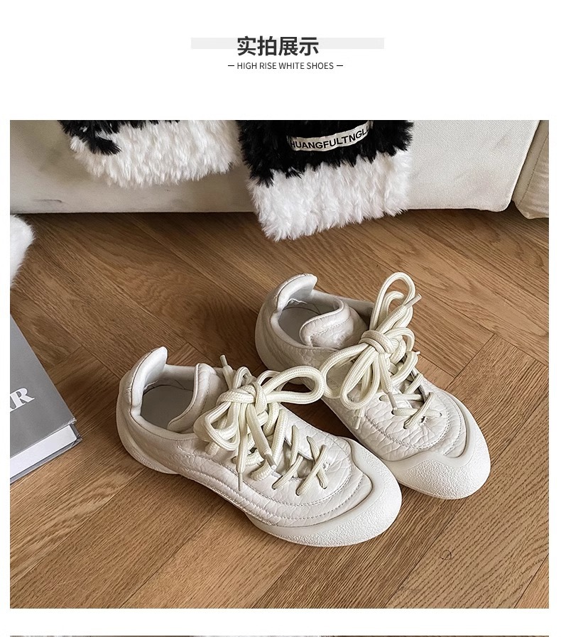 Chao Bunan ~ zapatos blancos con suela gruesa de lazos pareja de zapatos de entrenamiento 24 otoño y invierno zapatos de piel agrietados Flexion