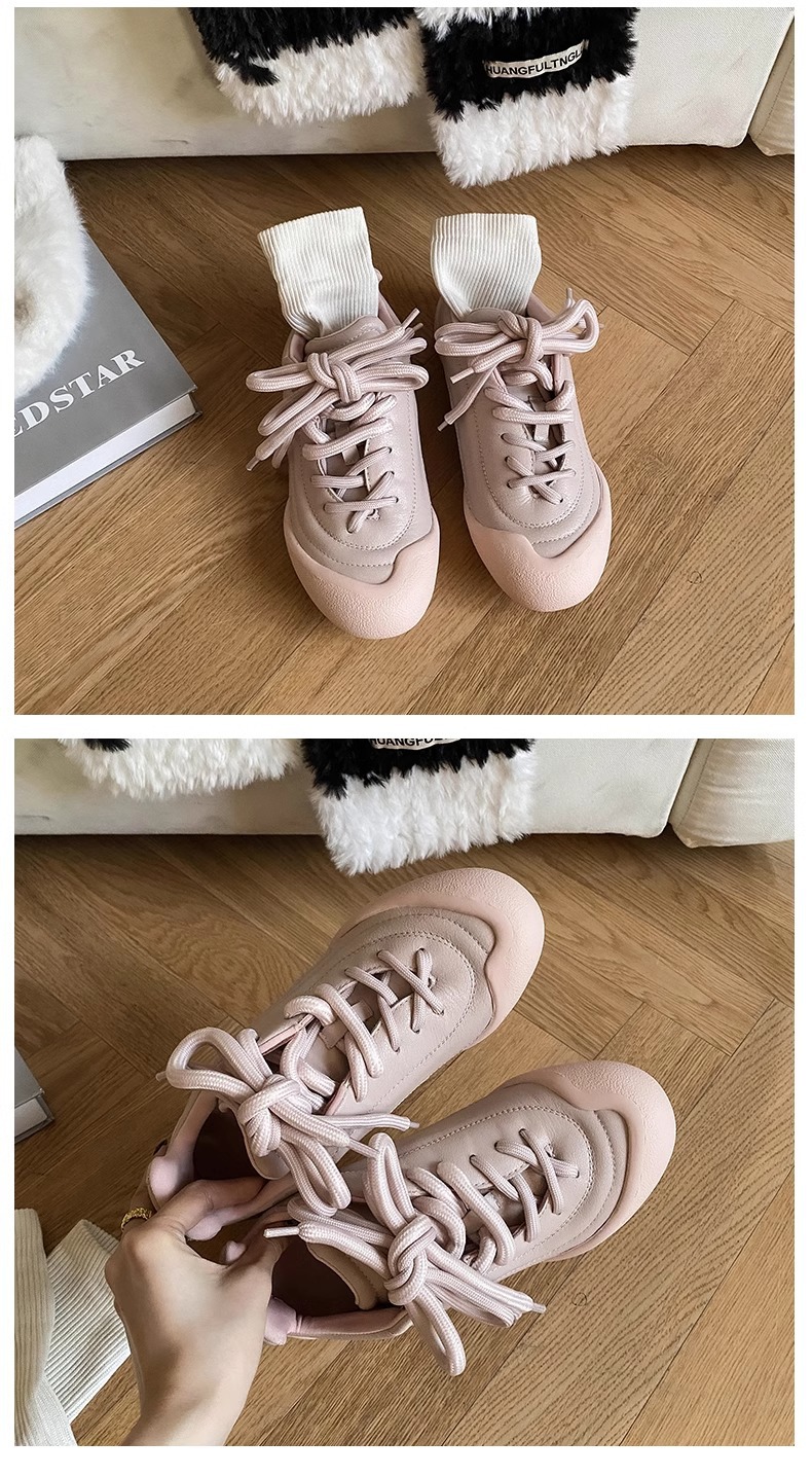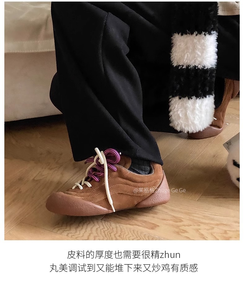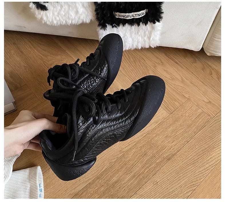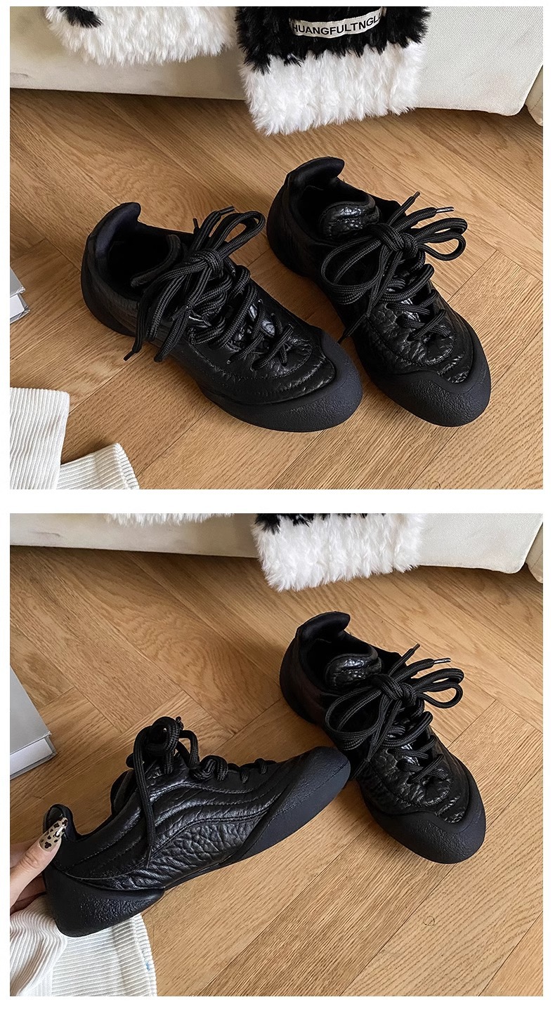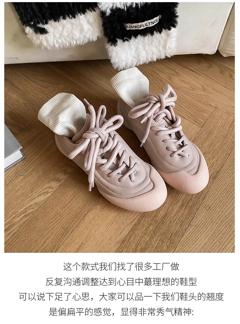 Chao Bunan ~ zapatos blancos con suela gruesa de lazos pareja de zapatos de entrenamiento 24 otoño y invierno zapatos de piel agrietados Flexion