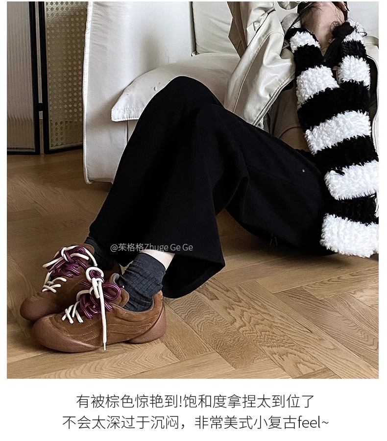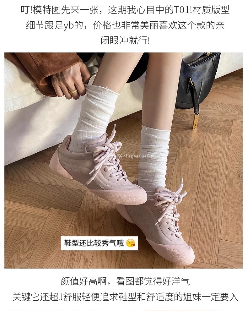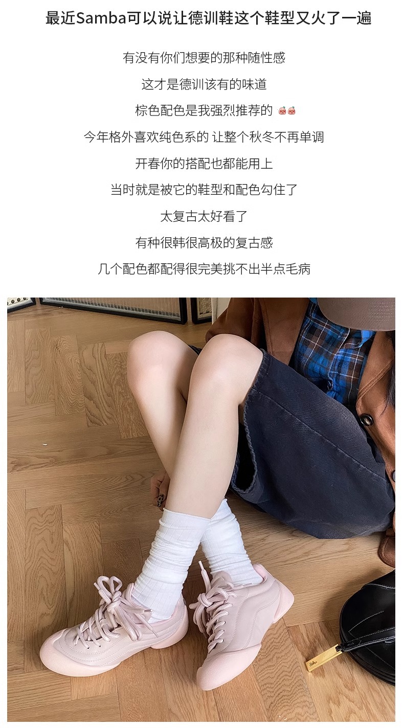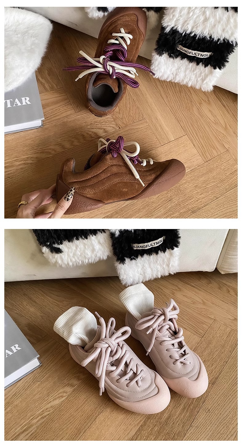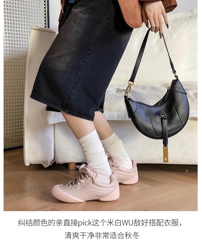 Chao Bunan ~ zapatos blancos con suela gruesa de lazos pareja de zapatos de entrenamiento 24 otoño y invierno zapatos de piel agrietados Flexion
