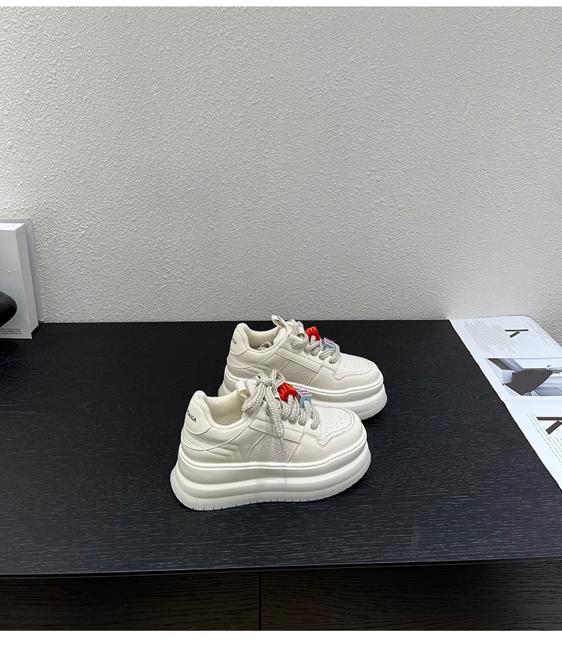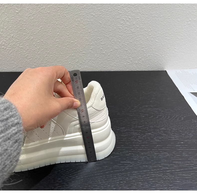 Pequeño 6cm de cuero más zapatos muffins de lana mujeres 2024 invierno nueva moda versátil pan casual pequeño zapatos blancos moda