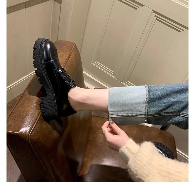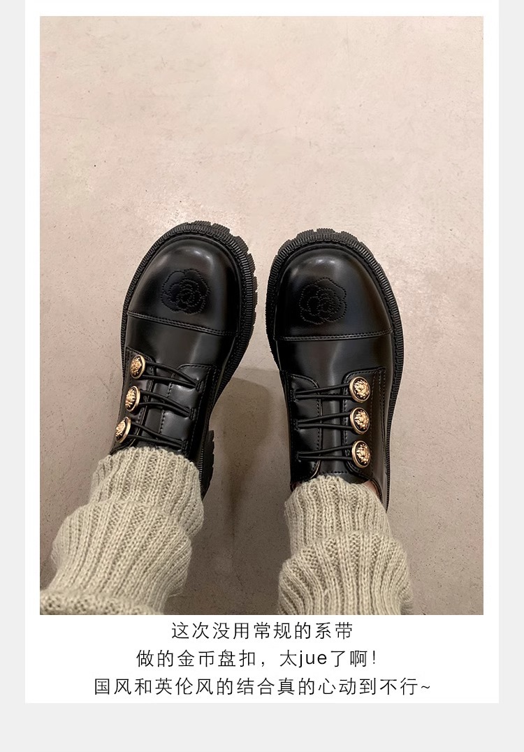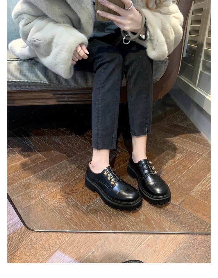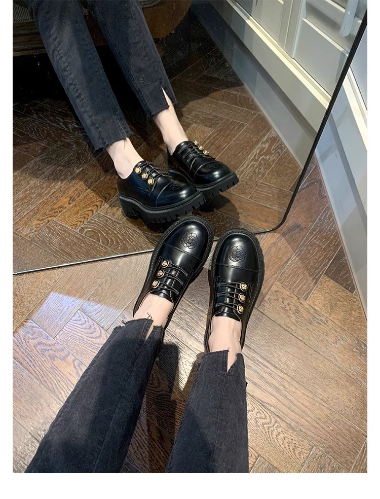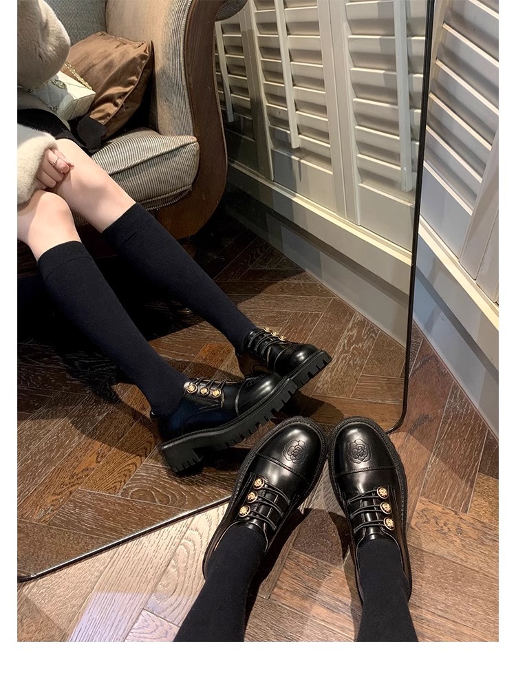Grava madre studiolee Hepburn estilo retrógrado zapatos de soleas gruesas bordados de tacón grueso Lefour zapatos de cuero de mujer primavera y otoño