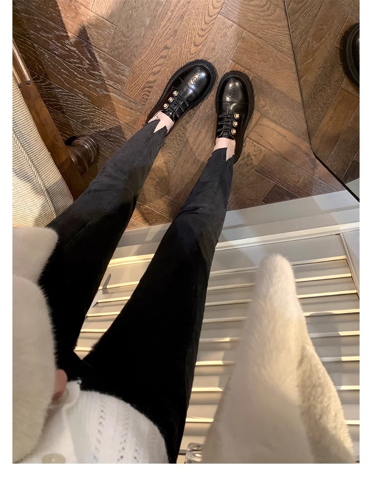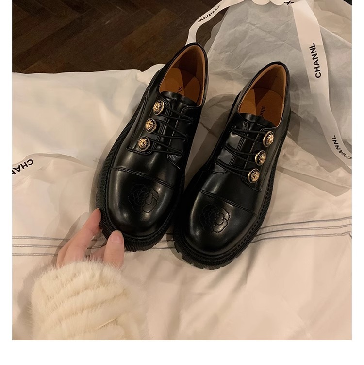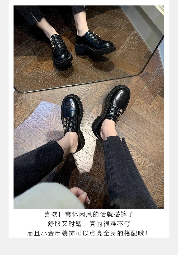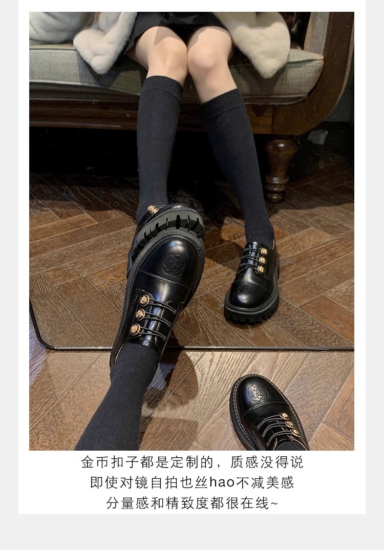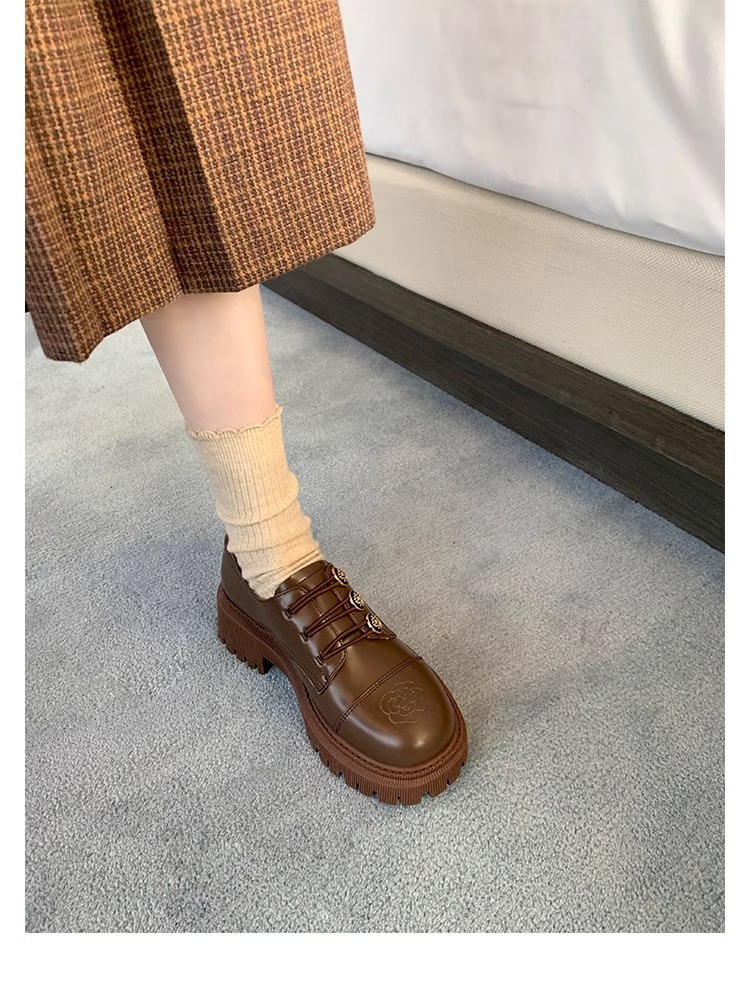 Grava madre studiolee Hepburn estilo retrógrado zapatos de soleas gruesas bordados de tacón grueso Lefour zapatos de cuero de mujer primavera y otoño