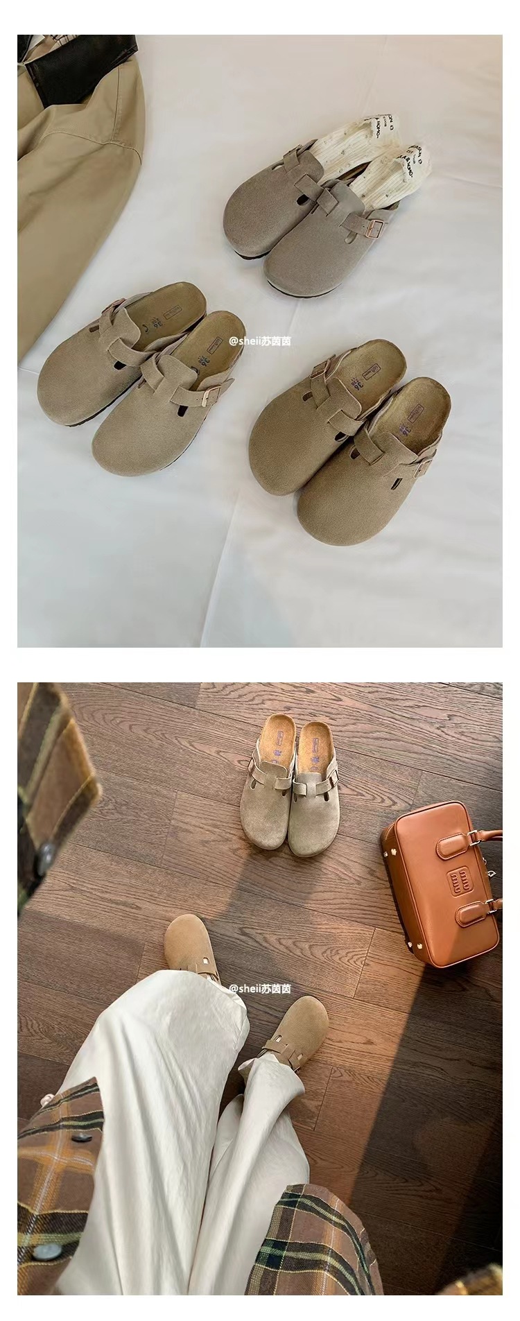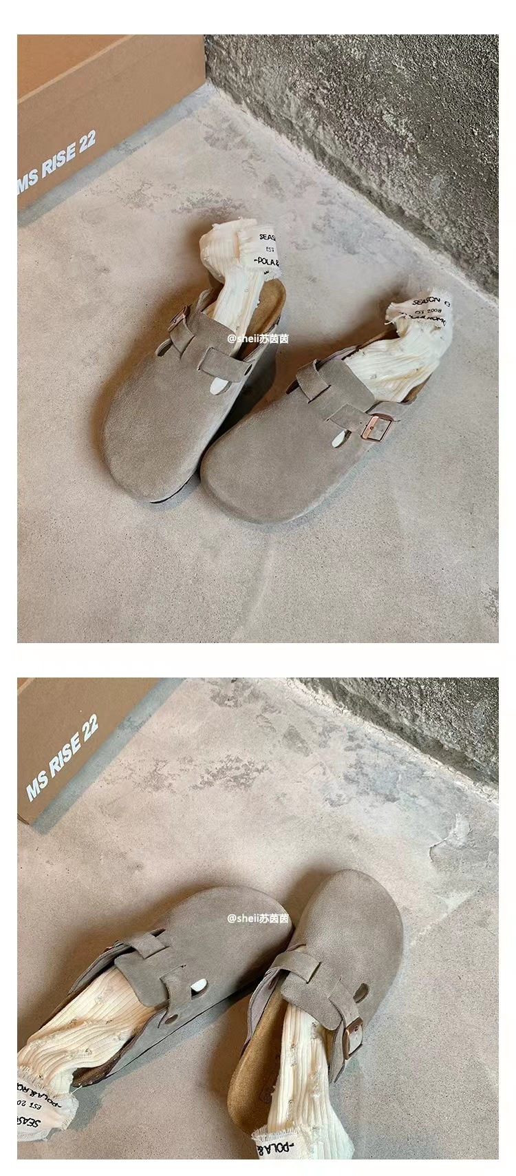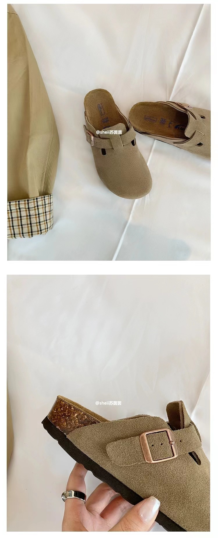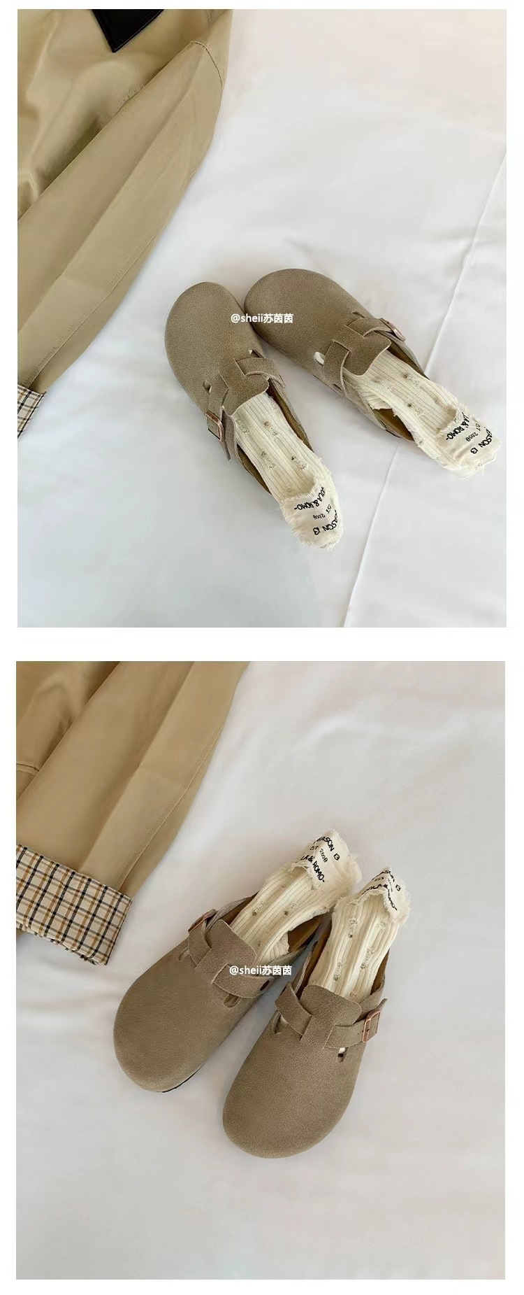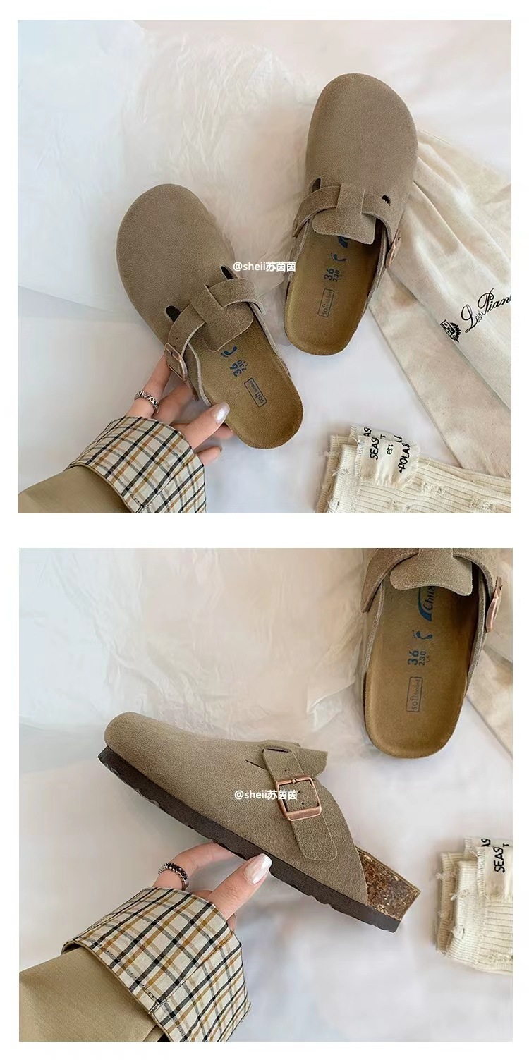 Su Yan Yan ~ otoño nuevo redondo cuero hebilla casuales zapatillas de fondo grueso Bocken zapatillas de mujer