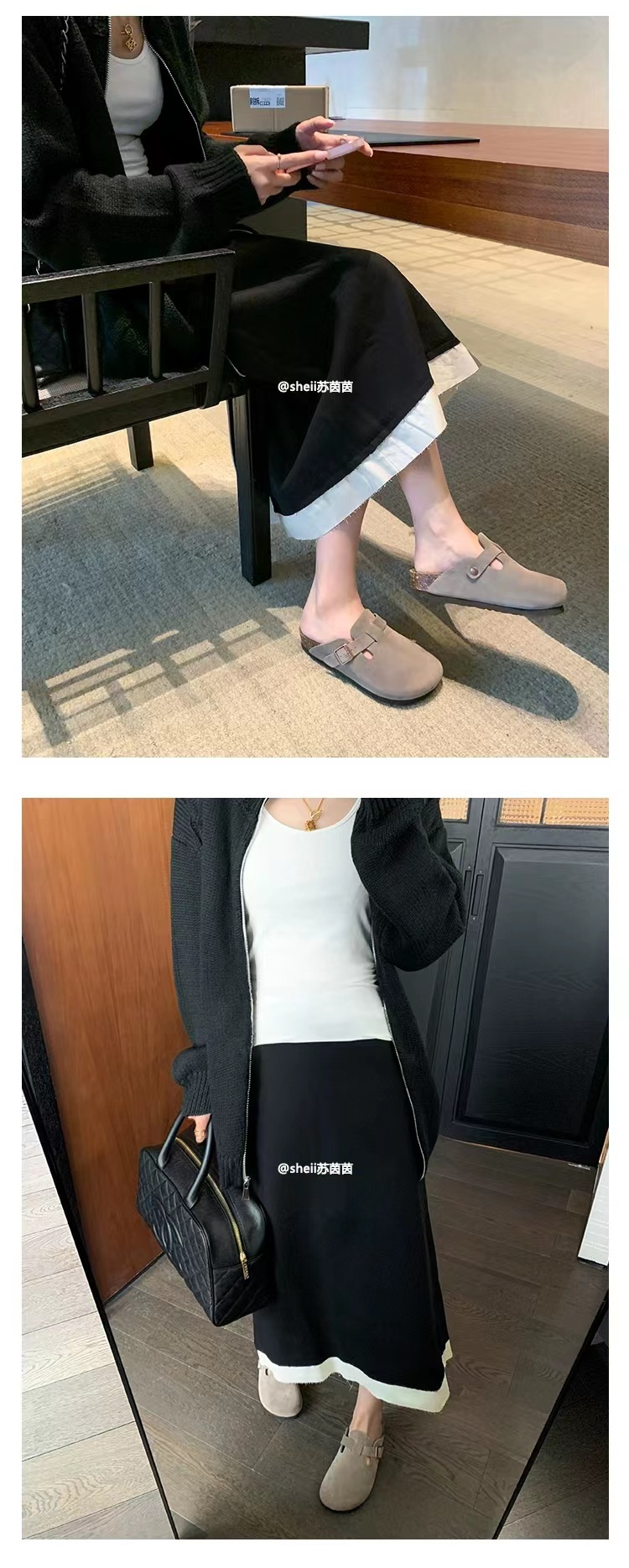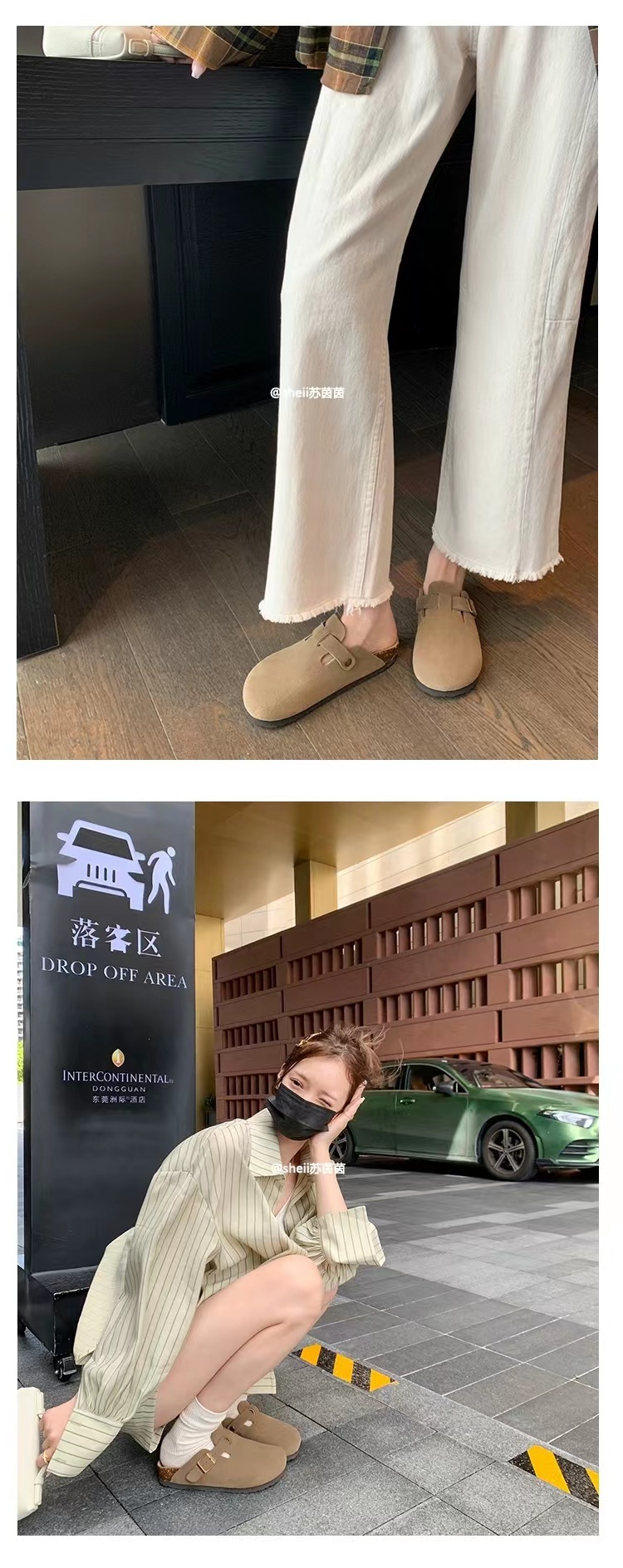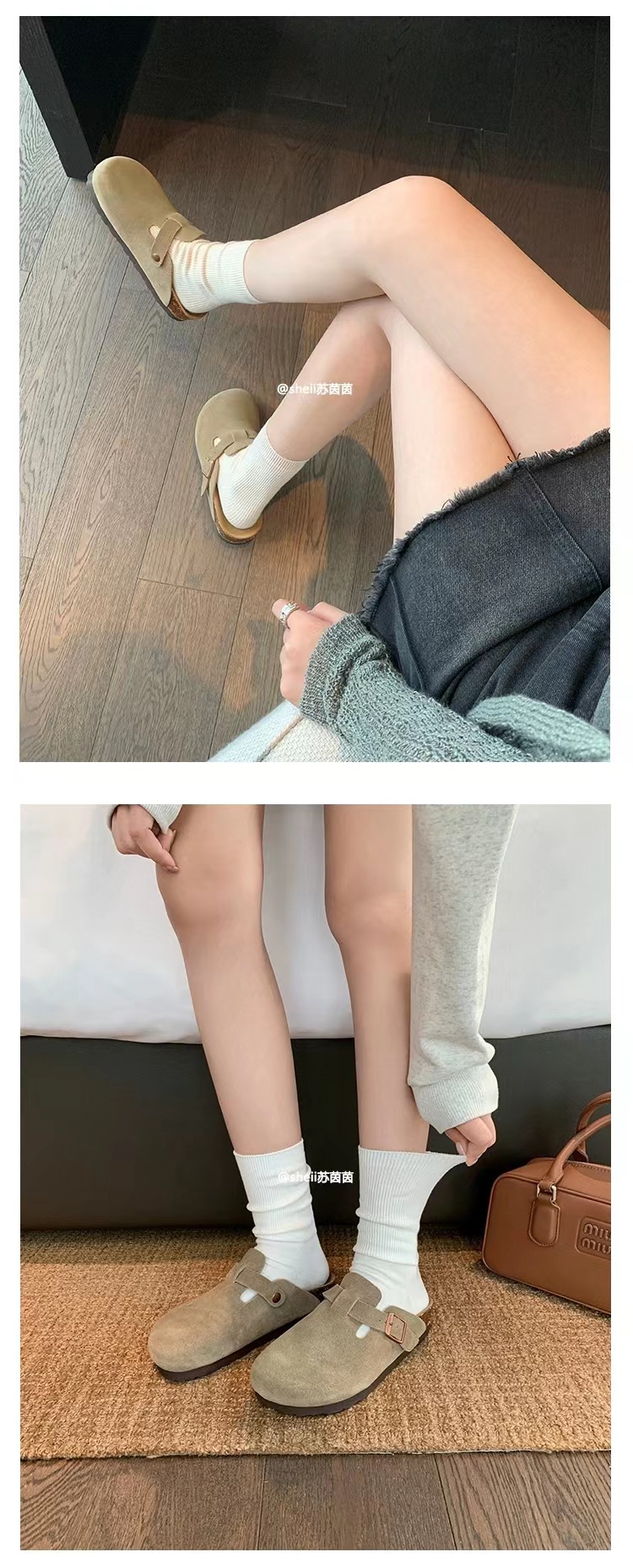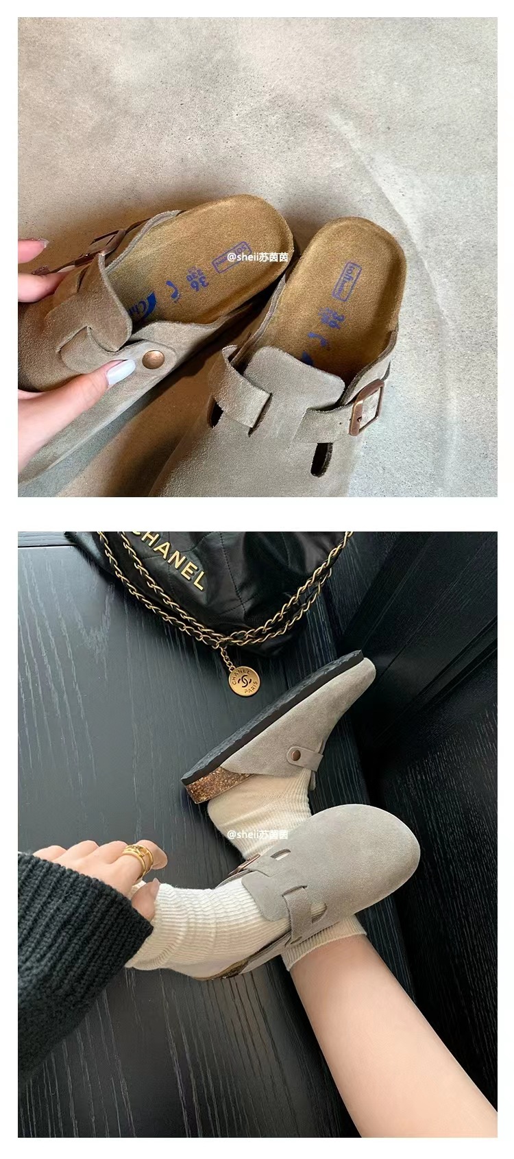 Su Yan Yan ~ otoño nuevo redondo cuero hebilla casuales zapatillas de fondo grueso Bocken zapatillas de mujer