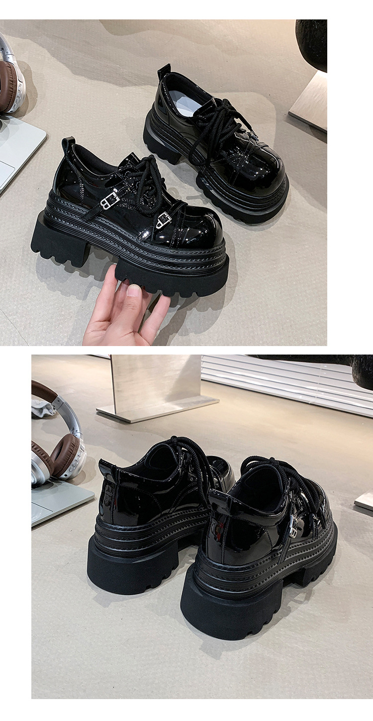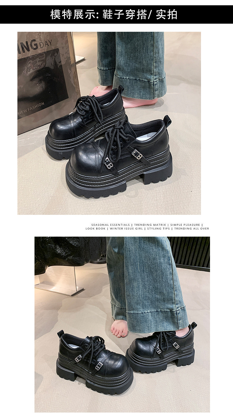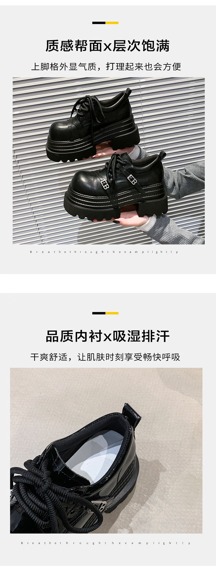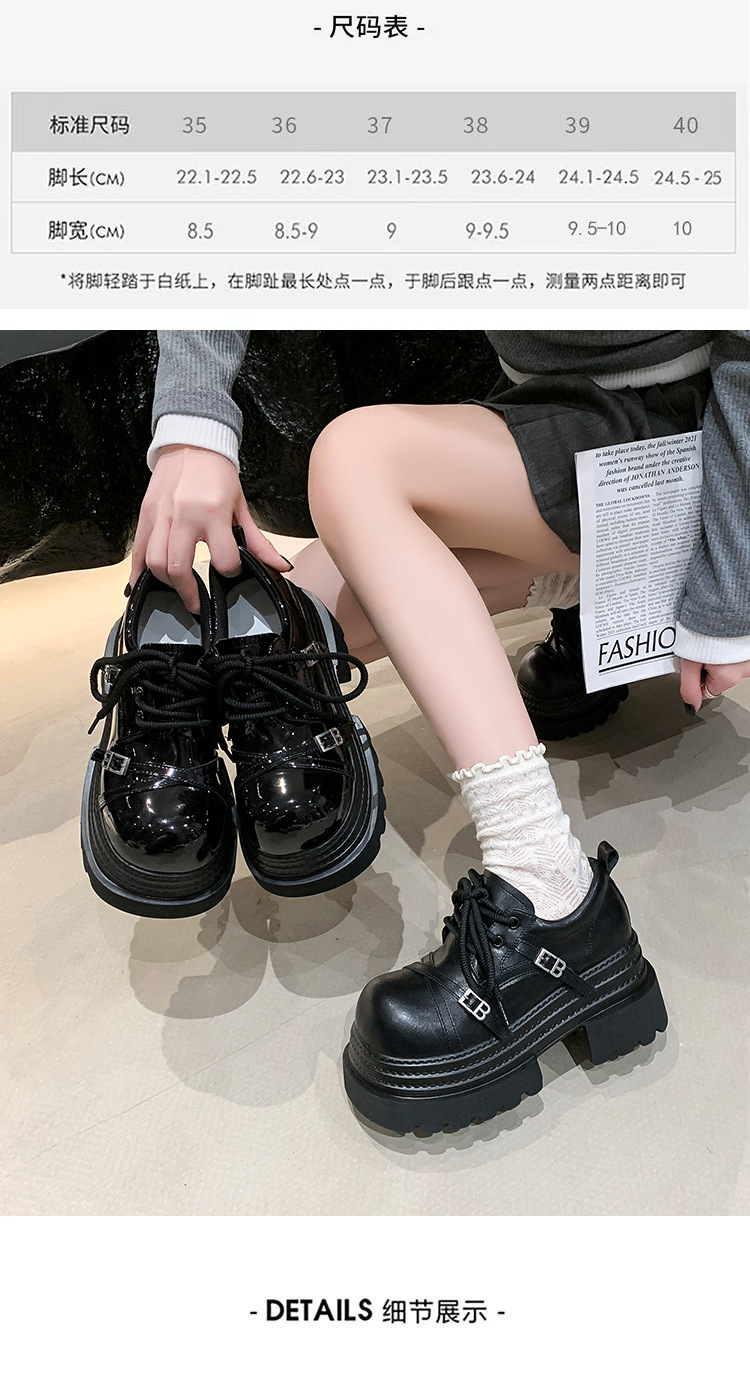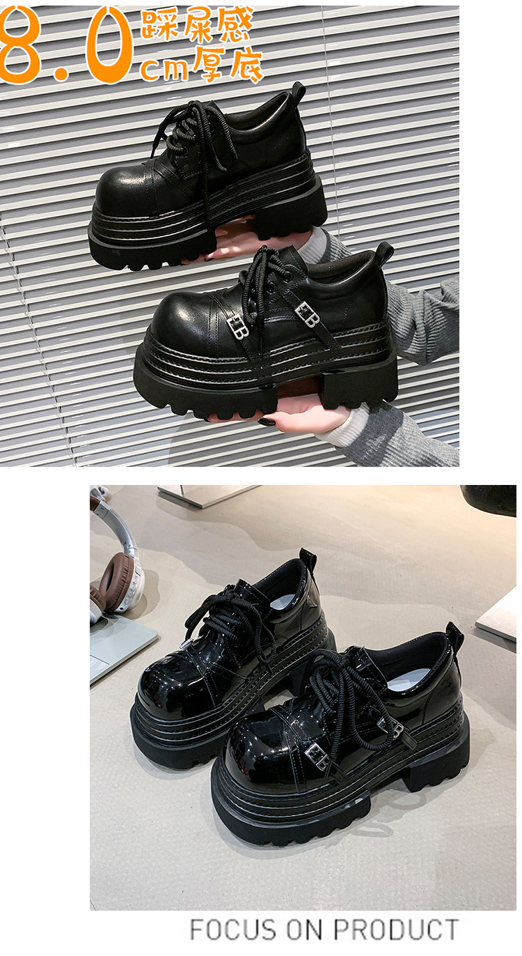 Zapatos de cuero de 8cm de espesor de suela pequeña para mujeres 2025 primavera nuevos zapatos de lazos Lefour muffin altura zapatos Mary Jane