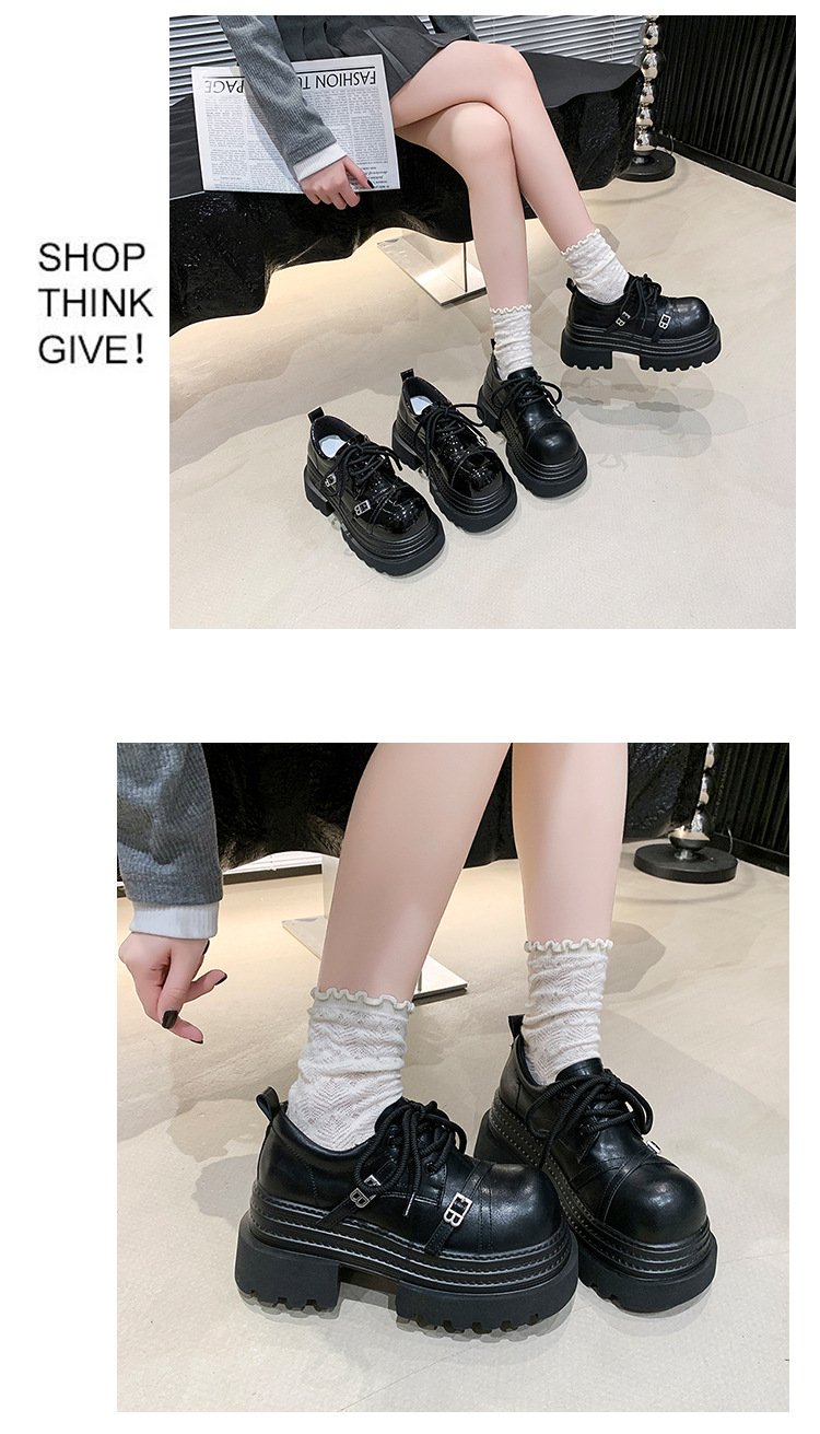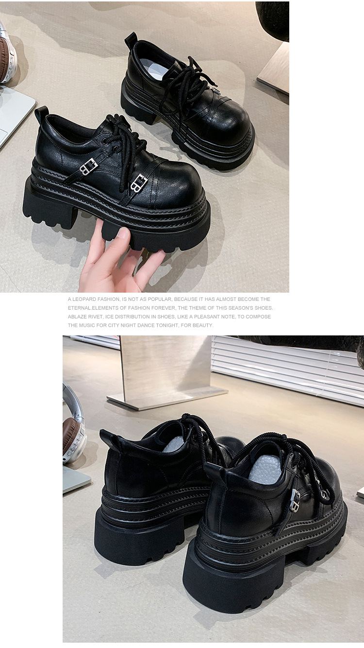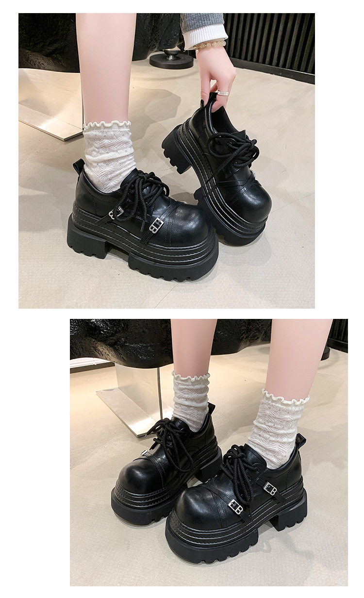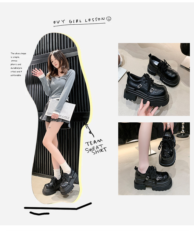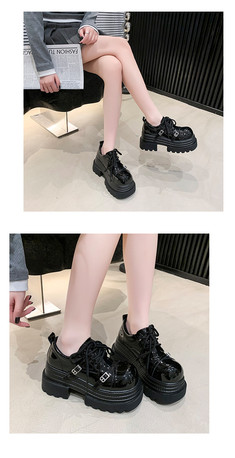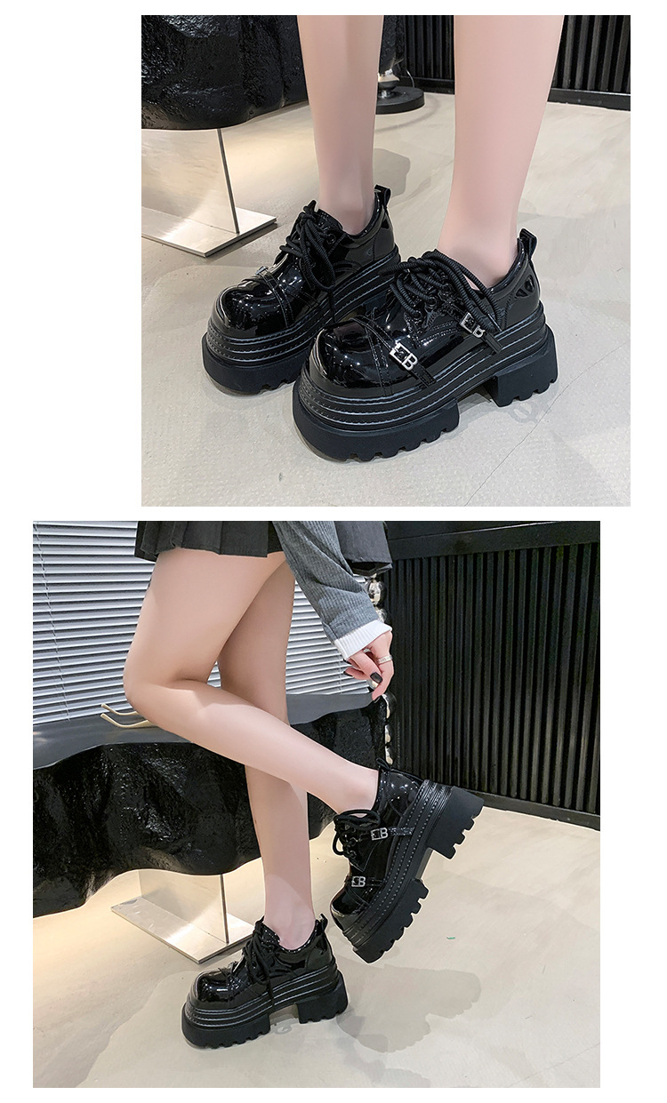 Zapatos de cuero de 8cm de espesor de suela pequeña para mujeres 2025 primavera nuevos zapatos de lazos Lefour muffin altura zapatos Mary Jane
