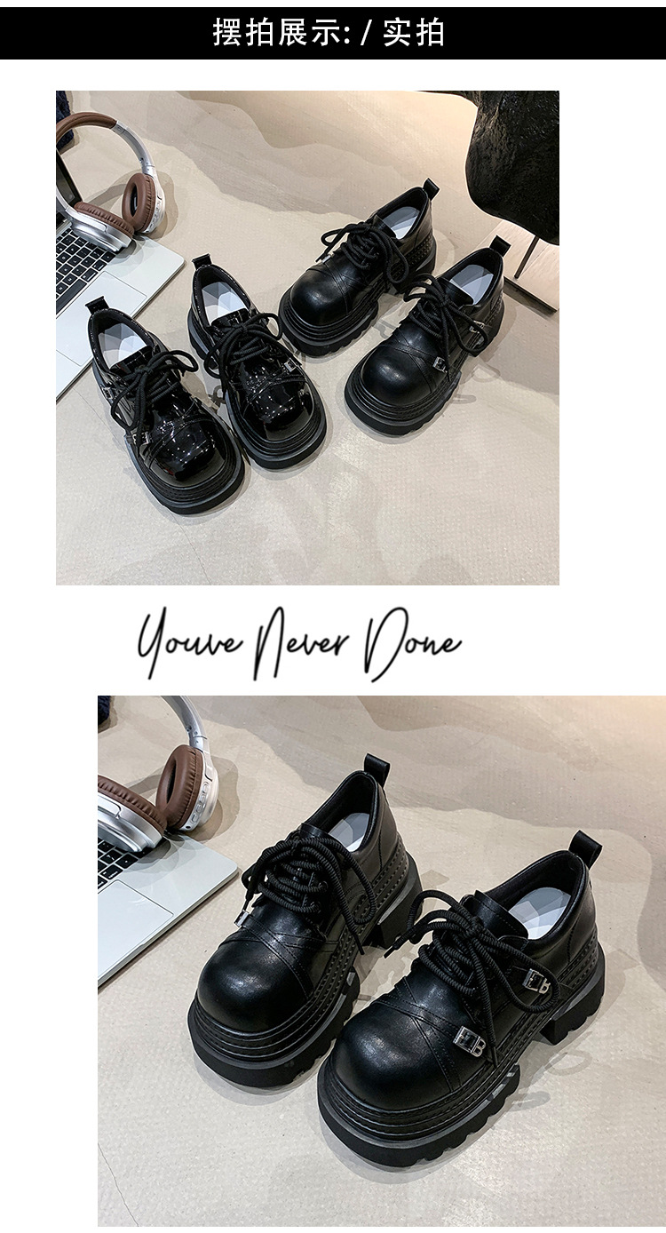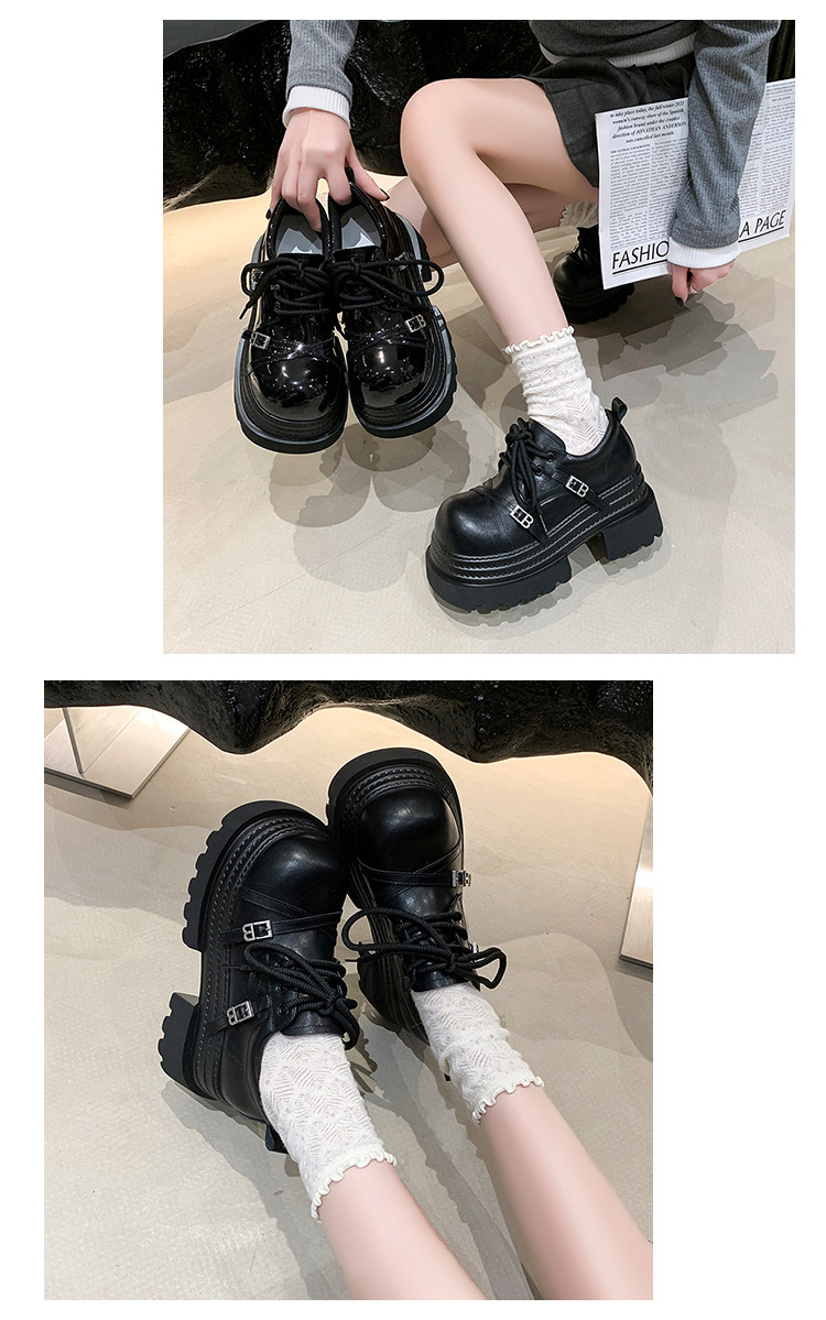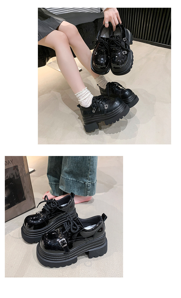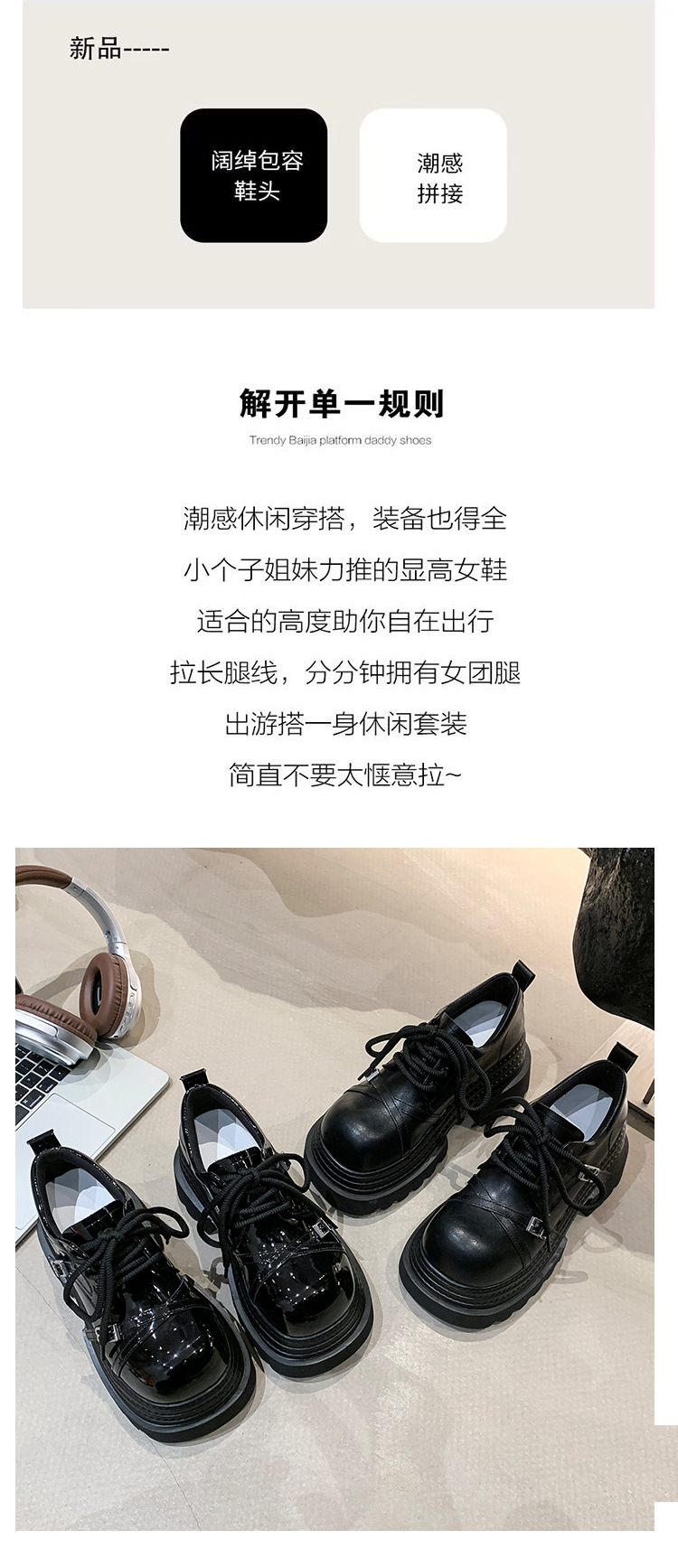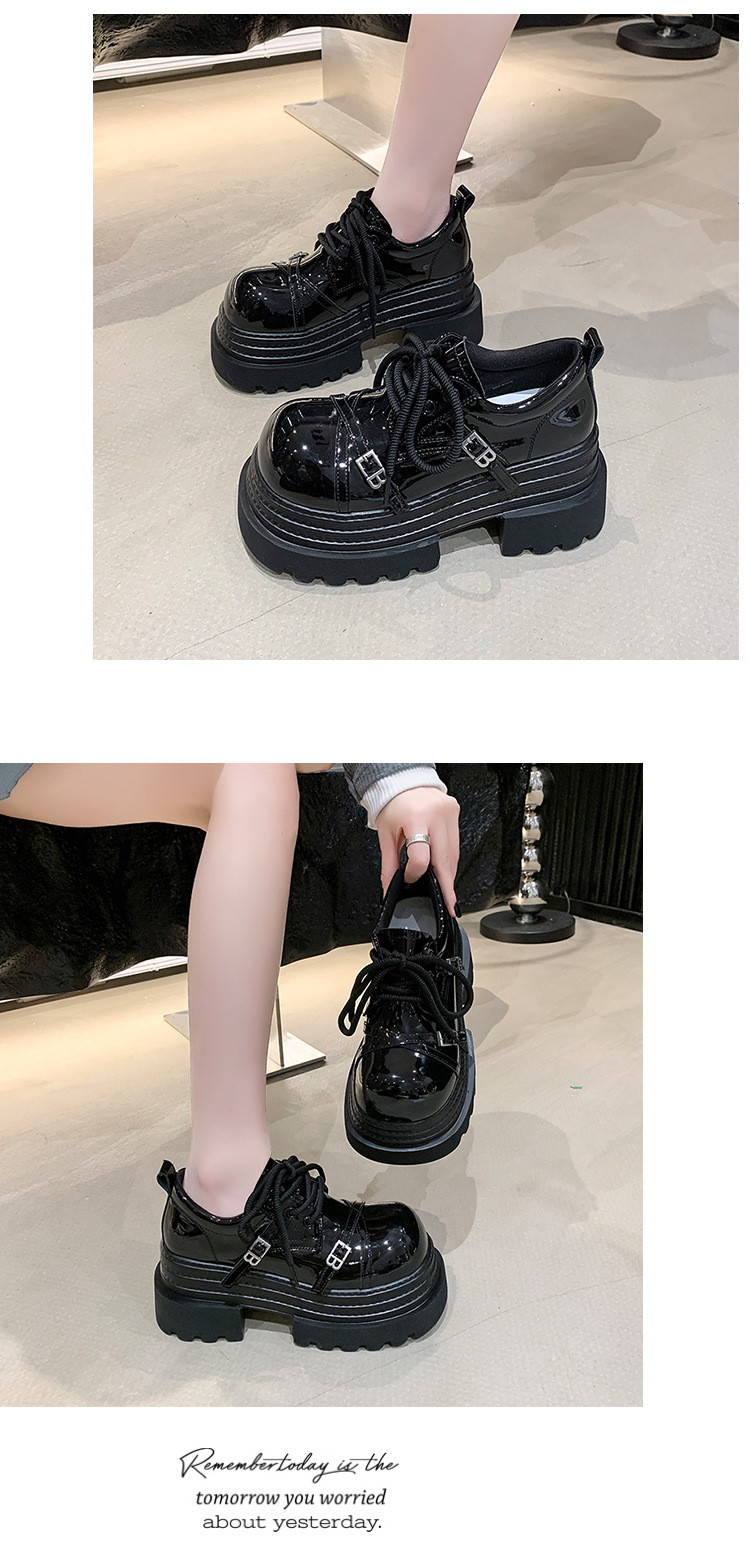 Zapatos de cuero de 8cm de espesor de suela pequeña para mujeres 2025 primavera nuevos zapatos de lazos Lefour muffin altura zapatos Mary Jane