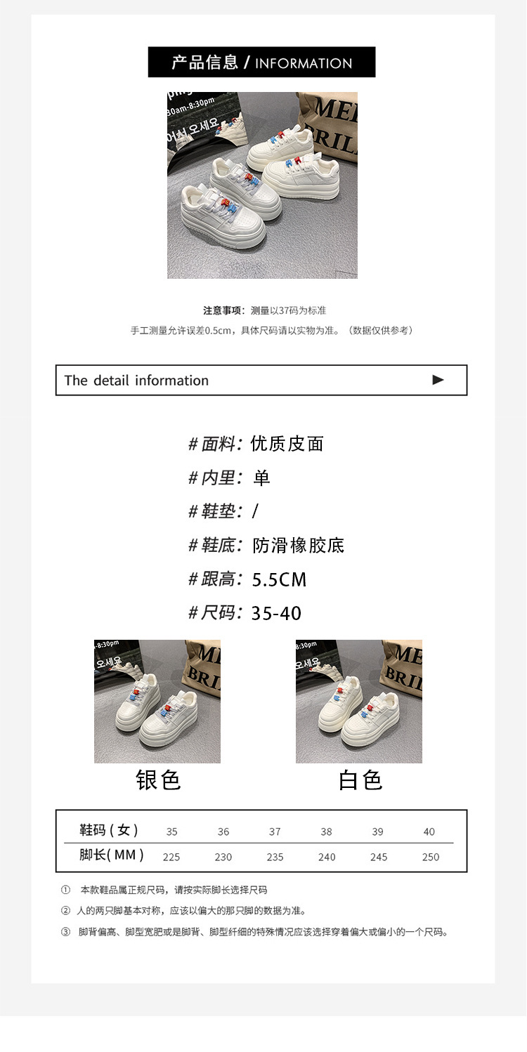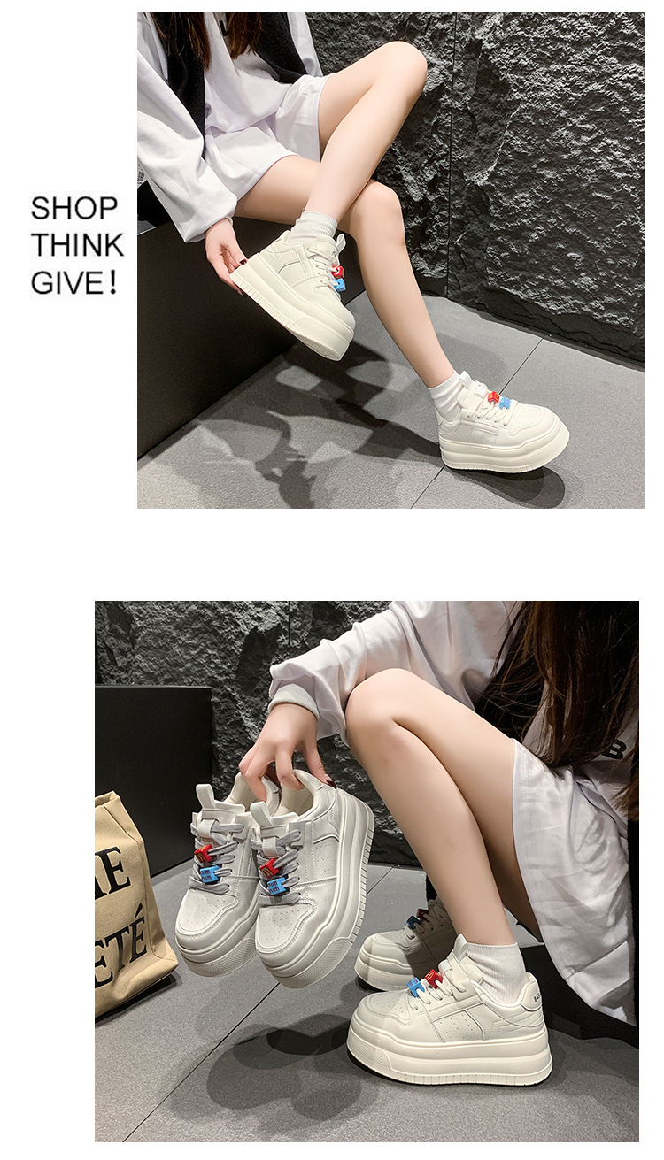 2025 primavera nueva altura de suela gruesa pequeña zapatos blancos muffin zapatos muffin 5cm zapatos de skate casuales versátiles