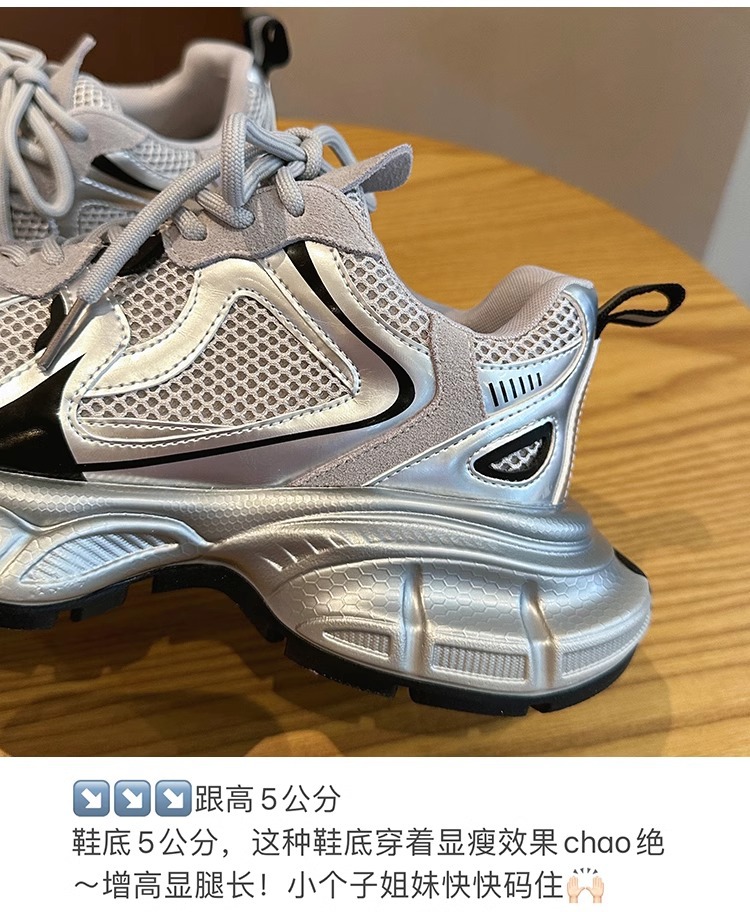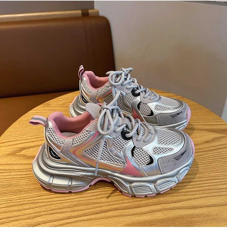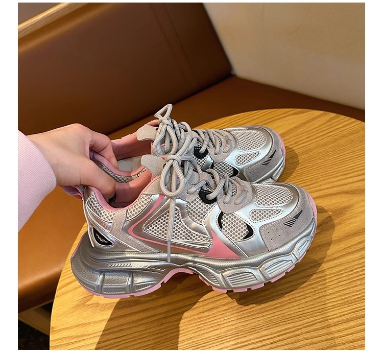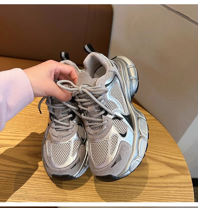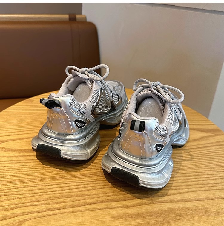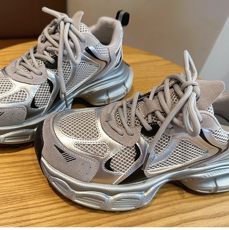 Zhao LuSi con zapatos de papá y mujer 2024 nueva primavera calles fritas con suela gruesa versátil plateada zapatillas deportivas casuales retro