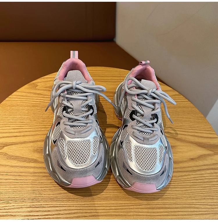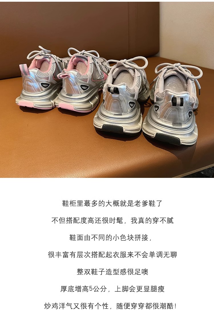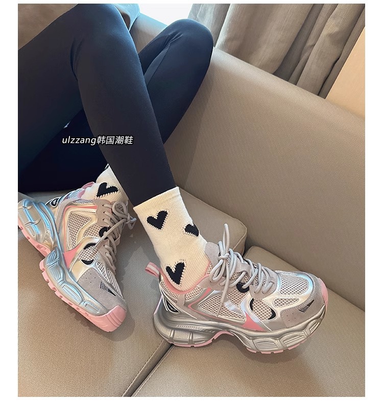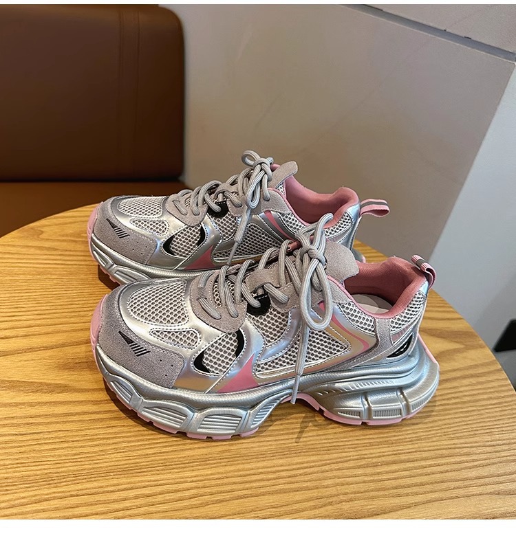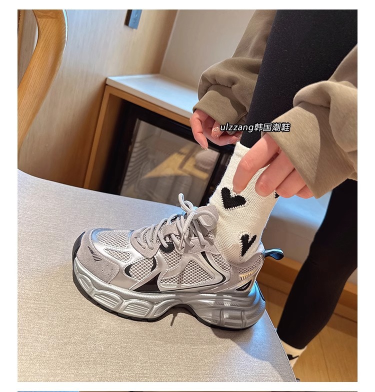 Zhao LuSi con zapatos de papá y mujer 2024 nueva primavera calles fritas con suela gruesa versátil plateada zapatillas deportivas casuales retro
