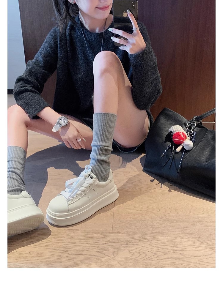 Grava madre otoño nuevo clásico cabeza redonda gruesa altura de lazos pequeños zapatos blancos estilo universitario zapatos de skate para mujeres