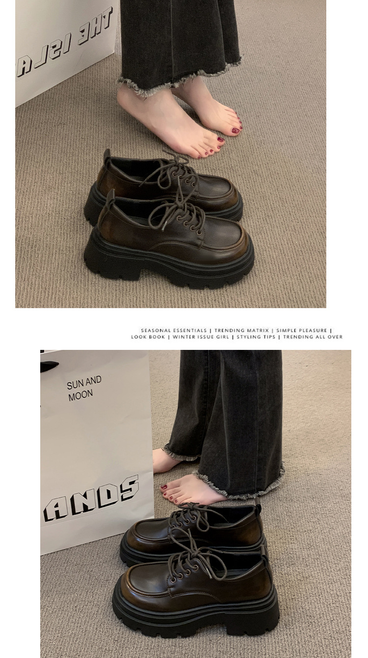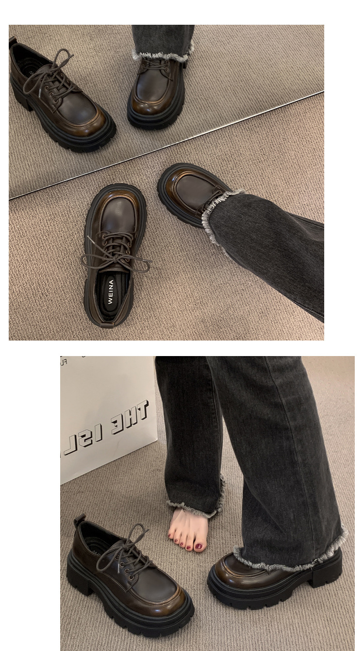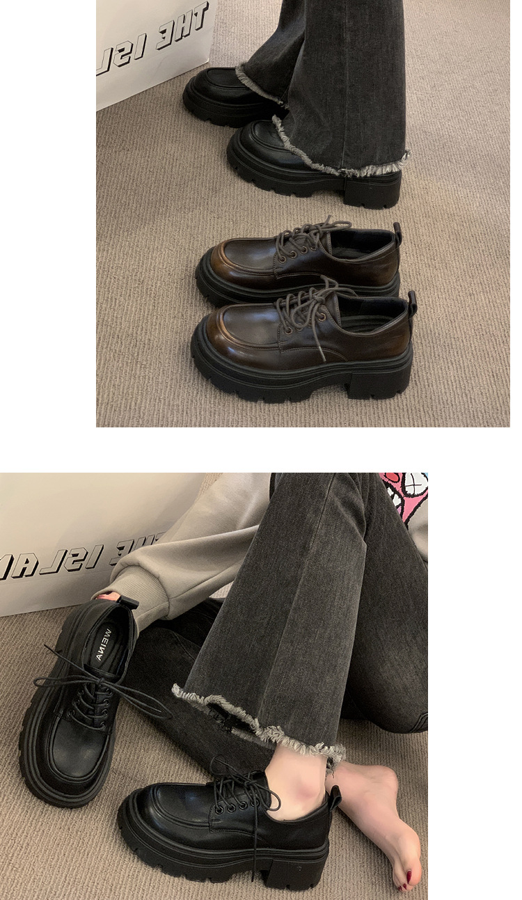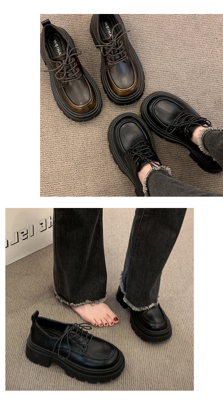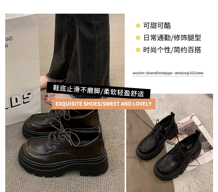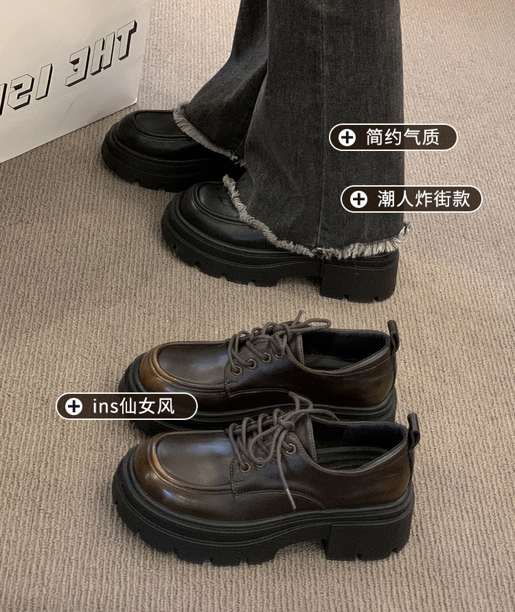 Zapatos de cuero negro para las mujeres 2024 primavera nuevo todo-fósforo de suela gruesa estilo británico mocasines populares estilo preppy JK zapatos de una sola capa