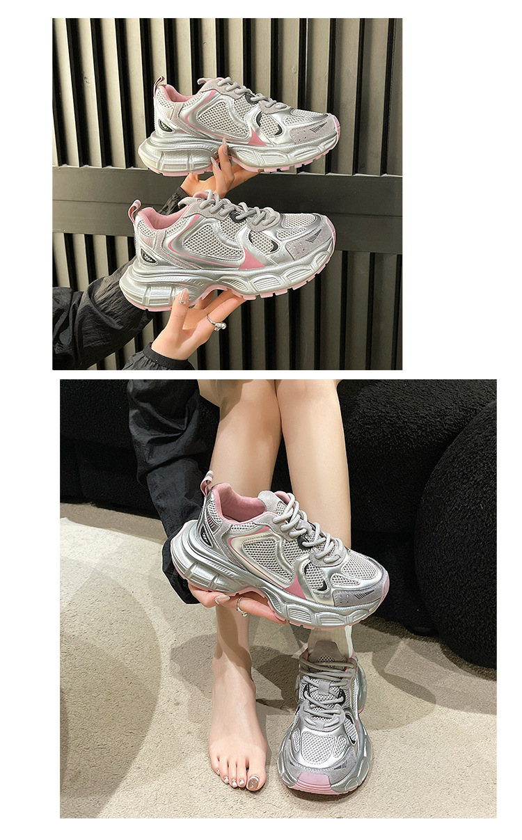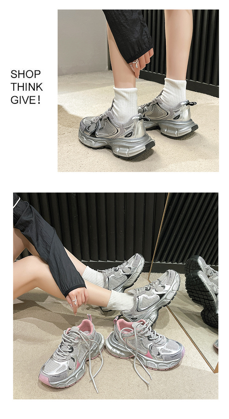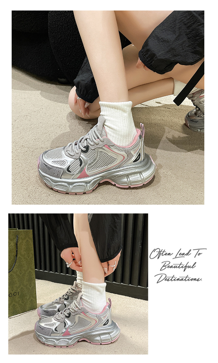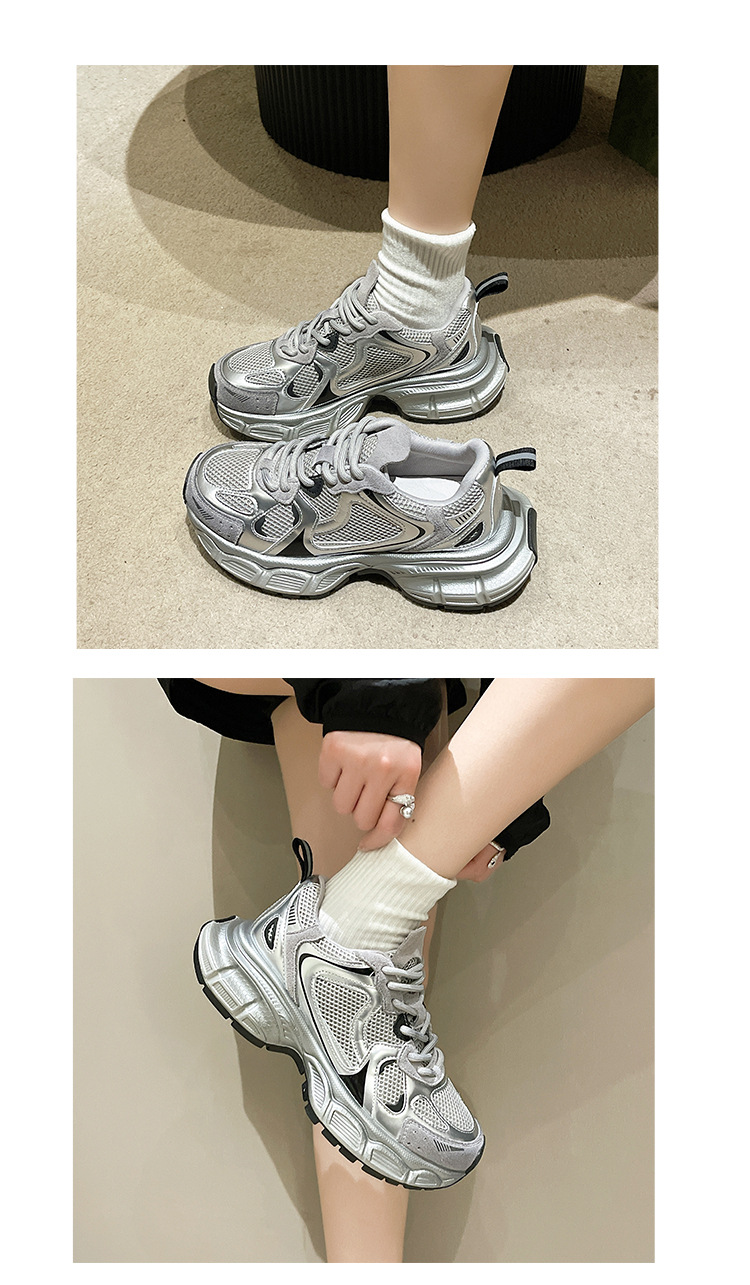 Torpe zapatillas para las mujeres 2024 Primavera Nueva plataforma de cuero genuino malla punta redonda zapatos casuales plata moda marca zapatilla
