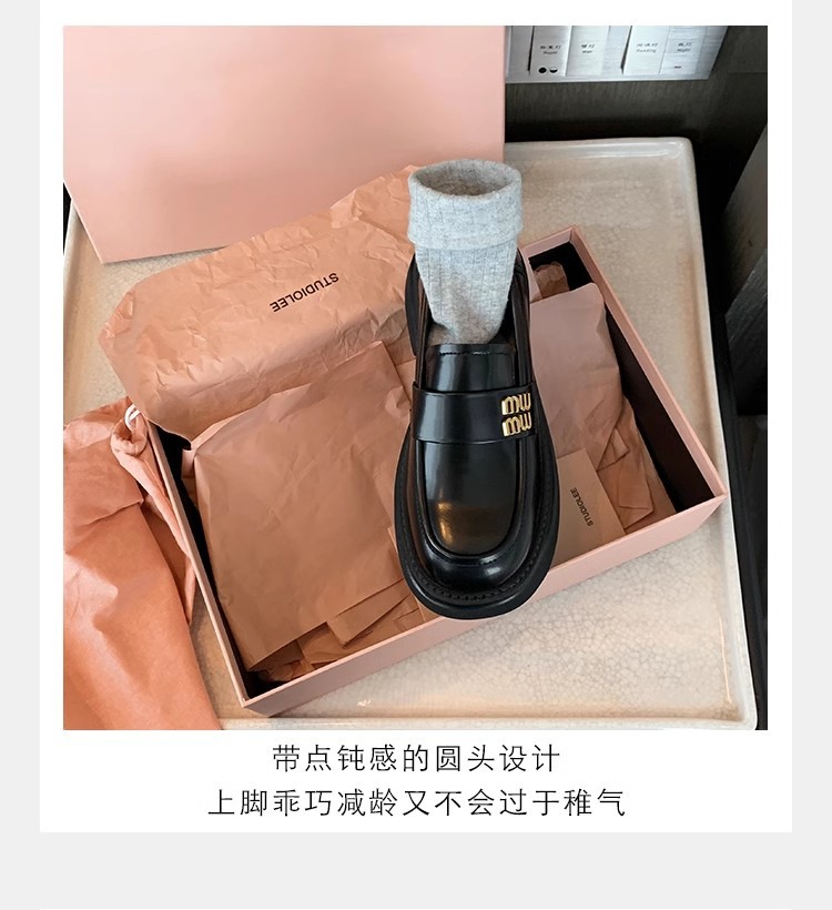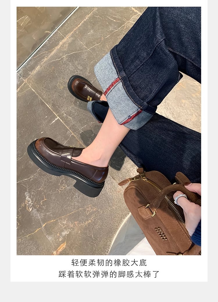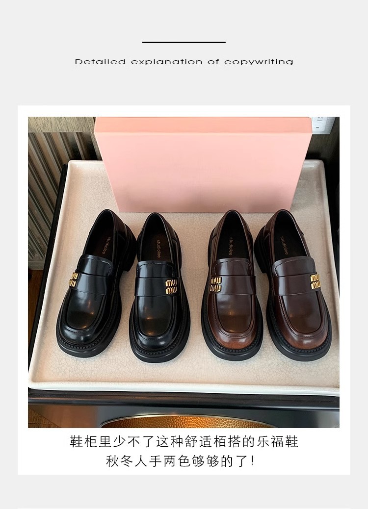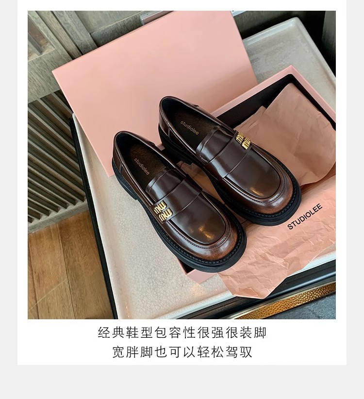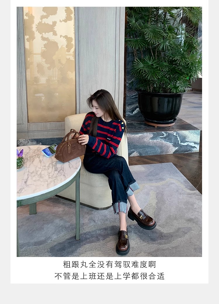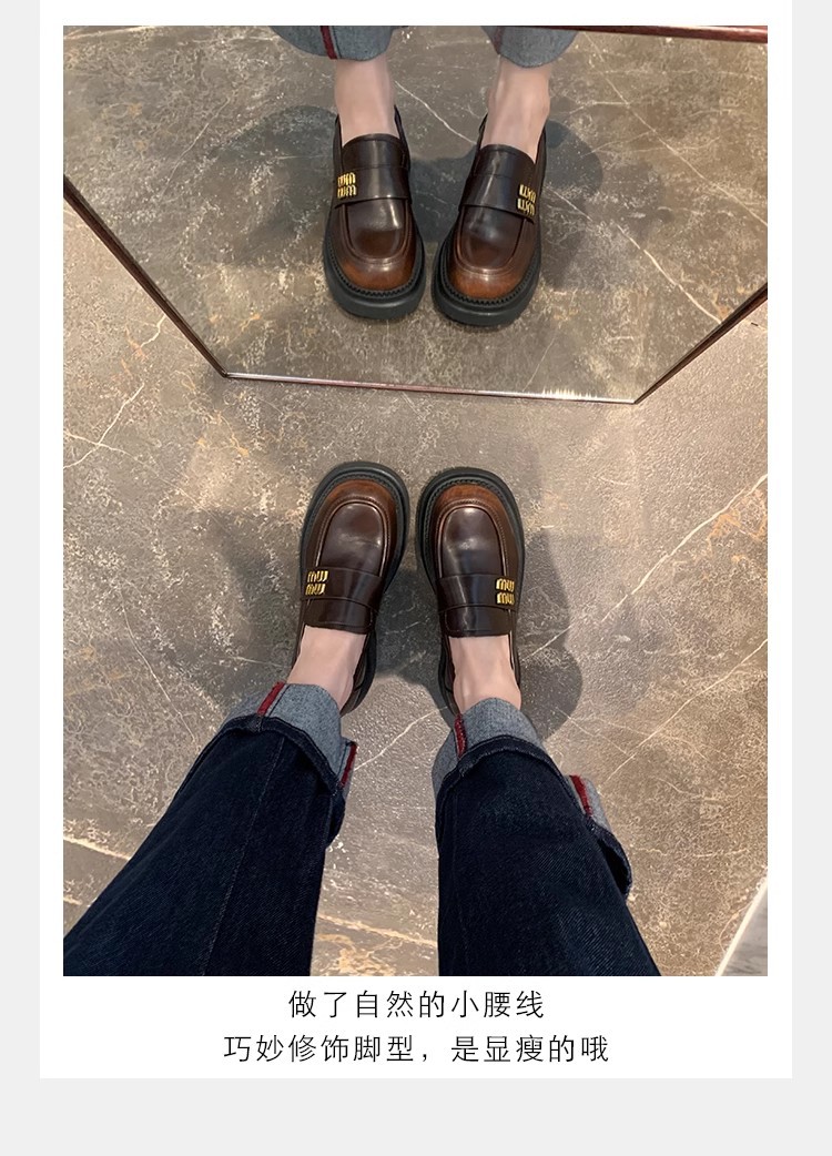 Nuevo estilo universitario de otoño y invierno de la uva madre Miao perezoso con un solo zapato de botón de metal Lefour zapatos de cuero para mujeres
