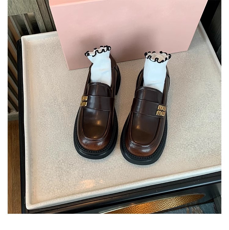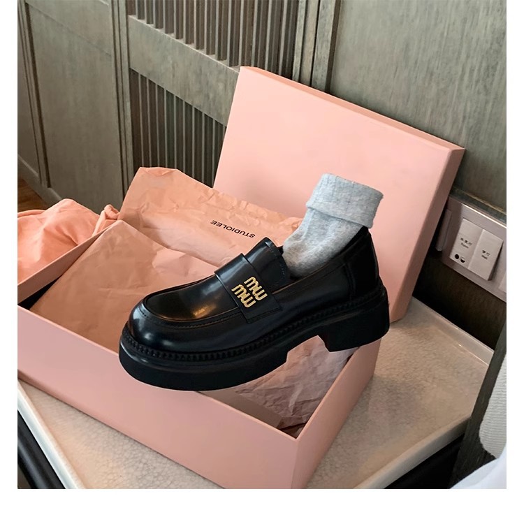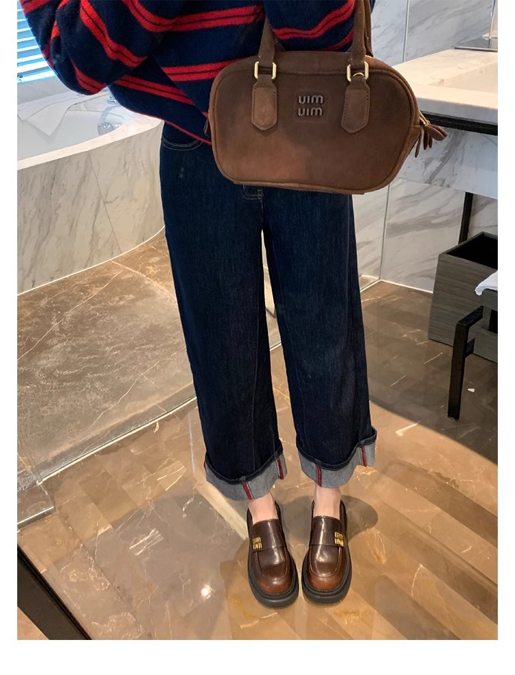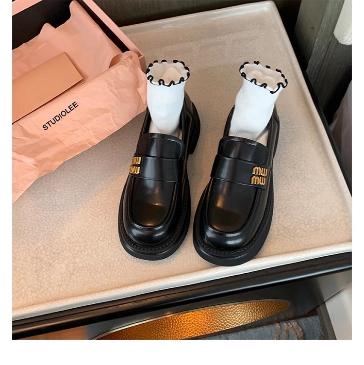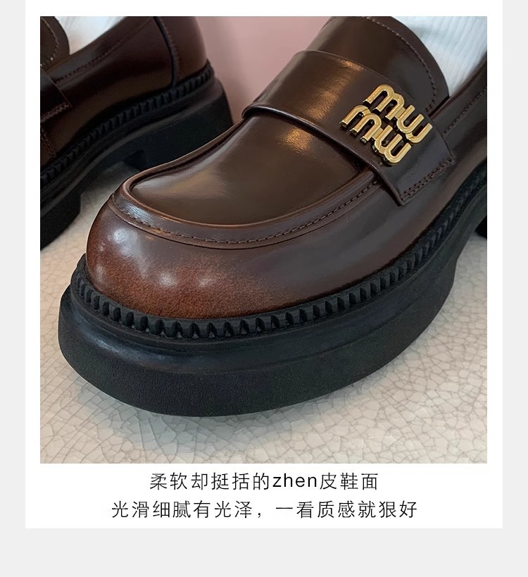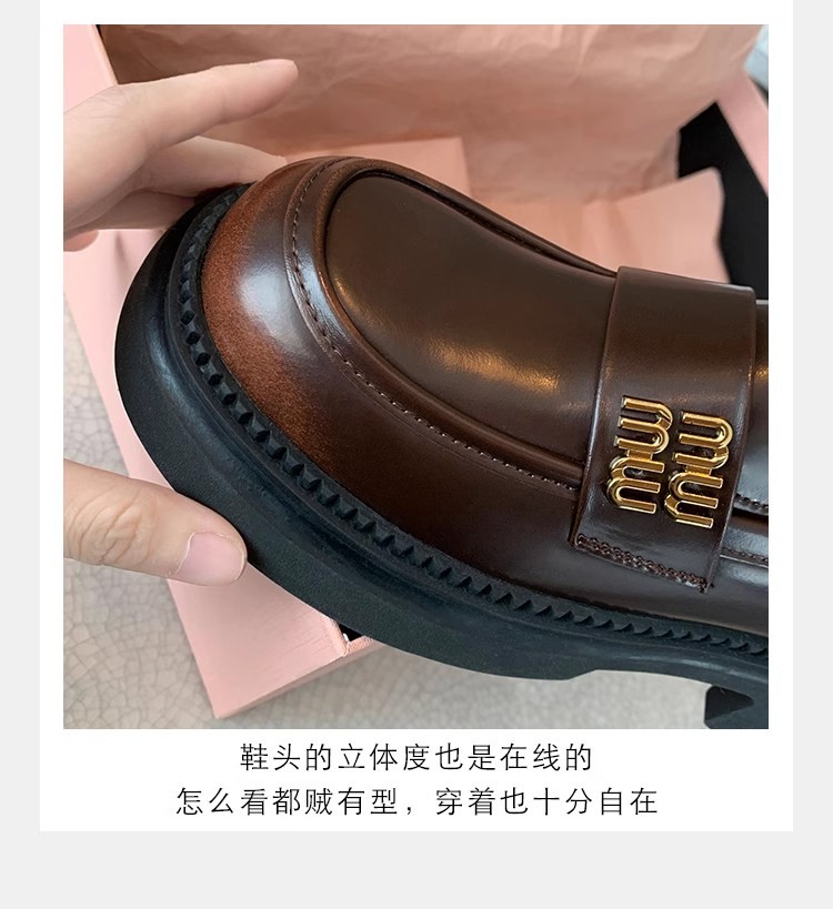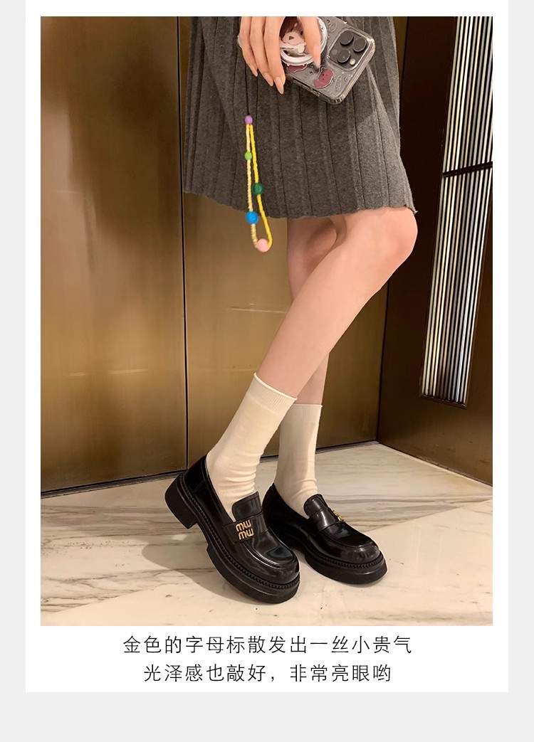 Nuevo estilo universitario de otoño y invierno de la uva madre Miao perezoso con un solo zapato de botón de metal Lefour zapatos de cuero para mujeres
