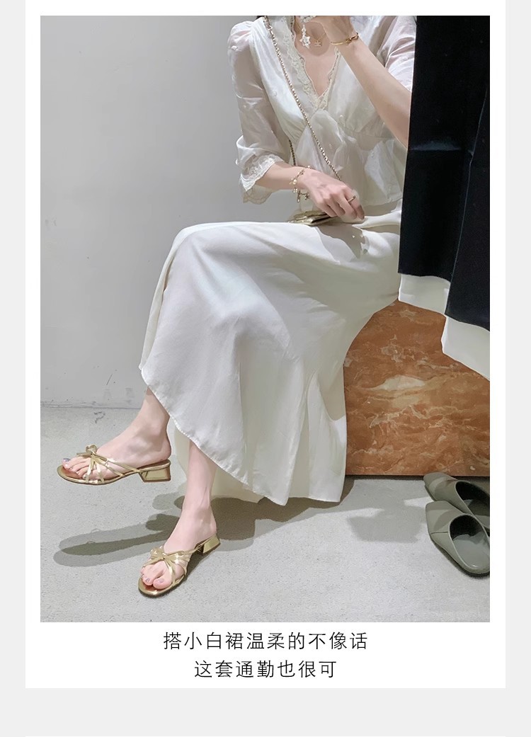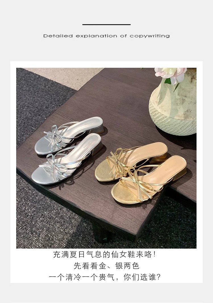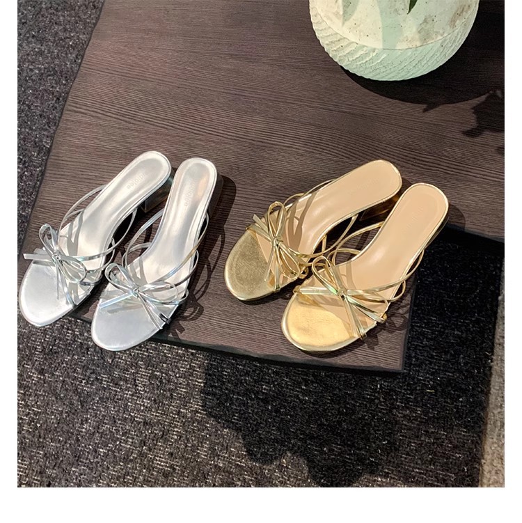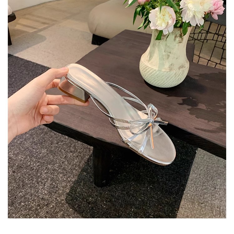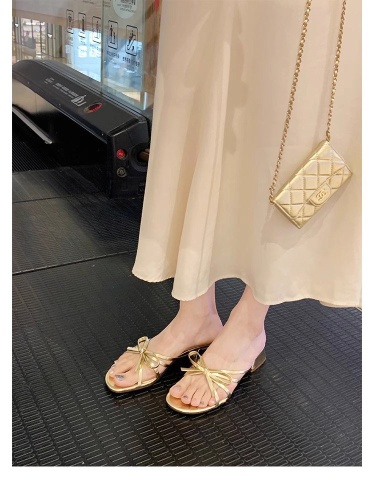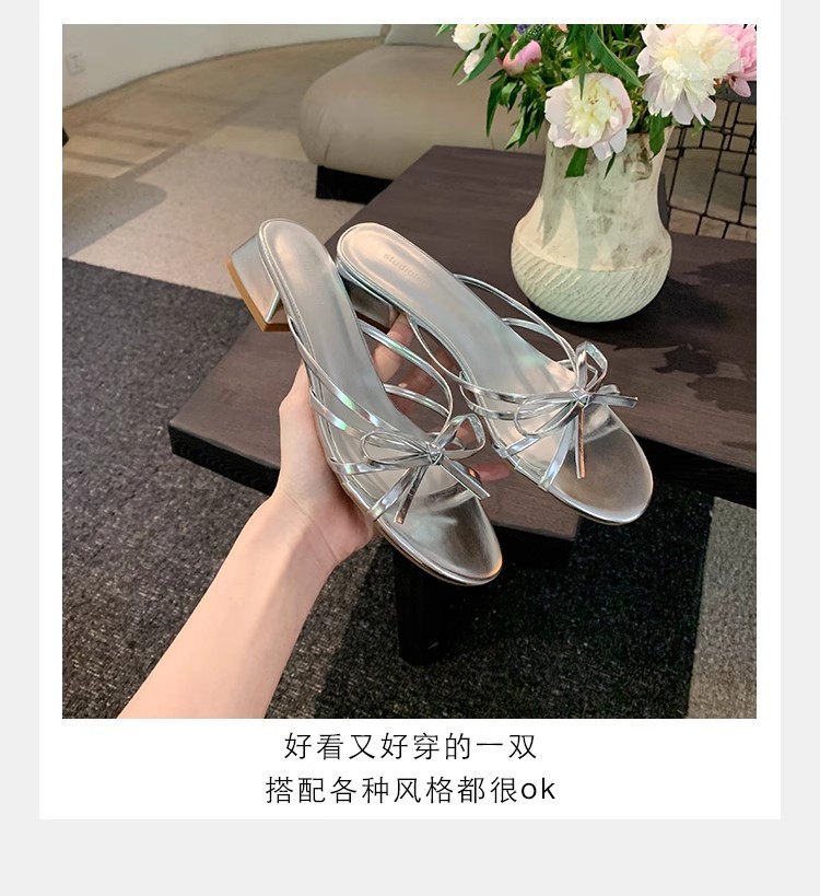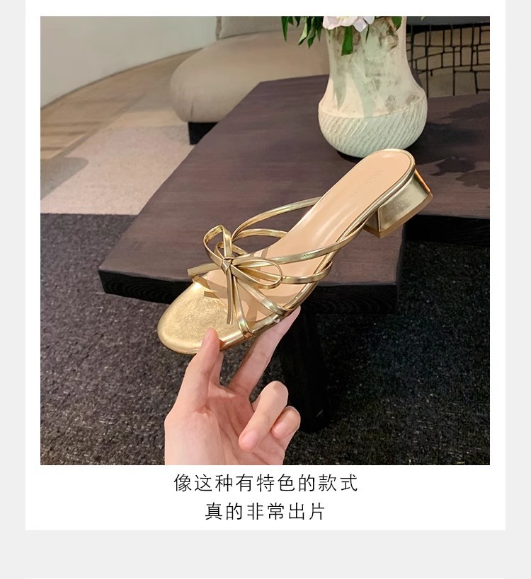 Madre de uva ~ arco dulce francés variedad de tacones gruesos de dedos descubiertos zapatillas romanas de verano para mujeres