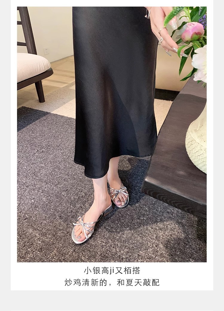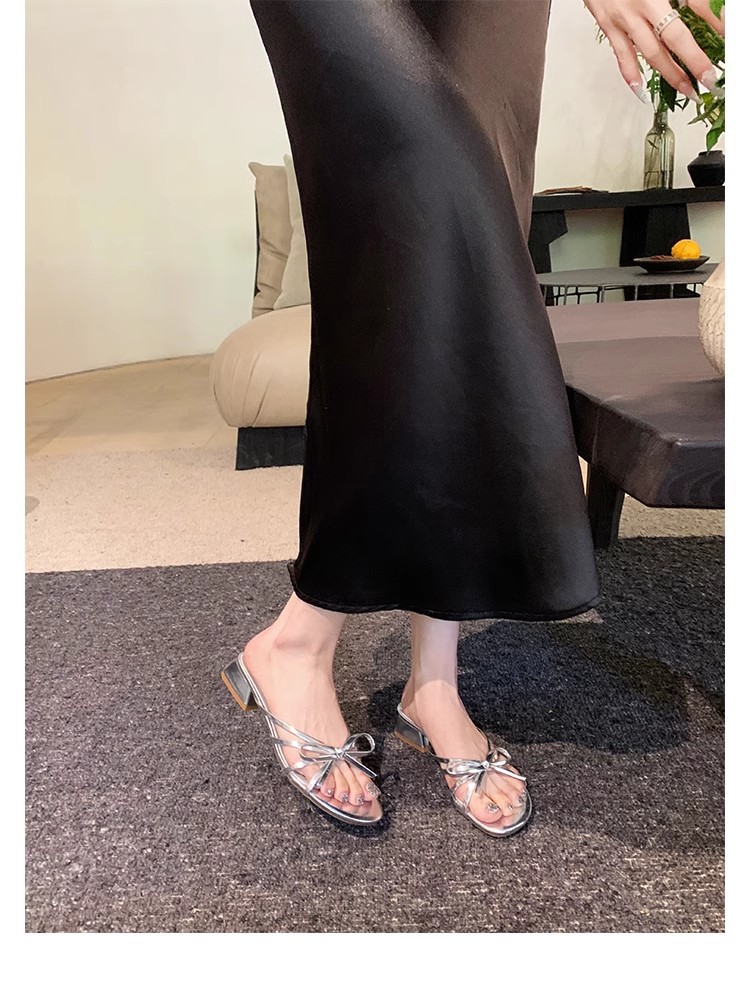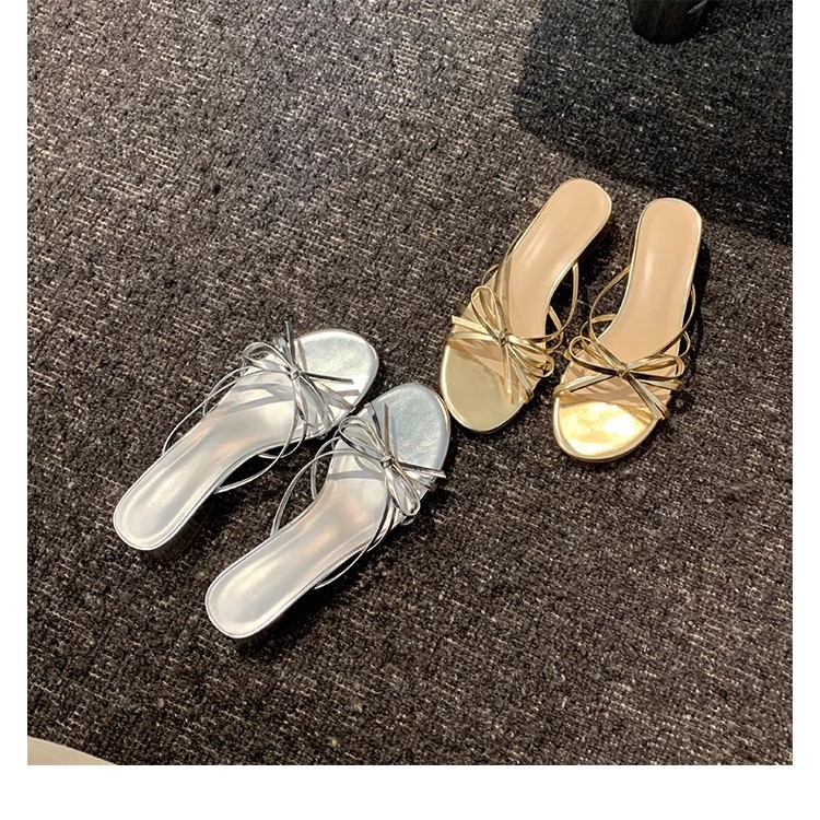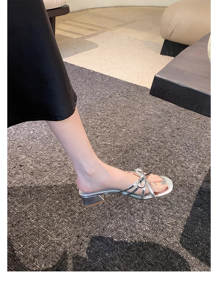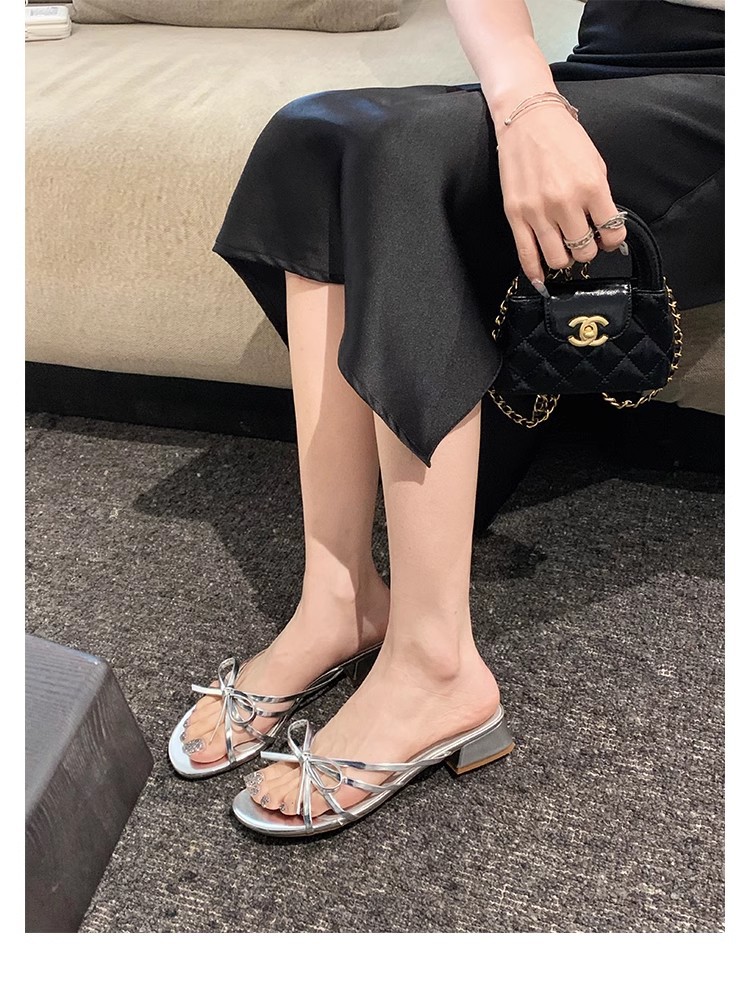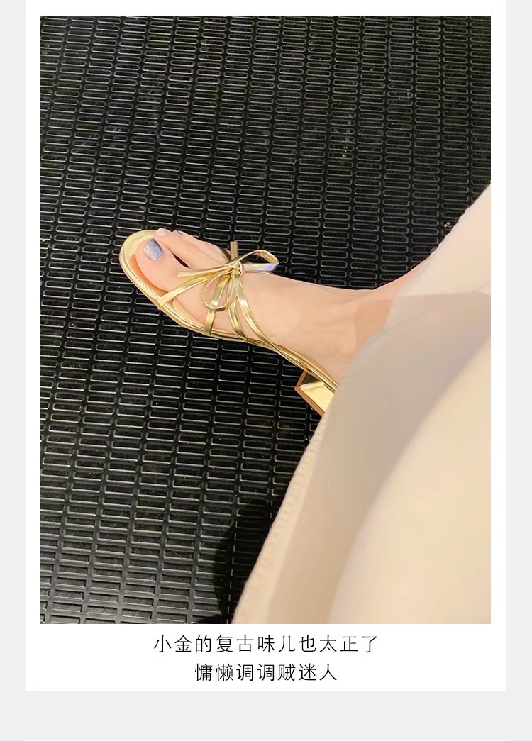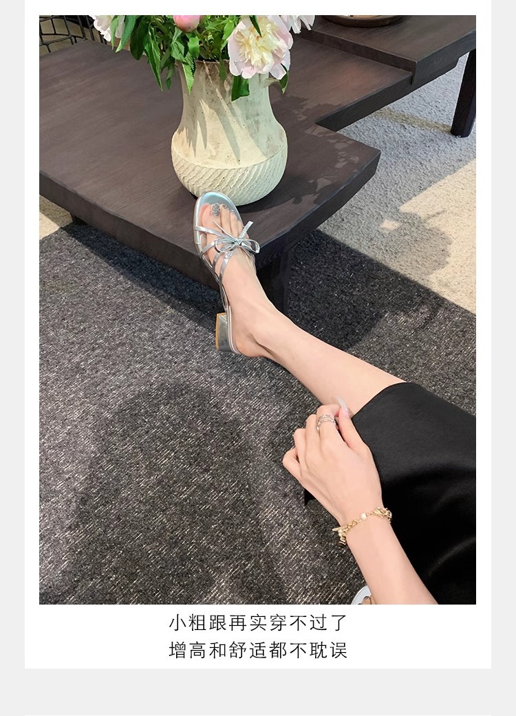 Madre de uva ~ arco dulce francés variedad de tacones gruesos de dedos descubiertos zapatillas romanas de verano para mujeres