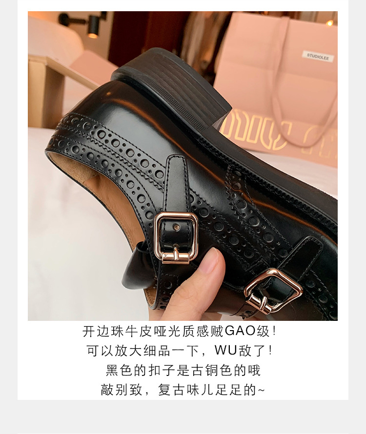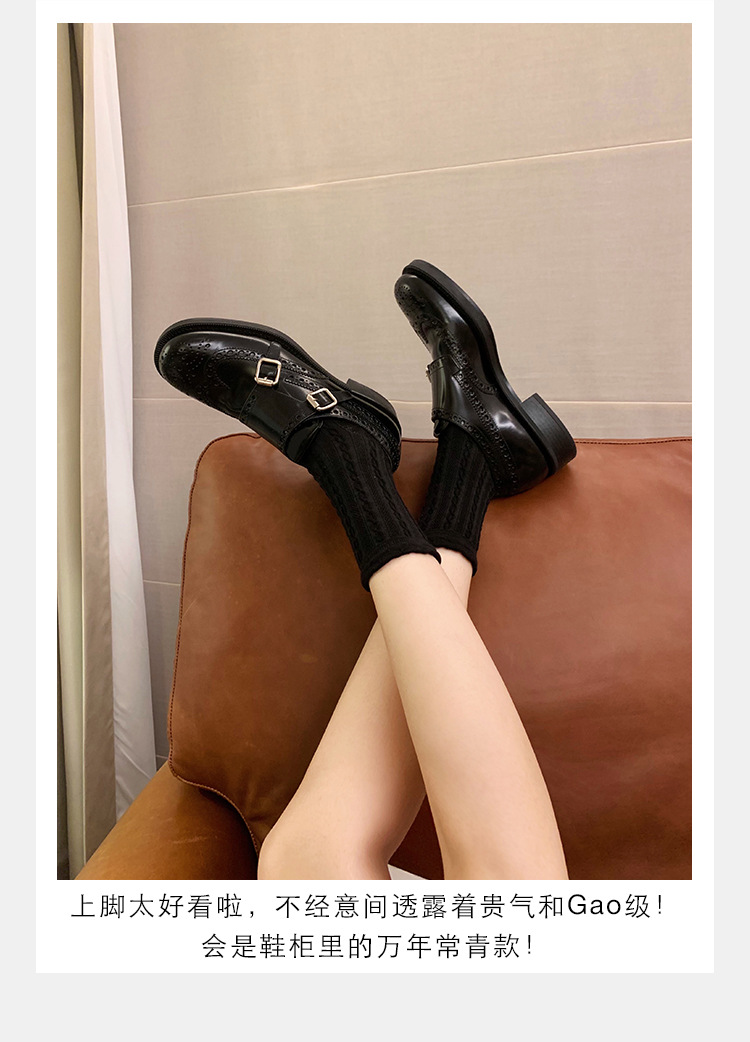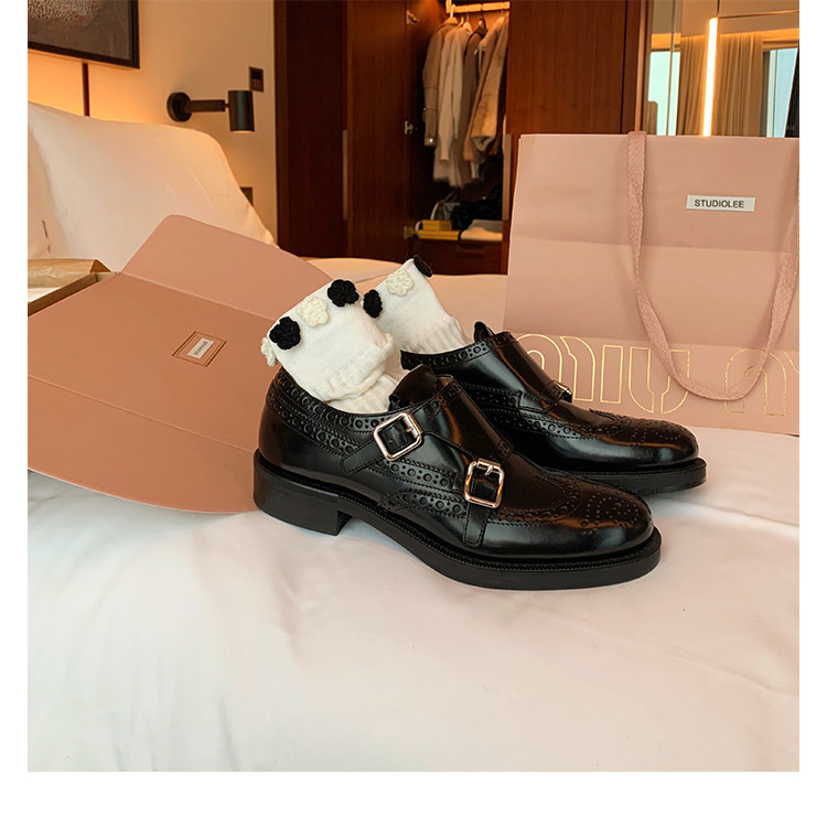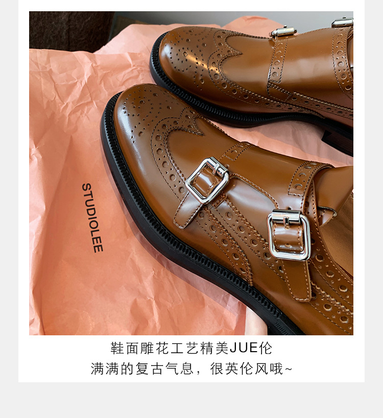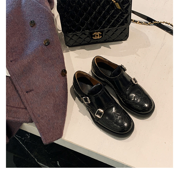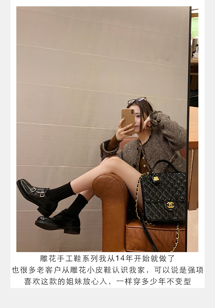Grape Mom otoño e invierno nuevos zapatos de cuero retro de estilo británico exquisitos zapatos barrocos tallados zapatos de cuero Meng Ke mujeres