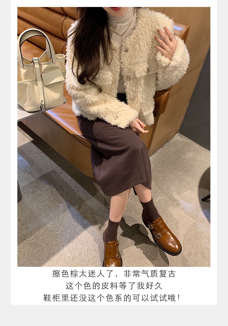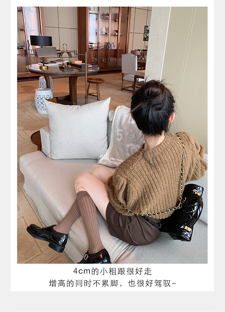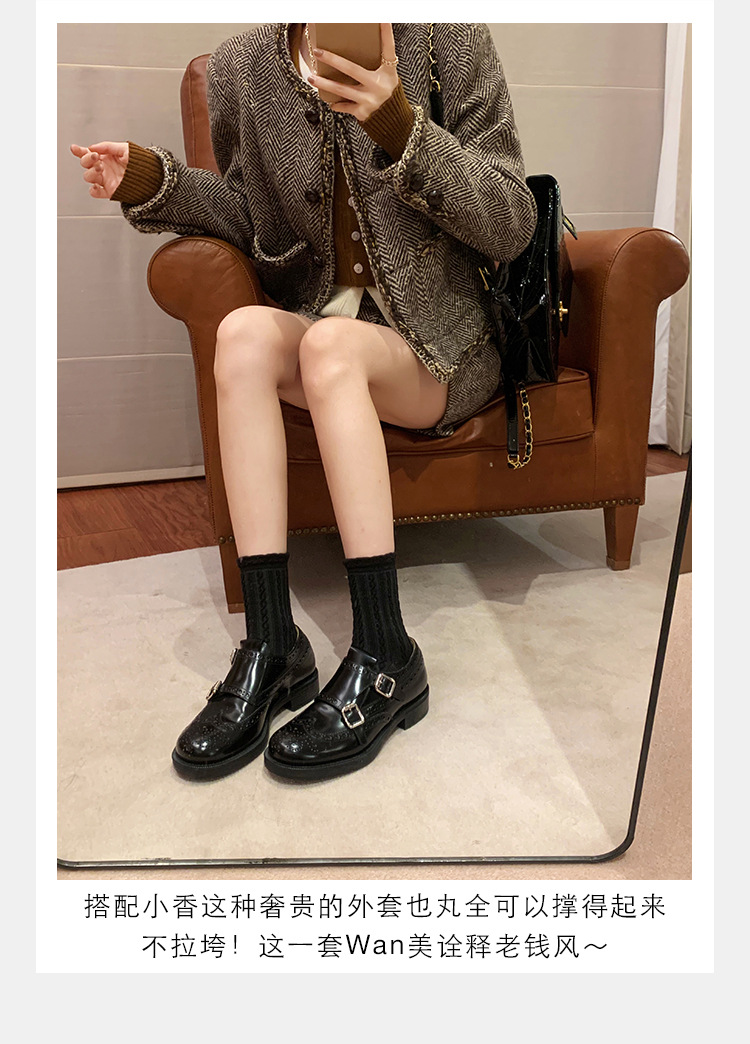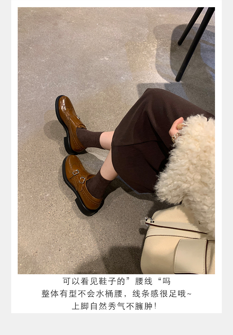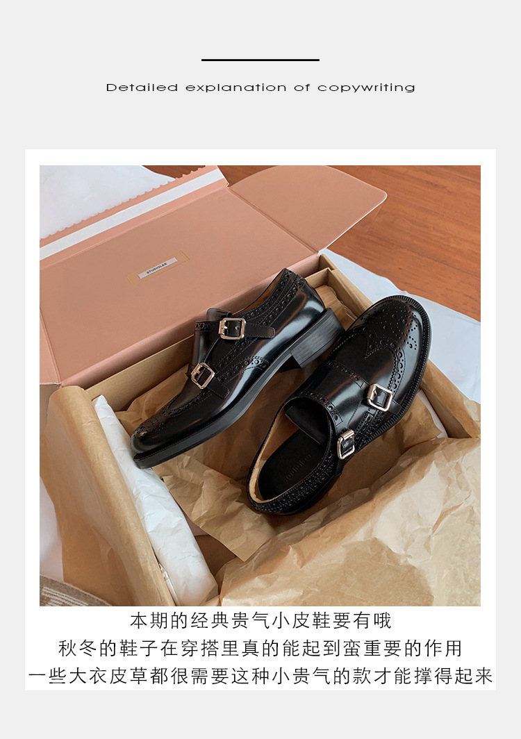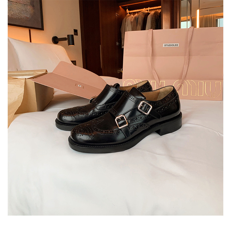 Grape Mom otoño e invierno nuevos zapatos de cuero retro de estilo británico exquisitos zapatos barrocos tallados zapatos de cuero Meng Ke mujeres