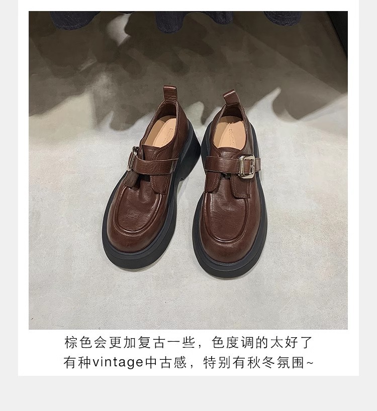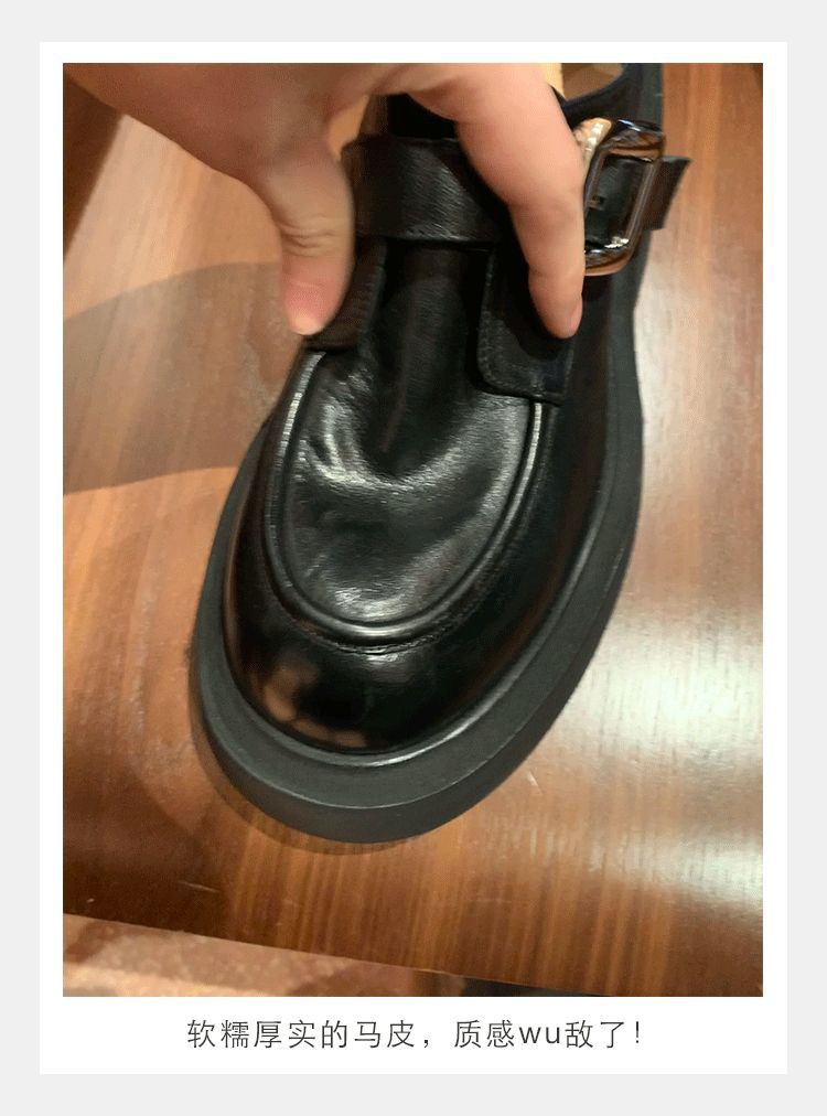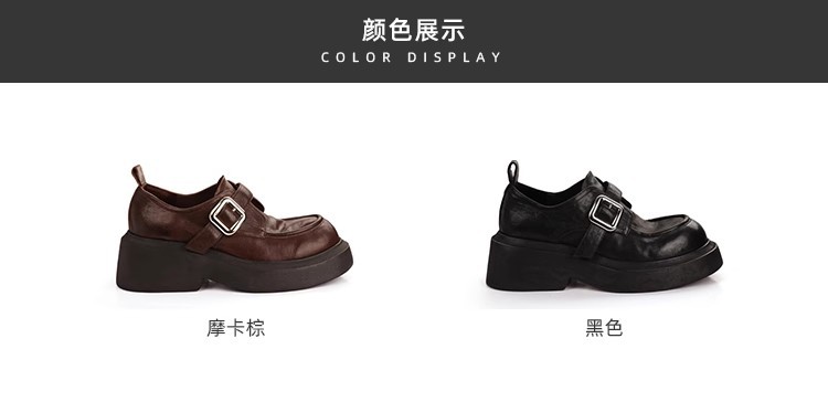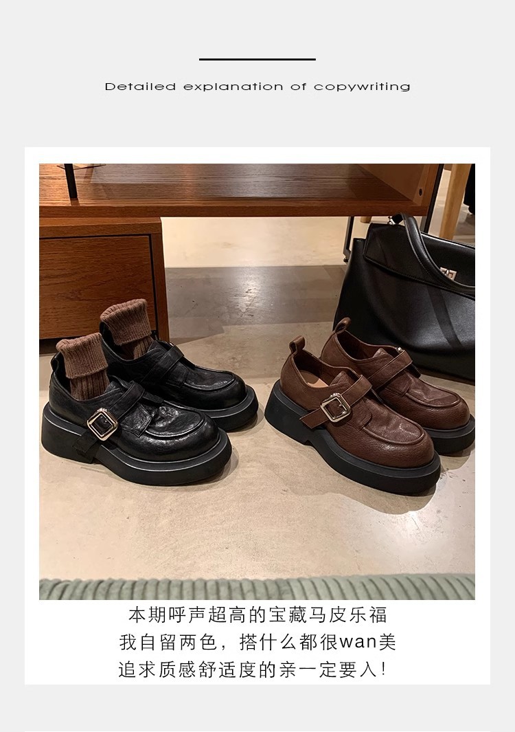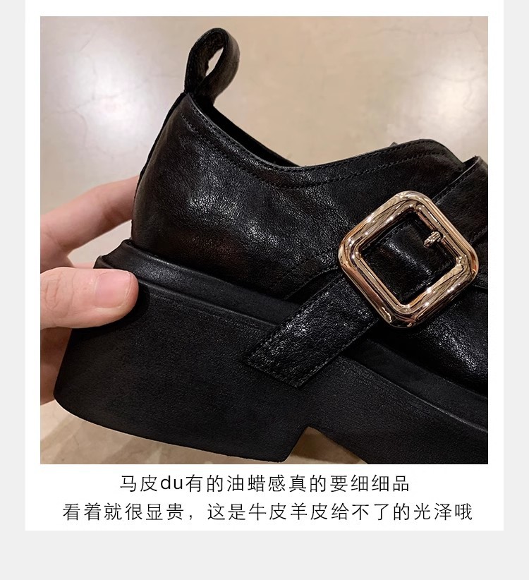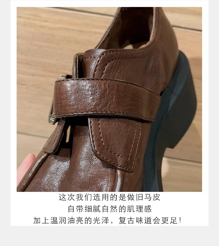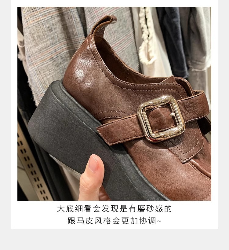 Grava Madre otoño y invierno nuevo estilo lavado de cuero de caballo cabeza redonda estilo británico un pedaleón de tacón grueso Lefour zapatos de cuero pequeñas zapatos de mujer