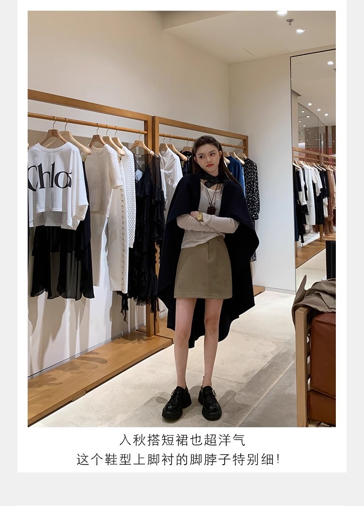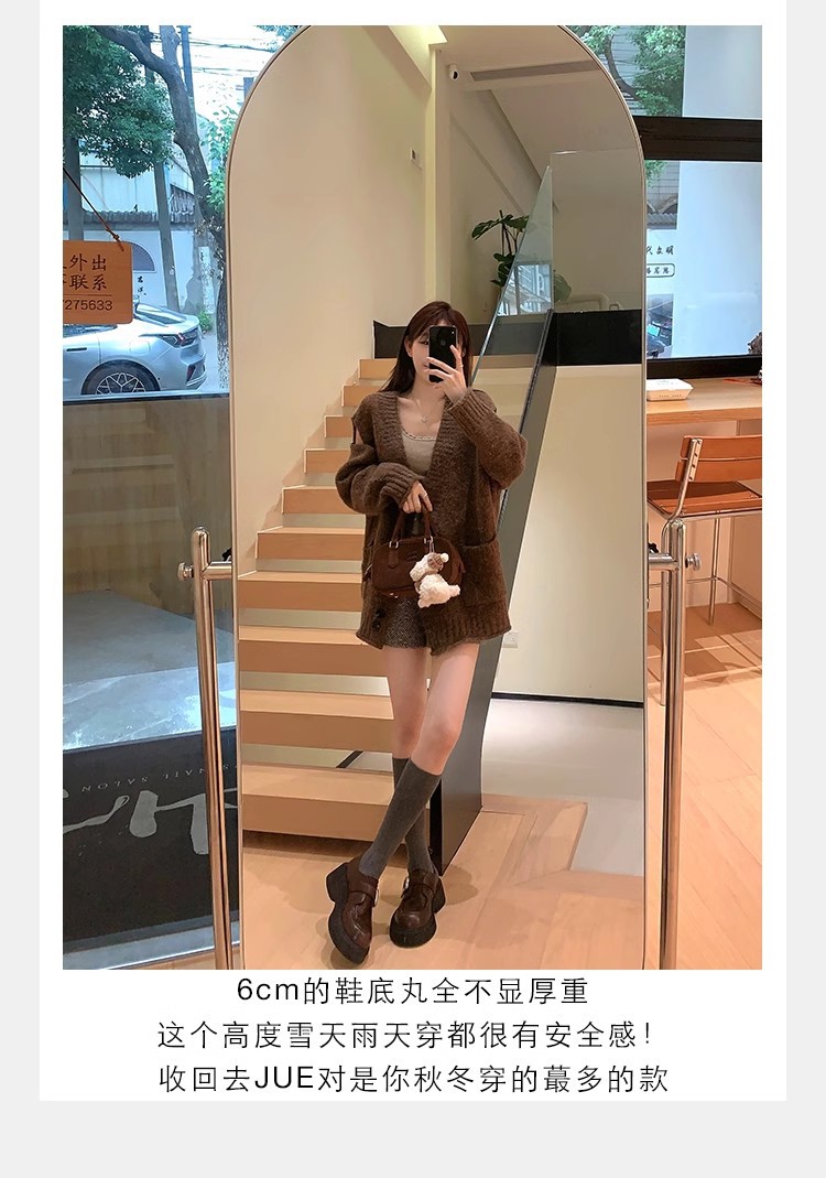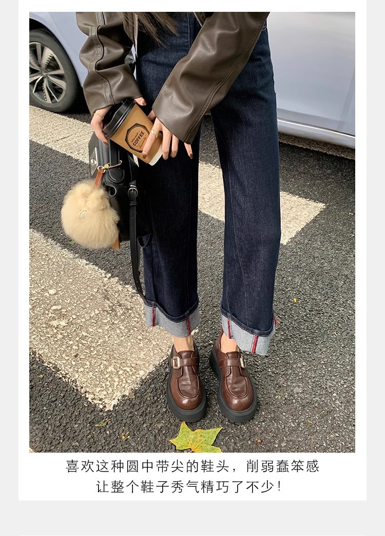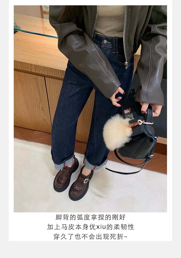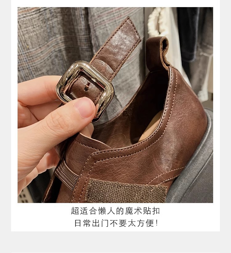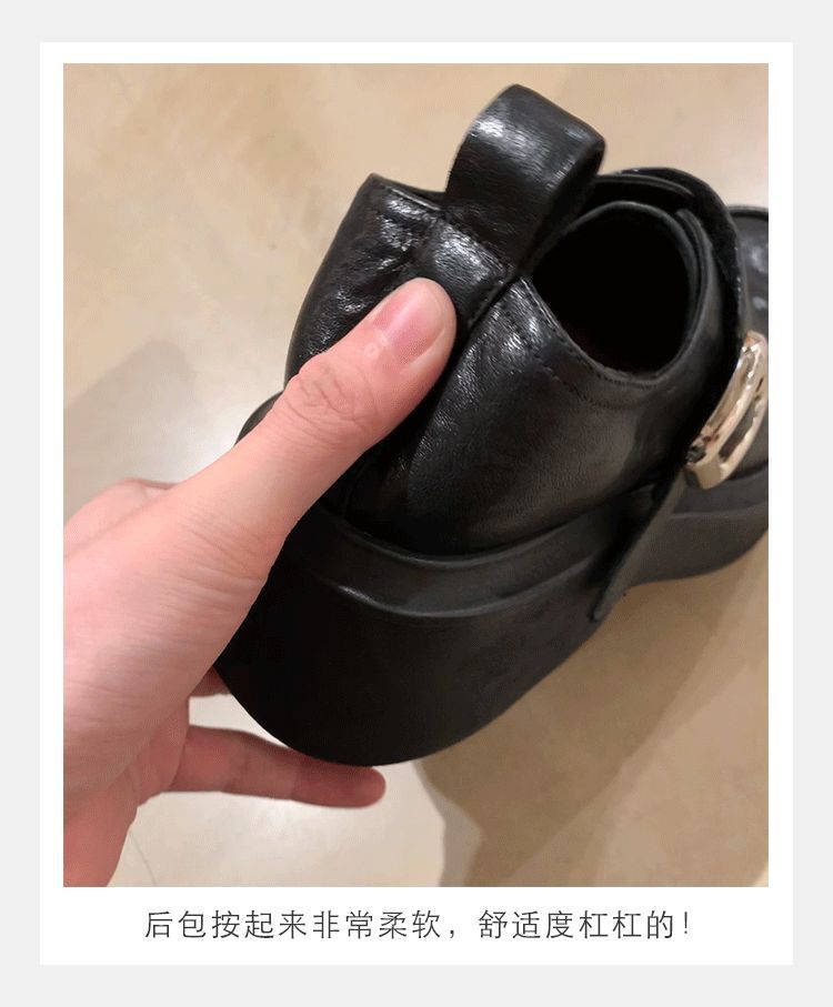 Grava Madre otoño y invierno nuevo estilo lavado de cuero de caballo cabeza redonda estilo británico un pedaleón de tacón grueso Lefour zapatos de cuero pequeñas zapatos de mujer