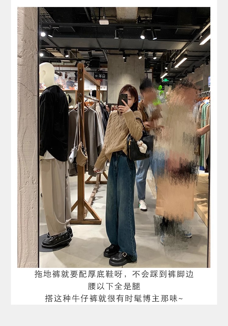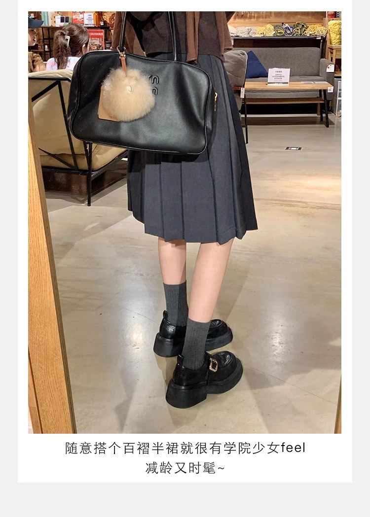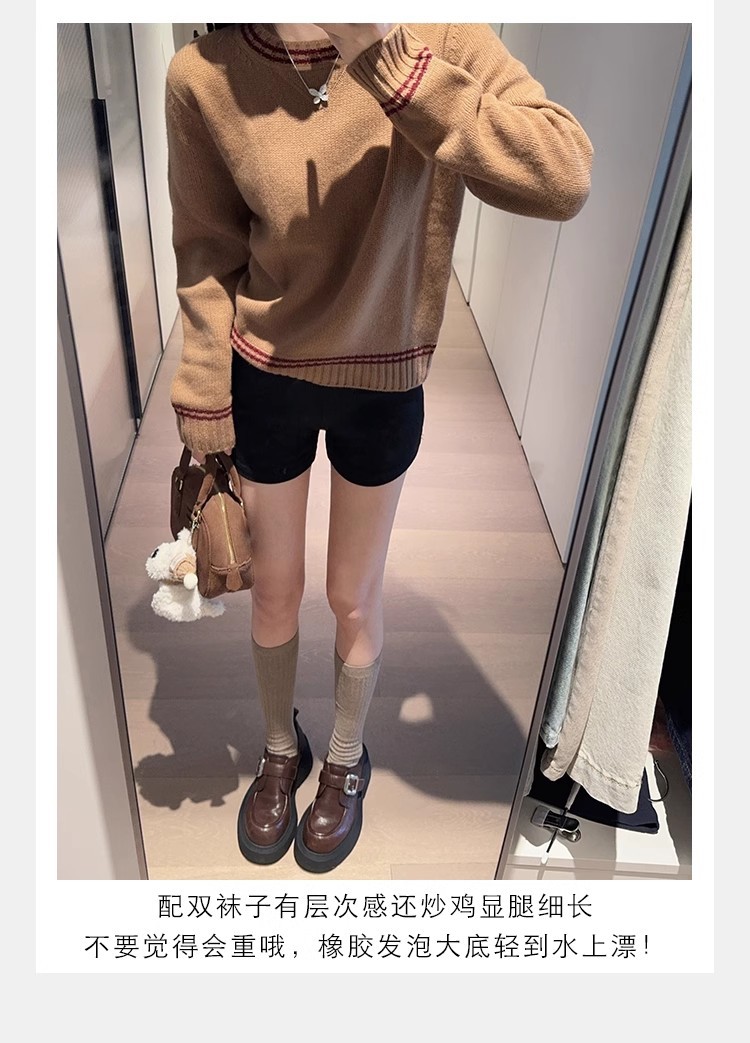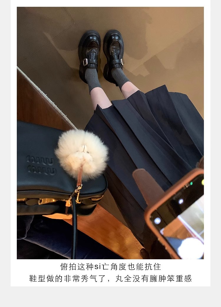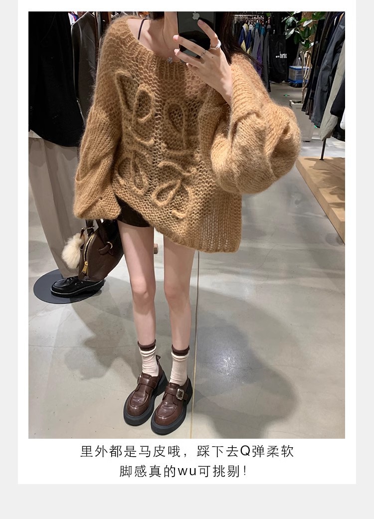 Grava Madre otoño y invierno nuevo estilo lavado de cuero de caballo cabeza redonda estilo británico un pedaleón de tacón grueso Lefour zapatos de cuero pequeñas zapatos de mujer
