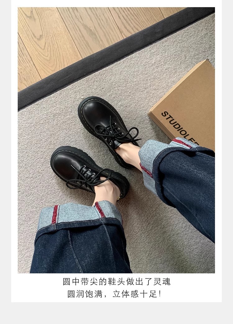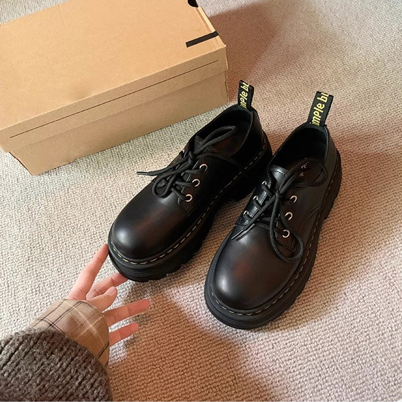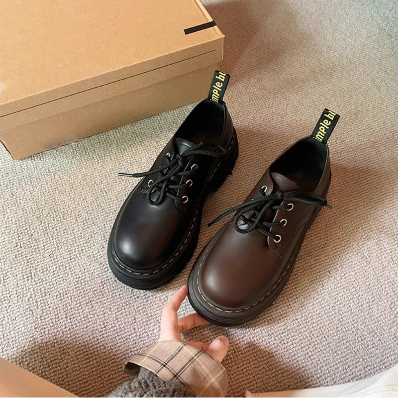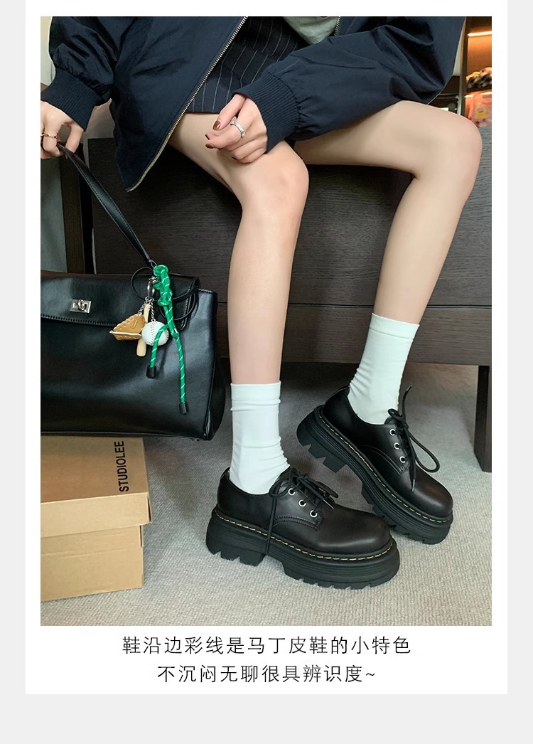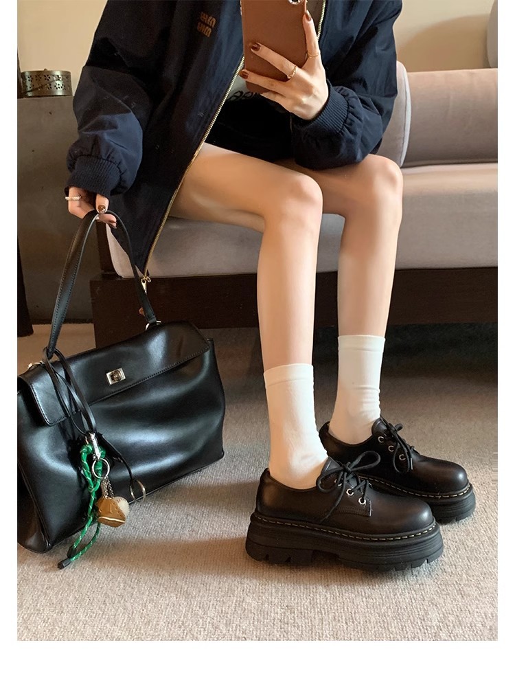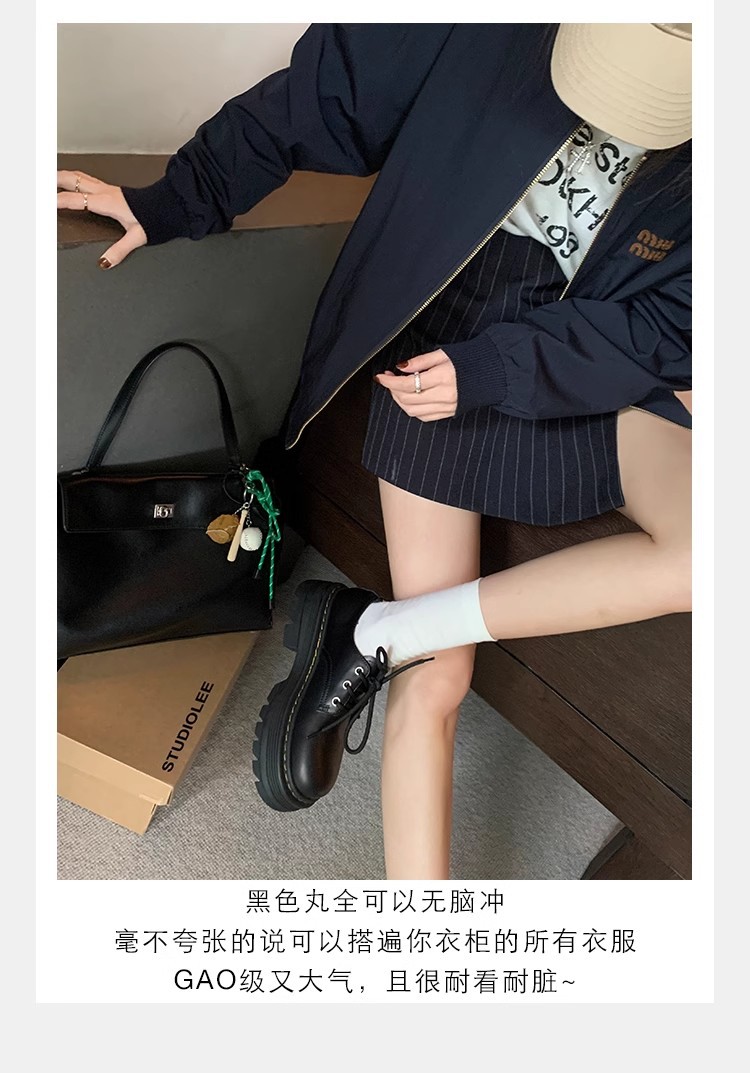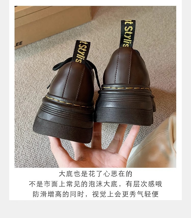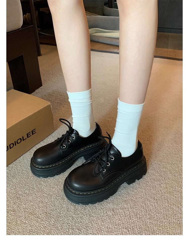 Grape Mom Otoño Nuevo estilo estilo británico con cordones para aumentar los zapatos Lofu de plataforma de tacón grueso Zapatos de cuero pequeños de punta redonda Otoño femenino