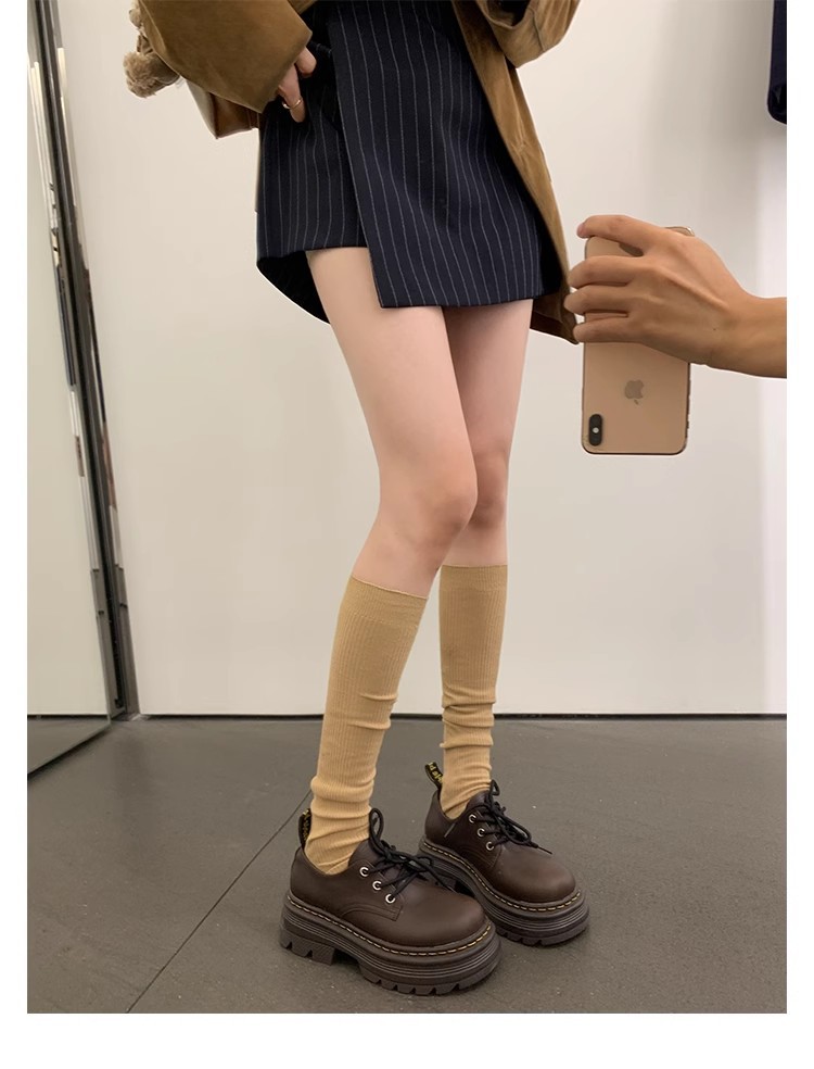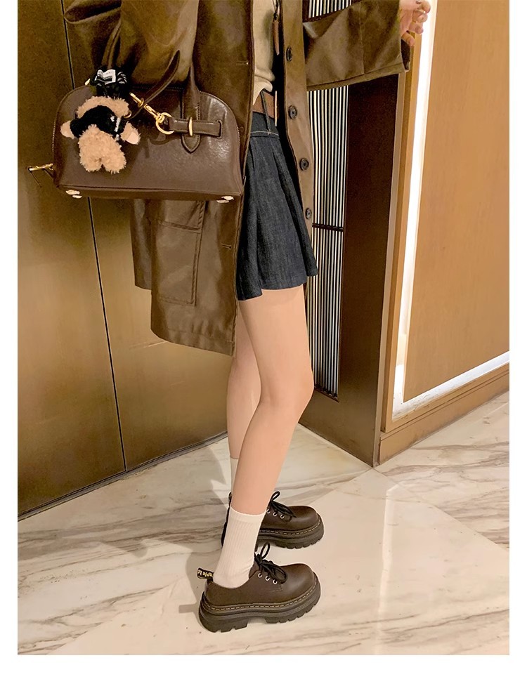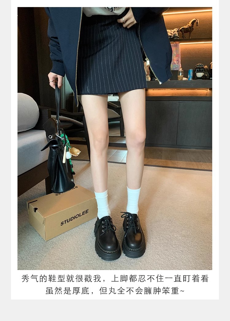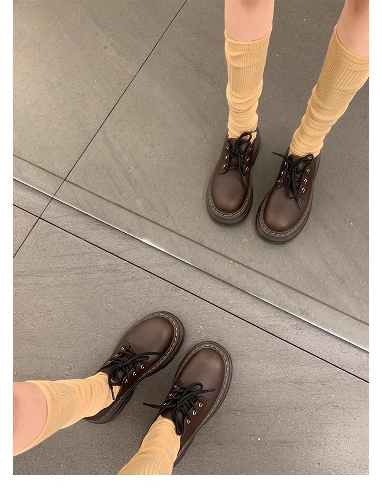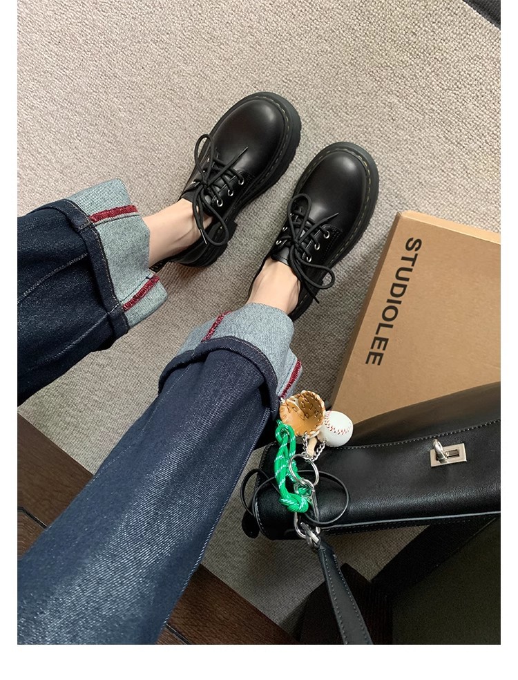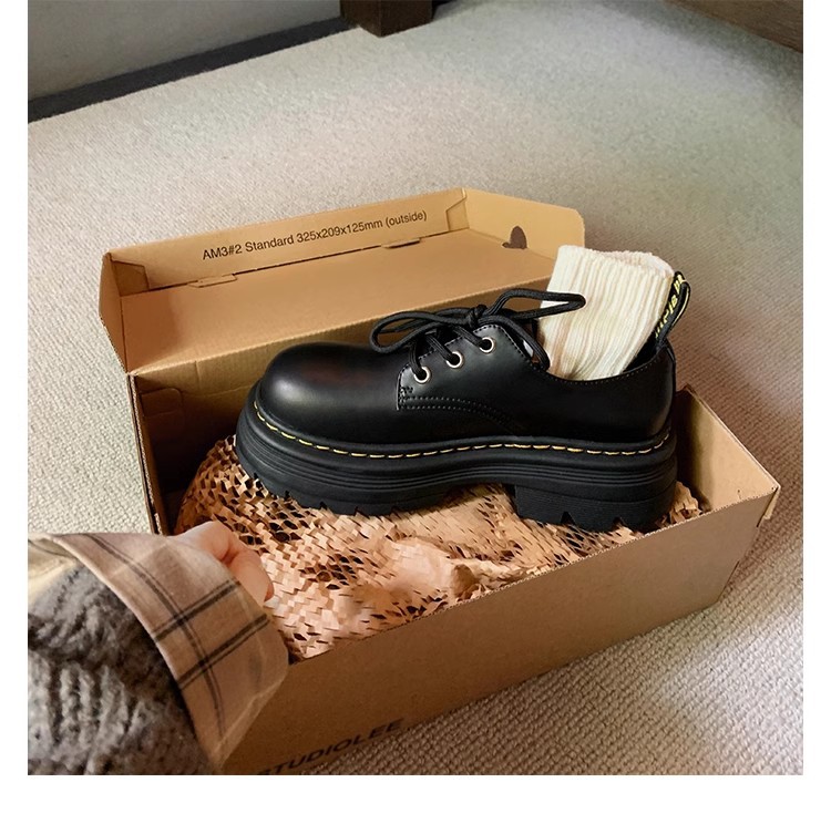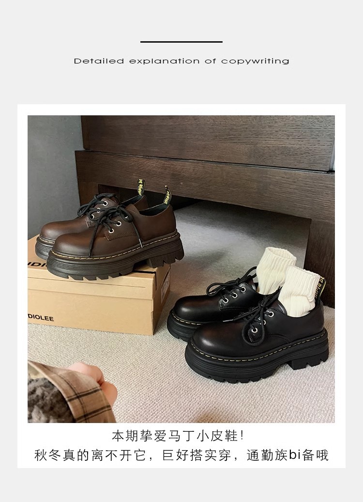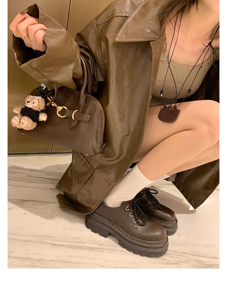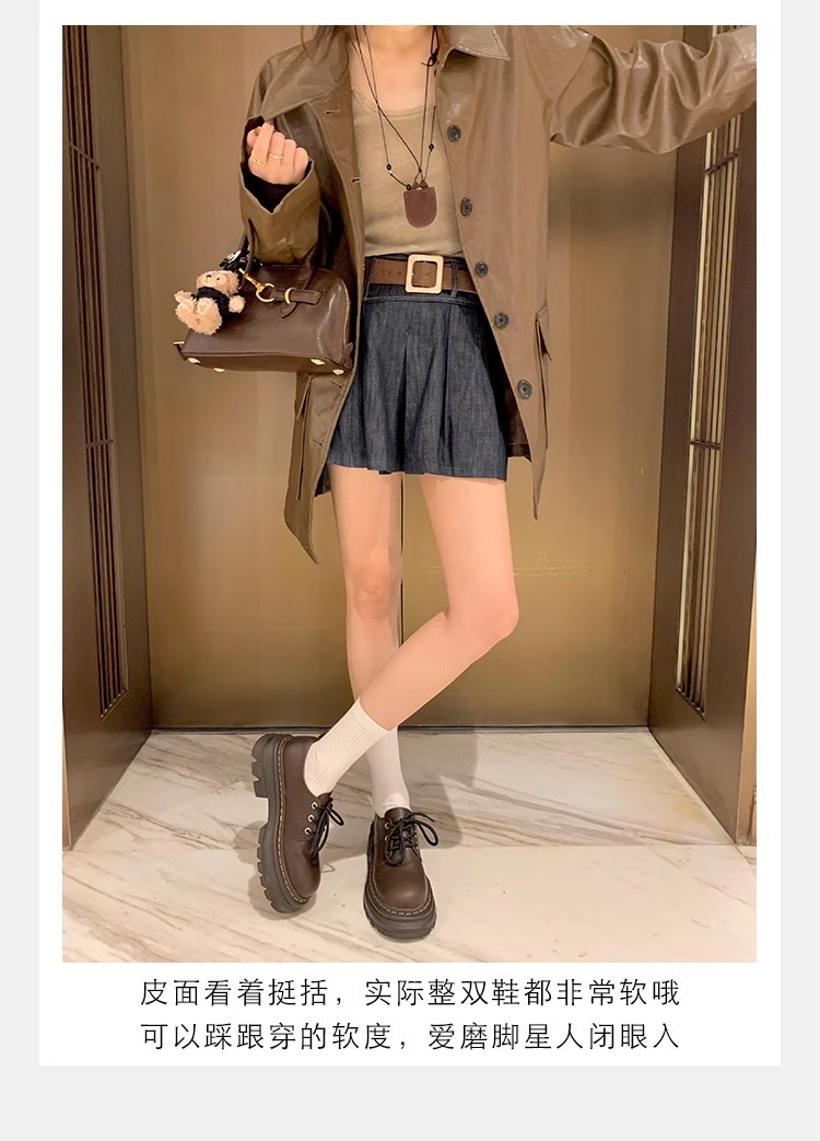 Grape Mom Otoño Nuevo estilo estilo británico con cordones para aumentar los zapatos Lofu de plataforma de tacón grueso Zapatos de cuero pequeños de punta redonda Otoño femenino