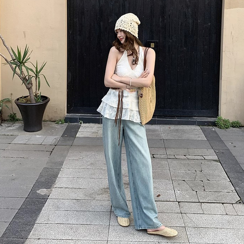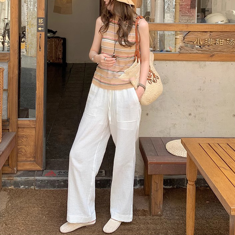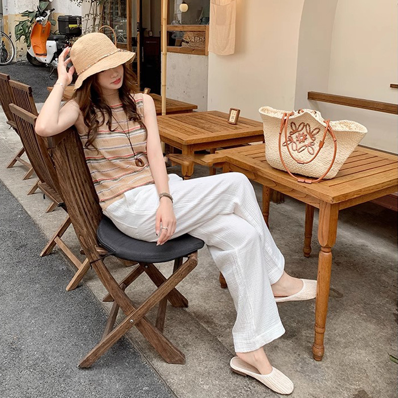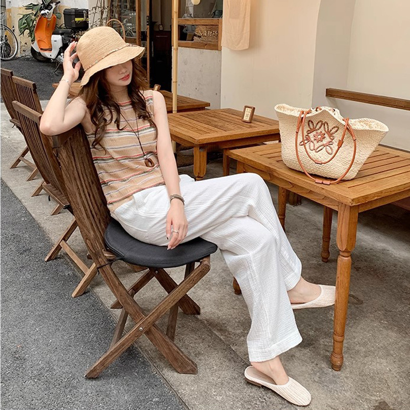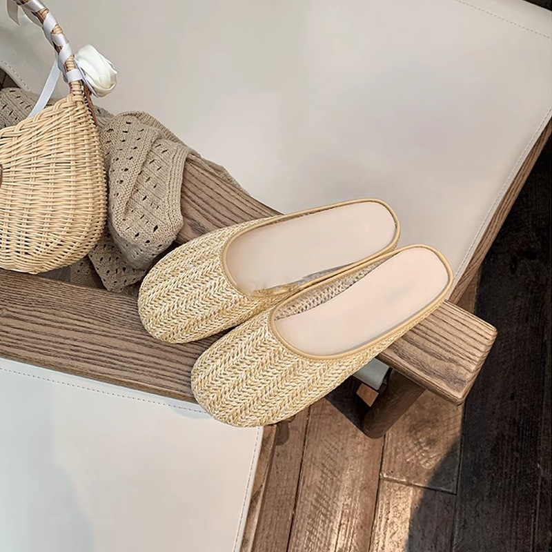 Vacaciones en Bangkok ~ Zapatillas de puntera transpirables tejidas retro para mujer, zapatillas de playa de suela blanda de verano