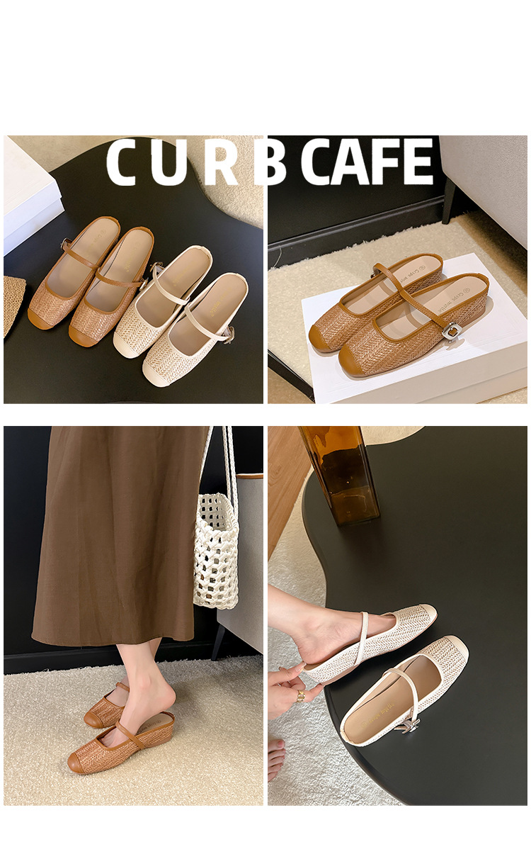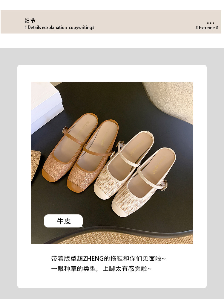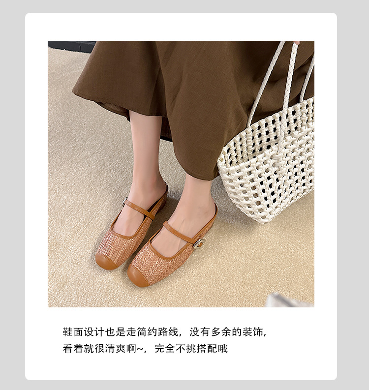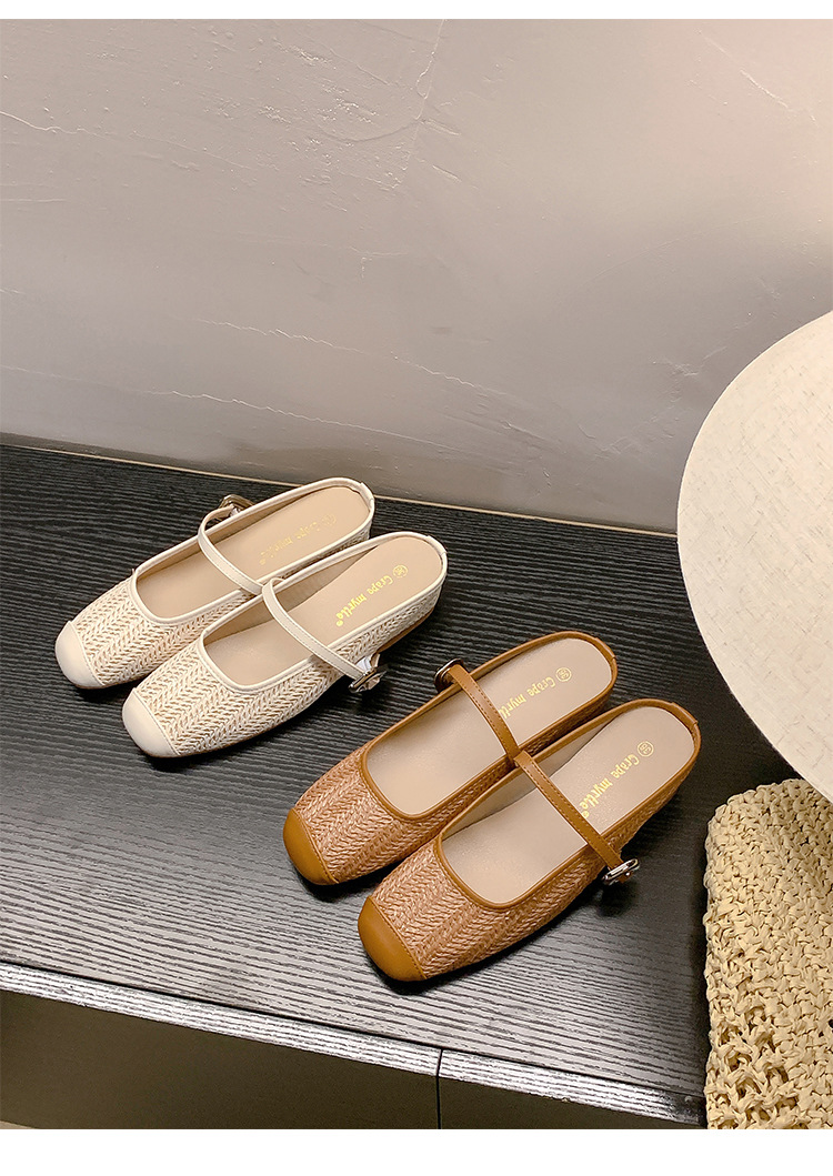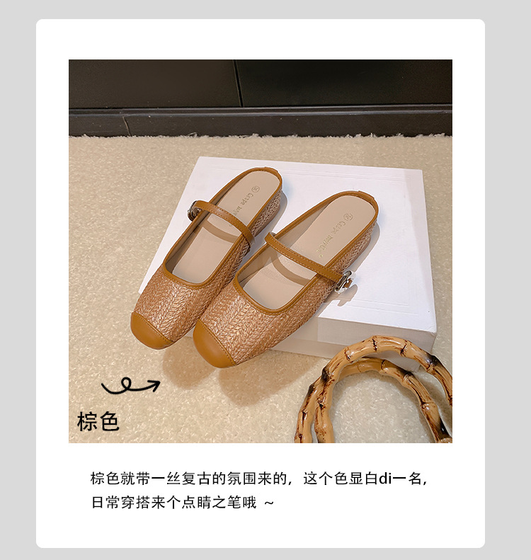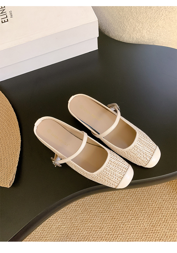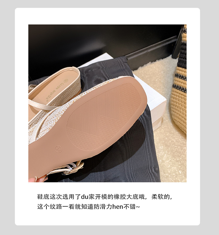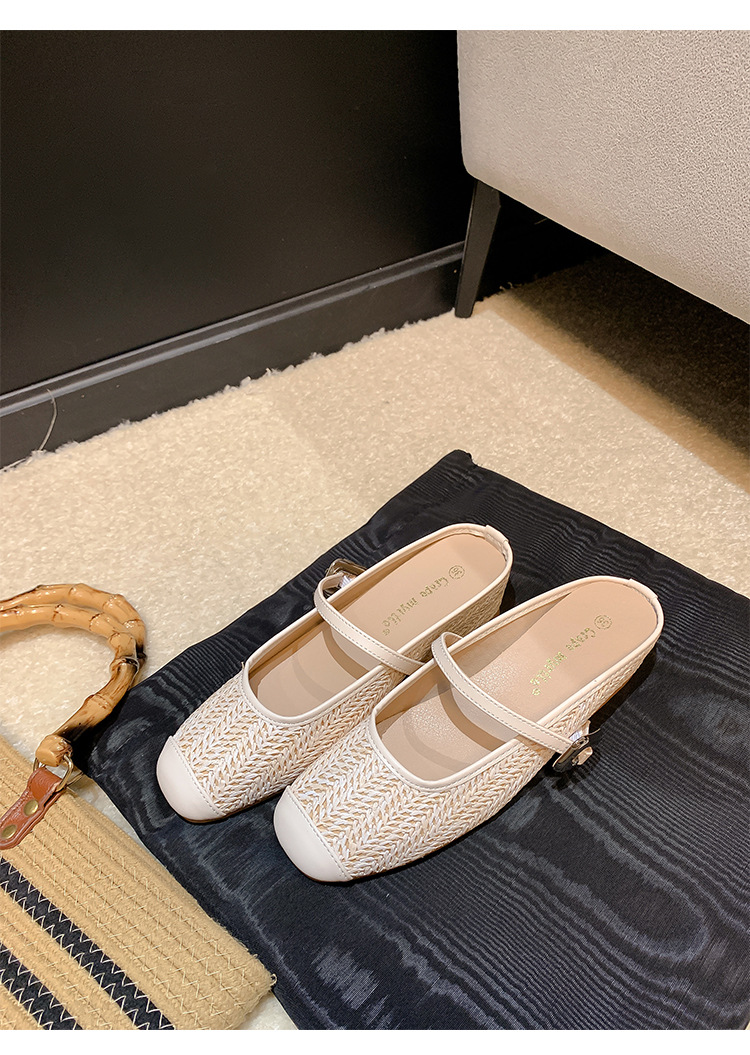 Grape Mom Summer retro tejido cuadrado hueco cabeza de una palabra con sandalias de tacón grueso Muller media pantuflas ropa exterior femenina