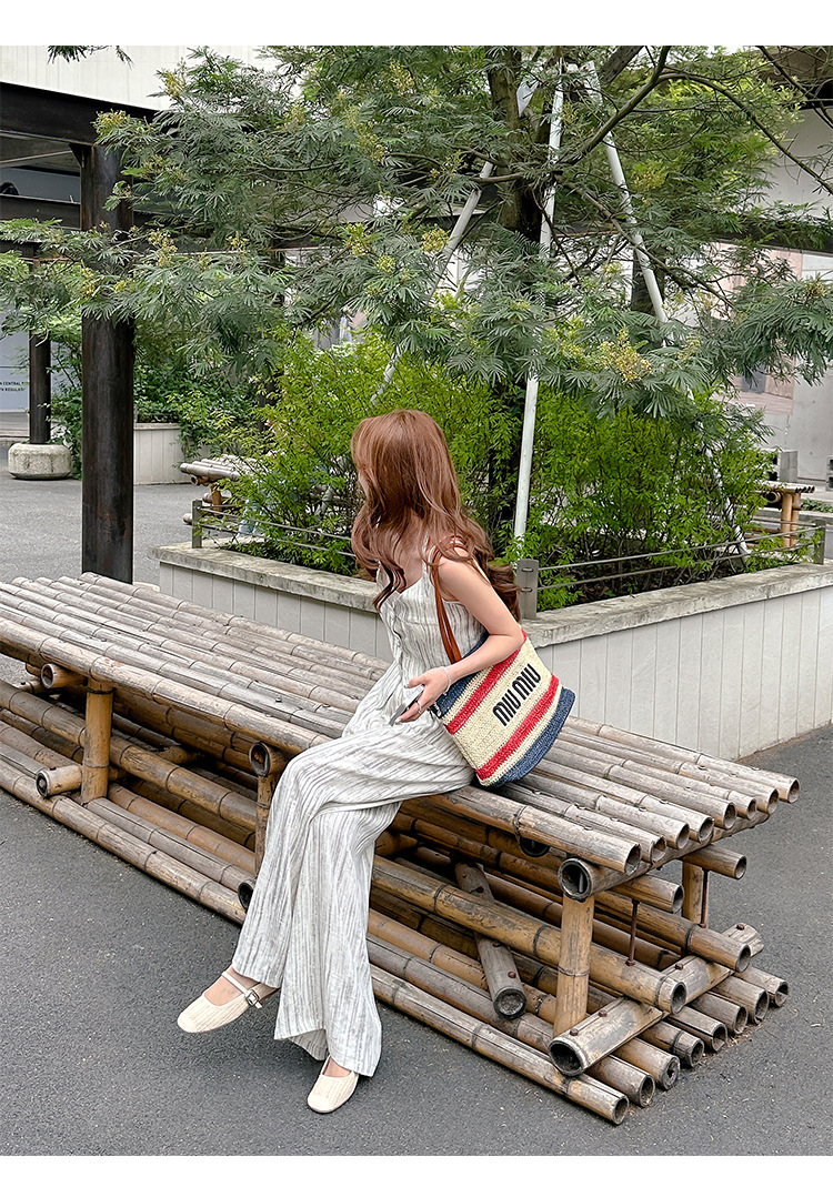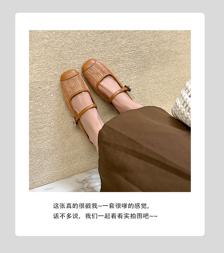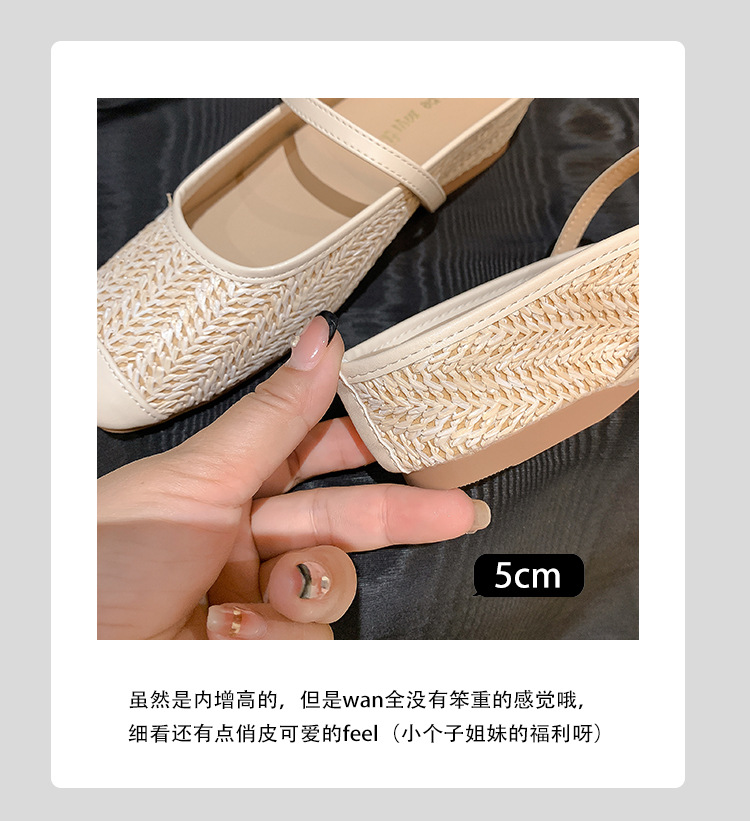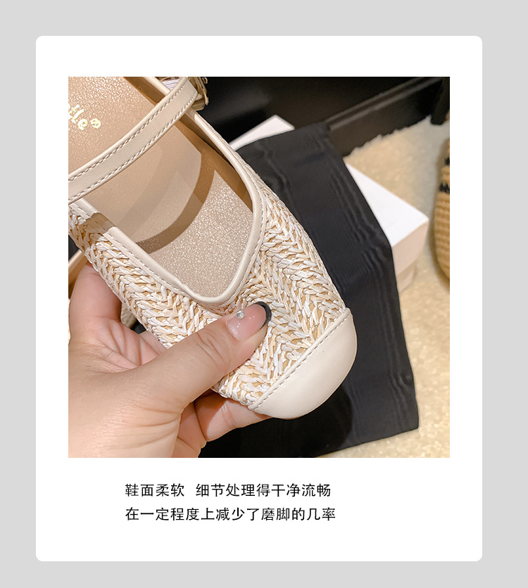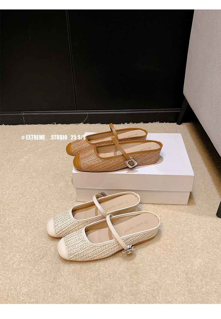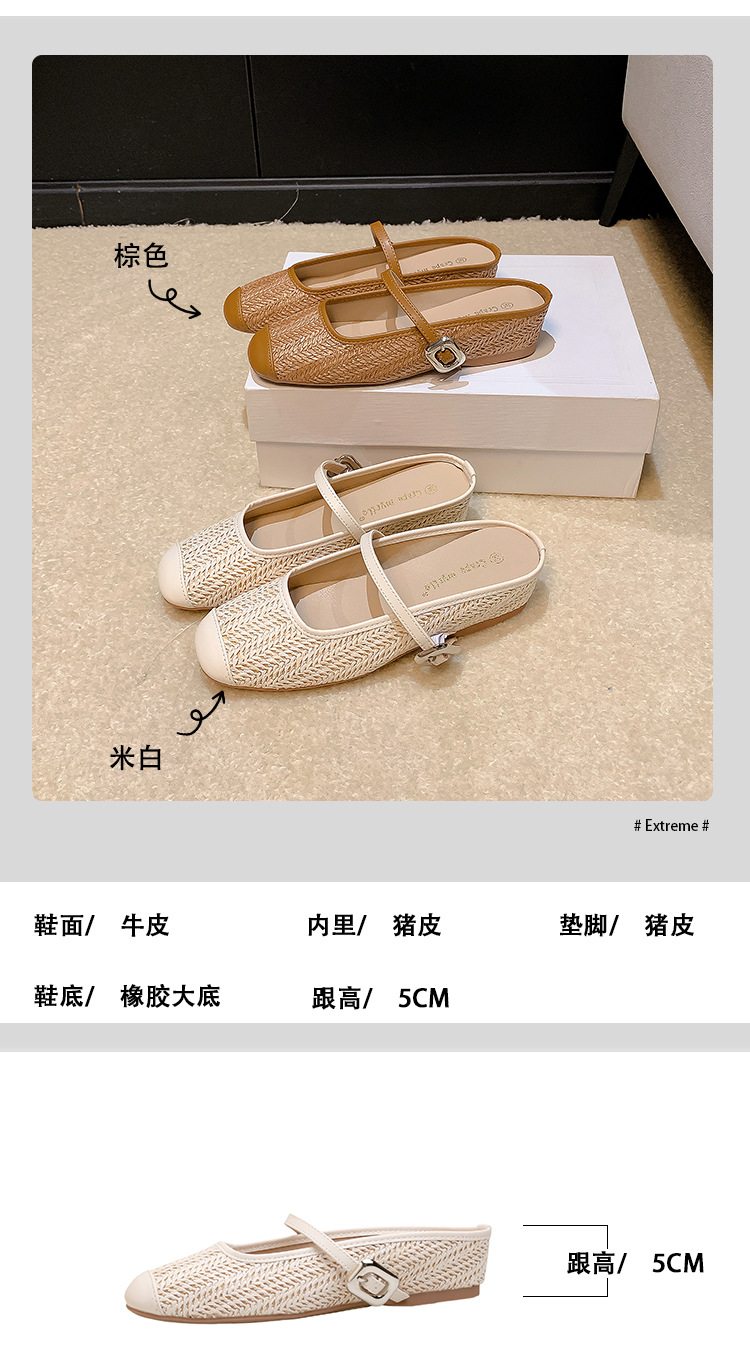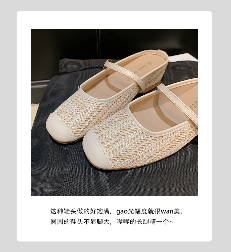 Grape Mom Summer retro tejido cuadrado hueco cabeza de una palabra con sandalias de tacón grueso Muller media pantuflas ropa exterior femenina