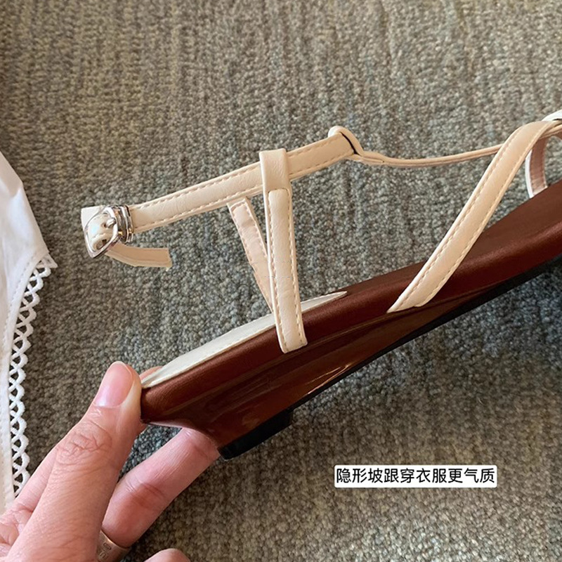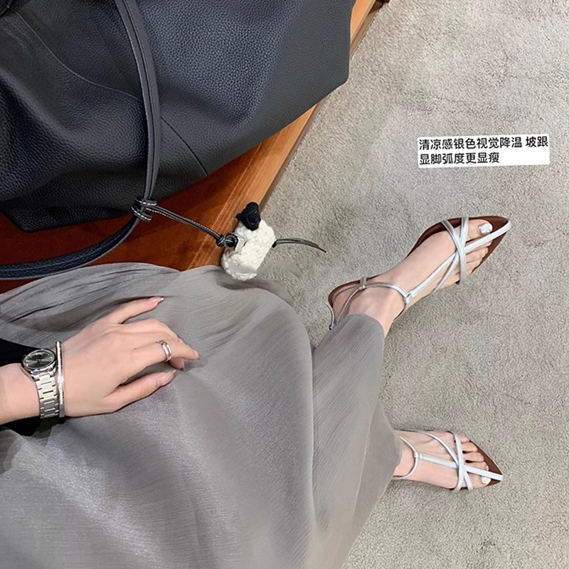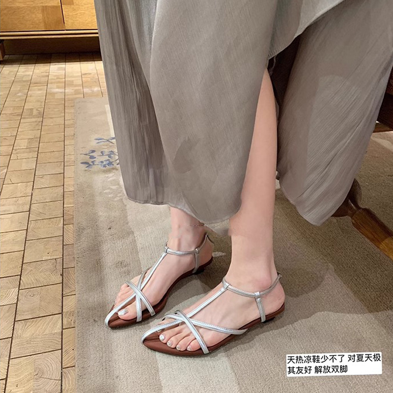 Grape Mom Summer New Island Diary ~ Sandalias romanas con punta abierta y puntiaguda con correa cruzada francesa