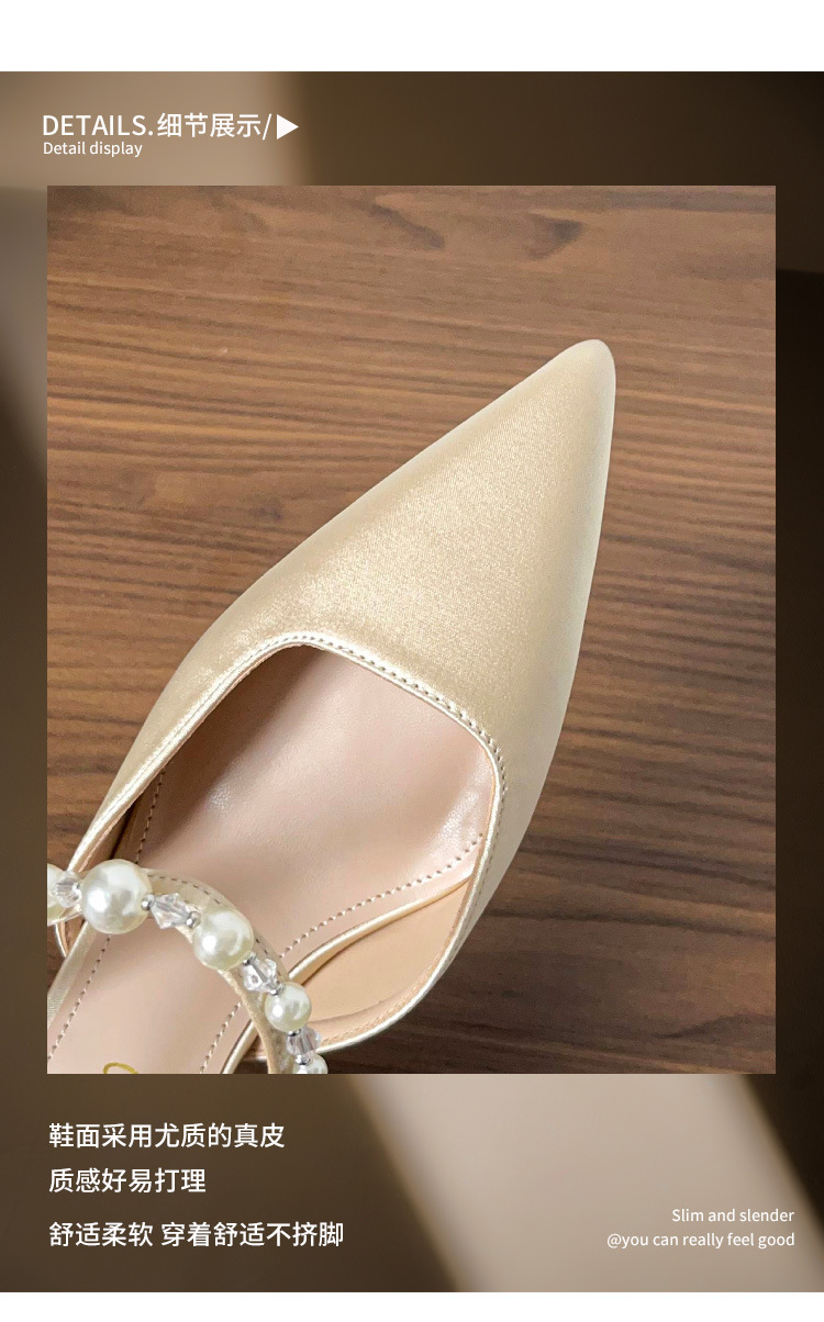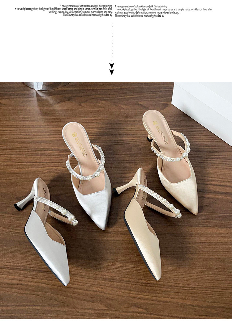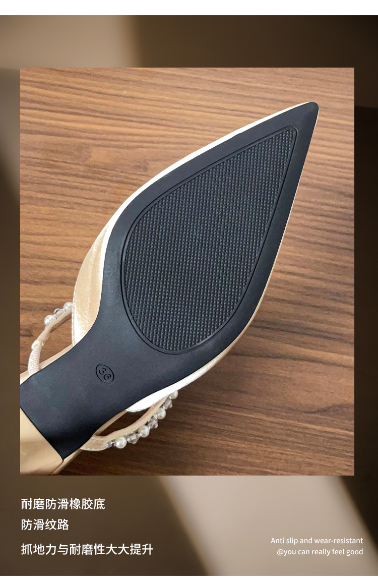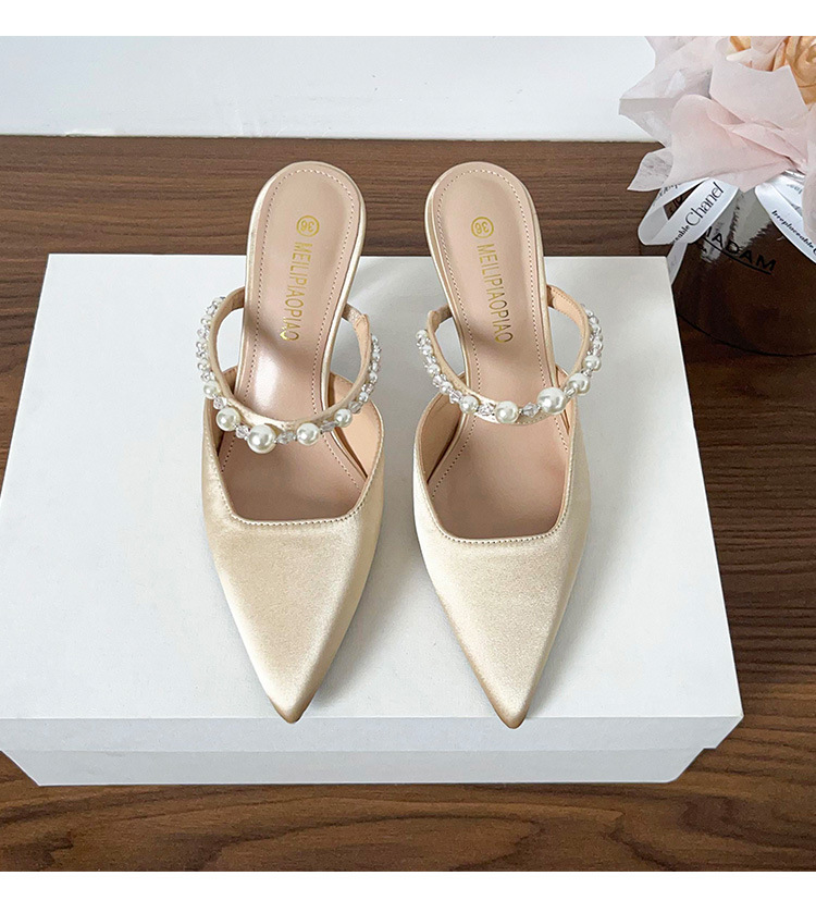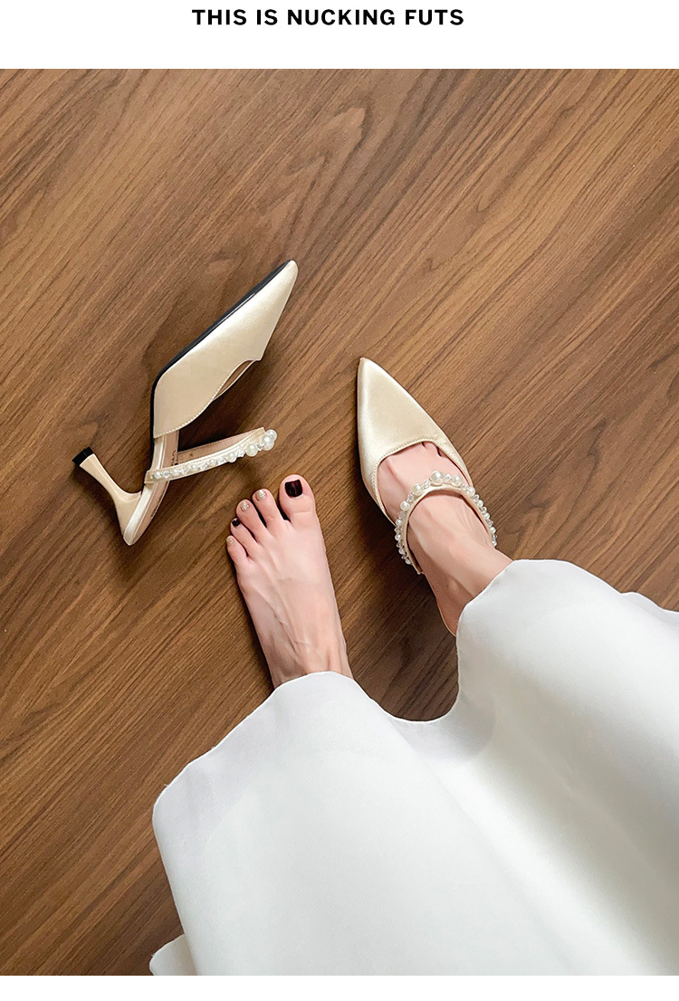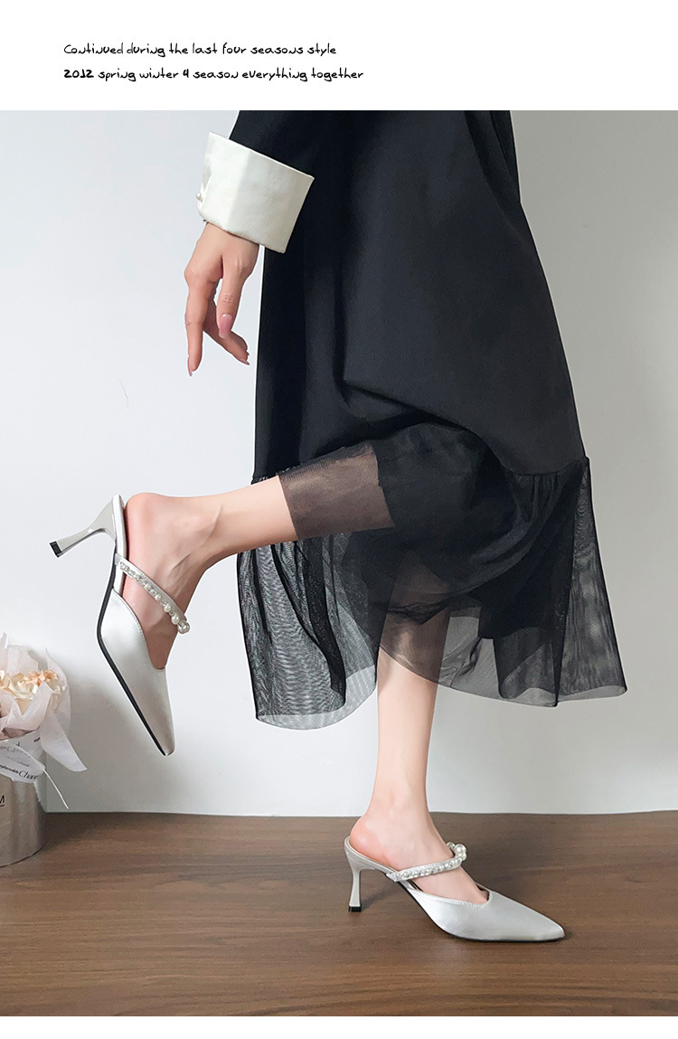 Versión de piel de oveja ~ Sandalias Baotou mujeres de verano con falda puntiaguda con pantuflas de tacón de aguja de perlas