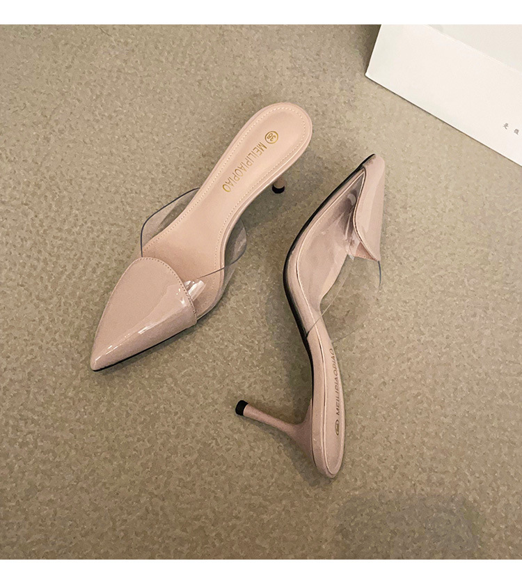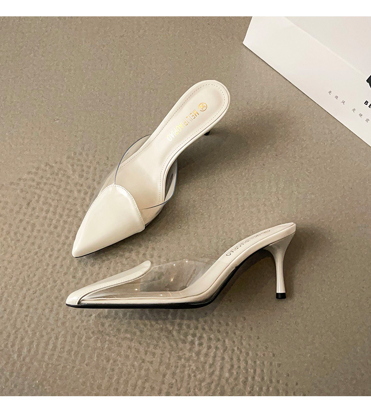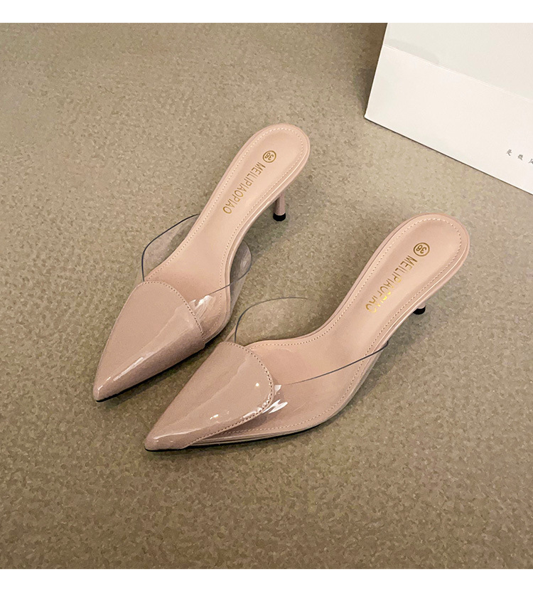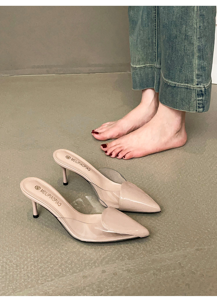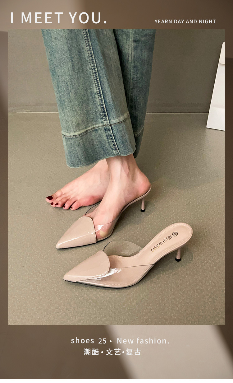 Primavera y verano nuevas sandalias Baotou de tacón alto para mujer, pantuflas de amor transparentes puntiagudas, sandalias y pantuflas de tacón de aguja de moda para mujer
