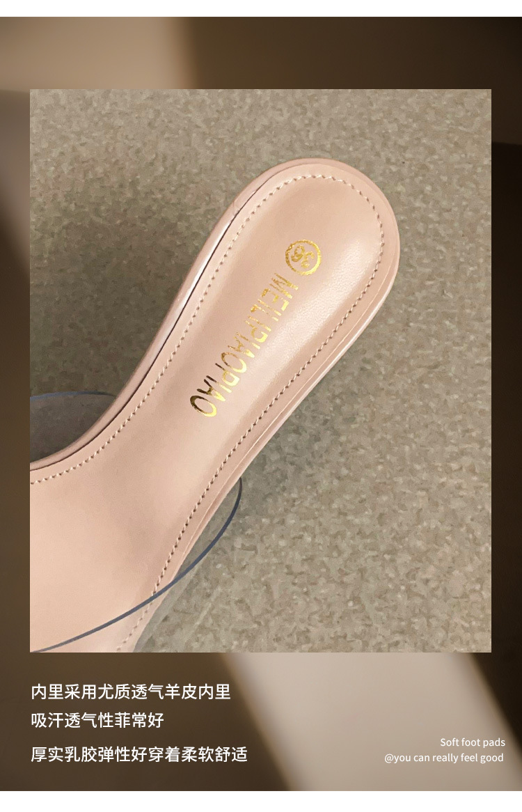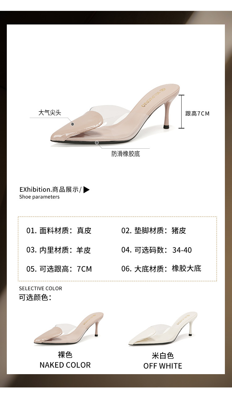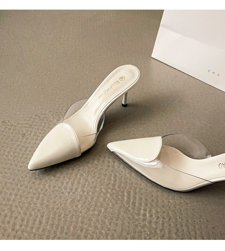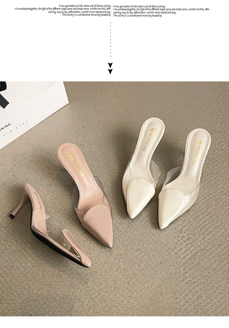Primavera y verano nuevas sandalias Baotou de tacón alto para mujer, pantuflas de amor transparentes puntiagudas, sandalias y pantuflas de tacón de aguja de moda para mujer