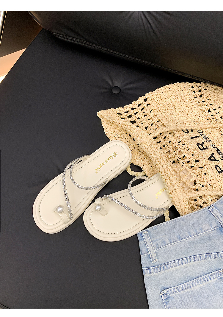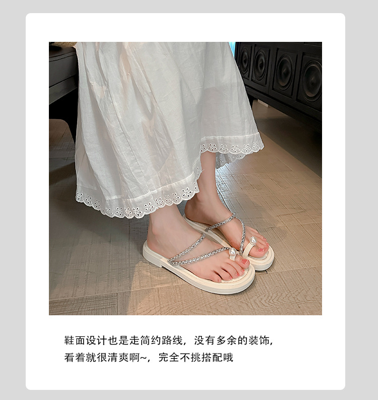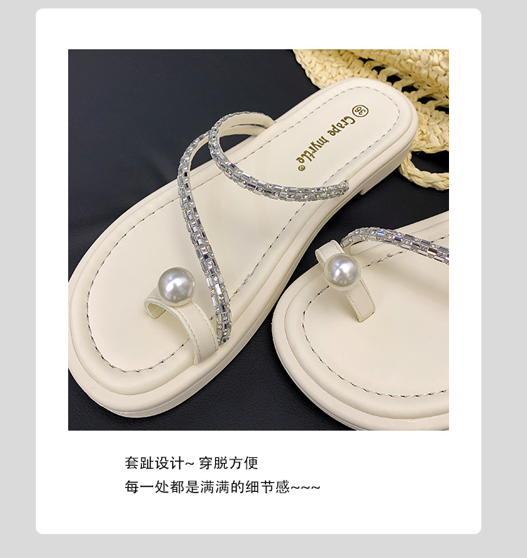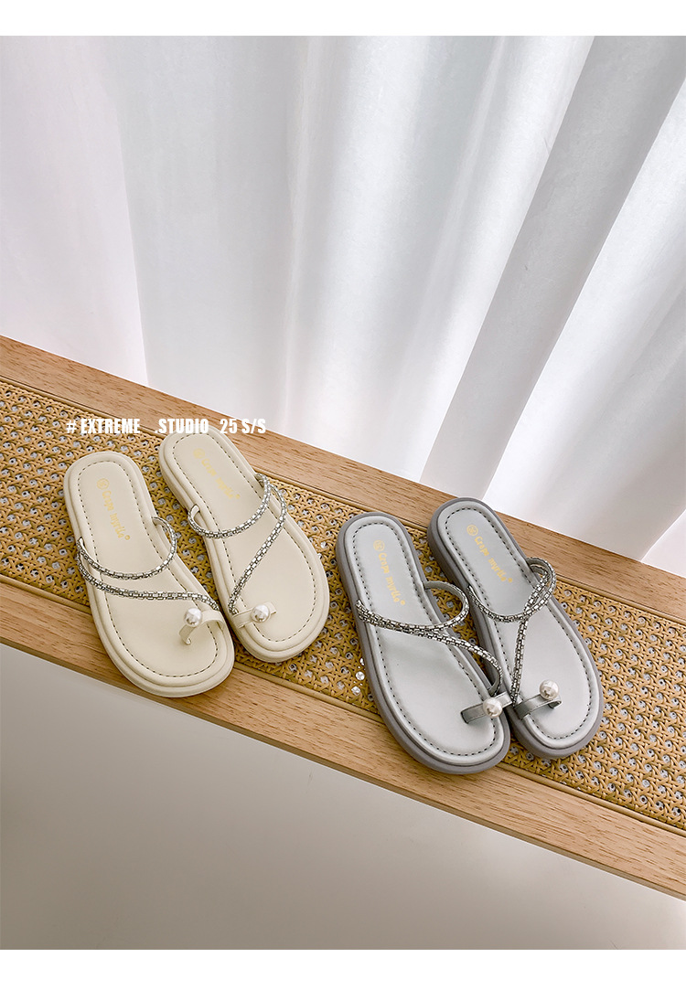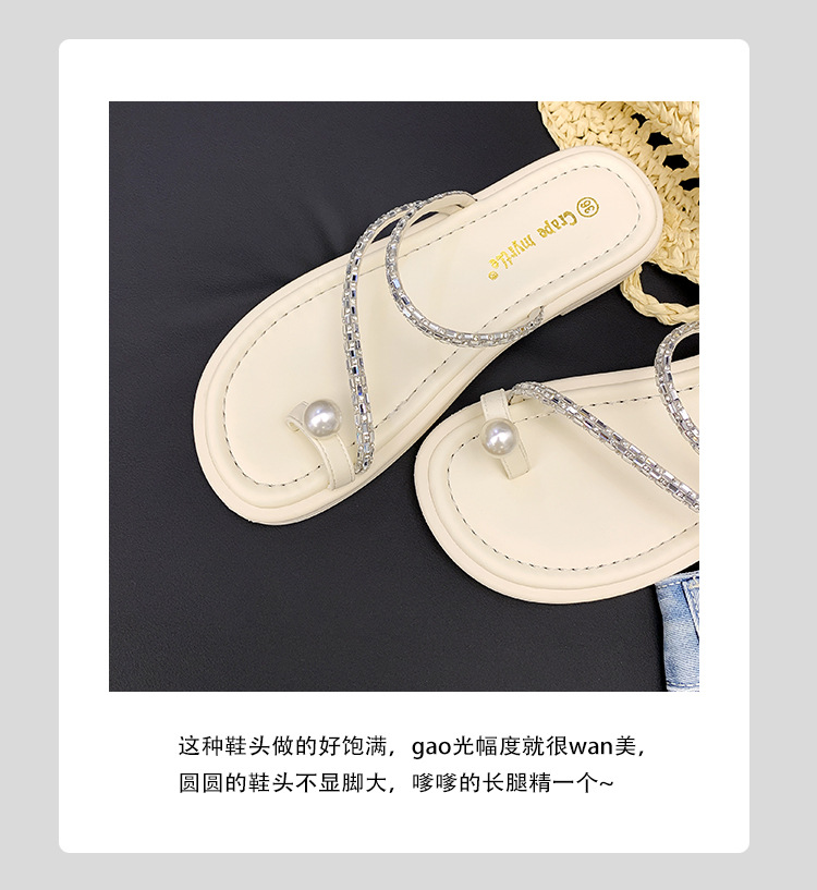 El mismo estilo de Su Yinyin, hojaldre de perlas, chanclas de perlas, sandalias de playa planas, zapatillas de mujer, verano