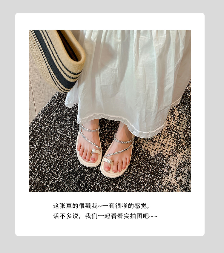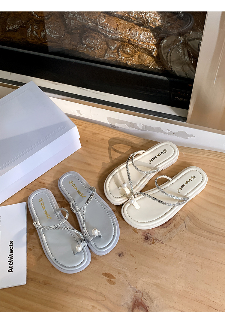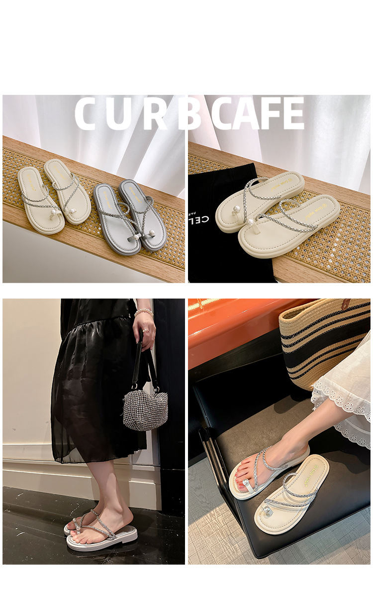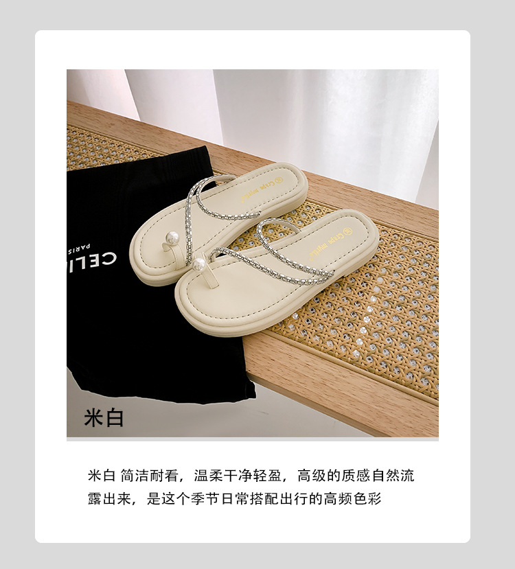 El mismo estilo de Su Yinyin, hojaldre de perlas, chanclas de perlas, sandalias de playa planas, zapatillas de mujer, verano